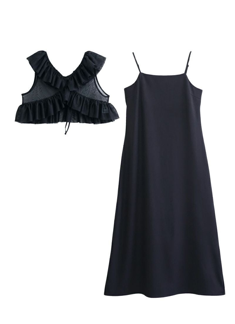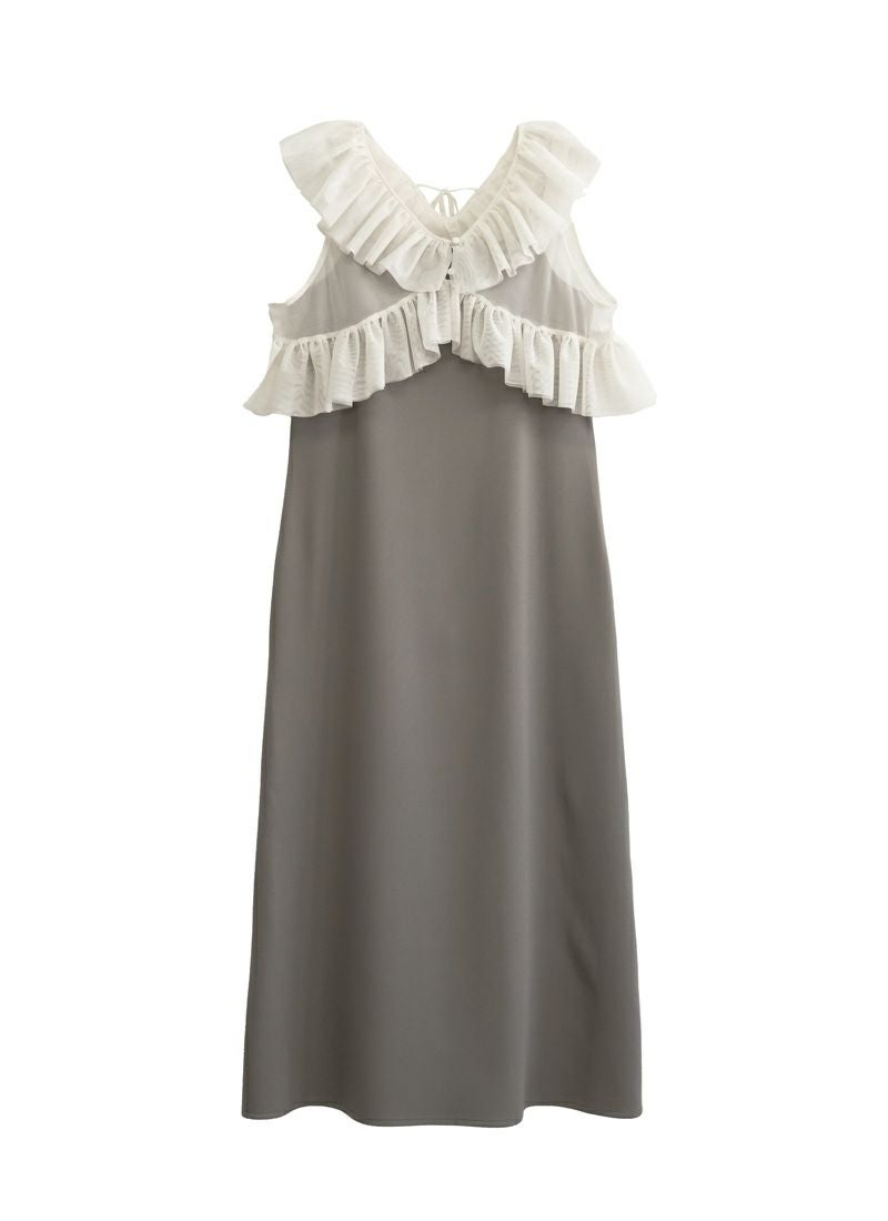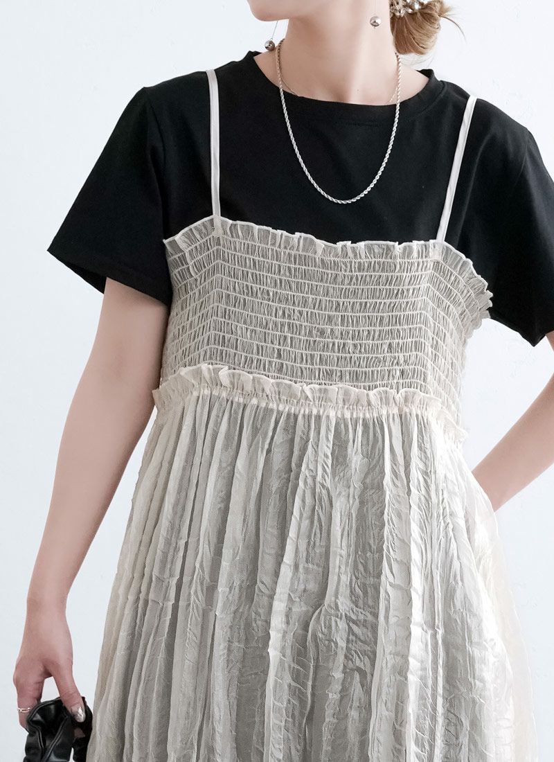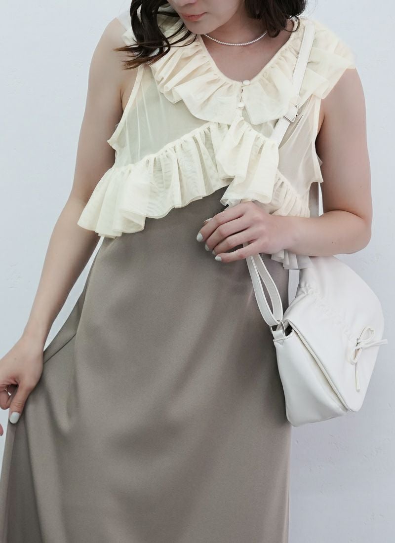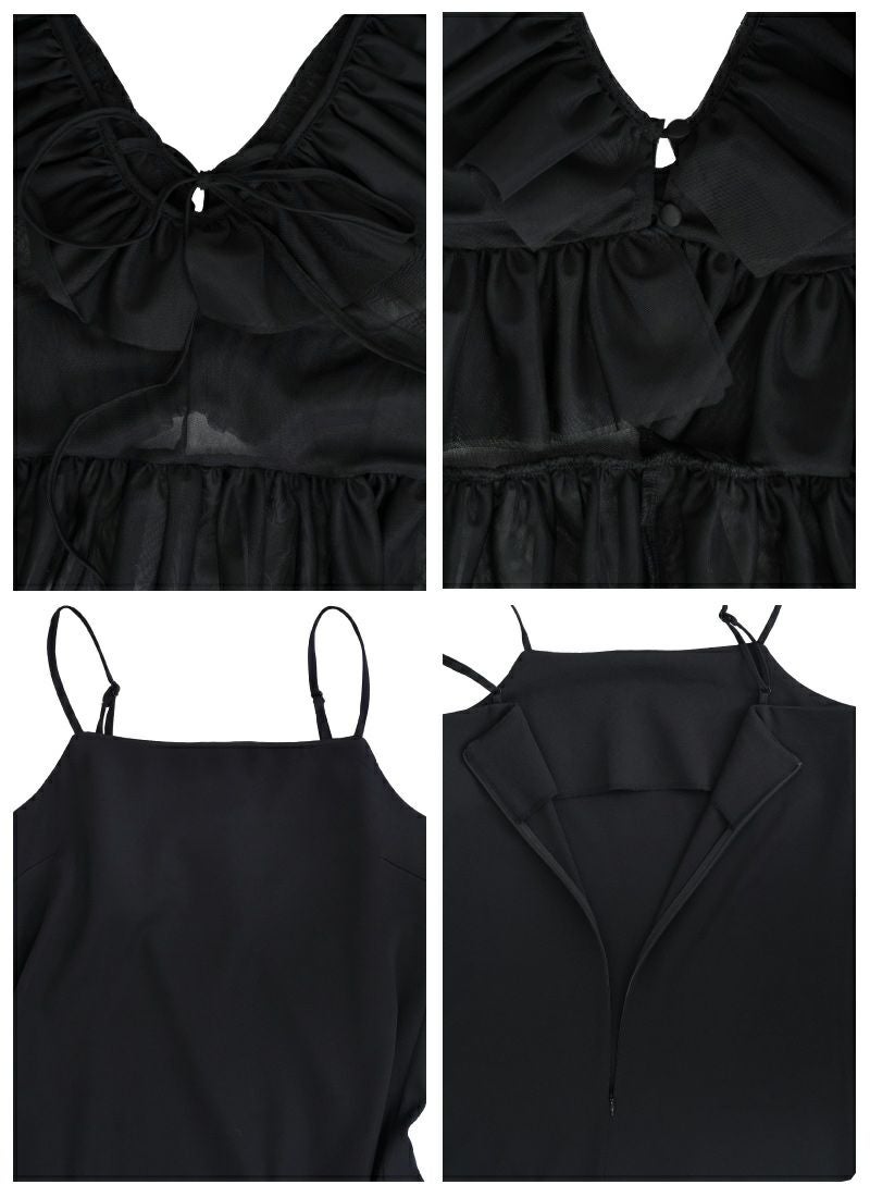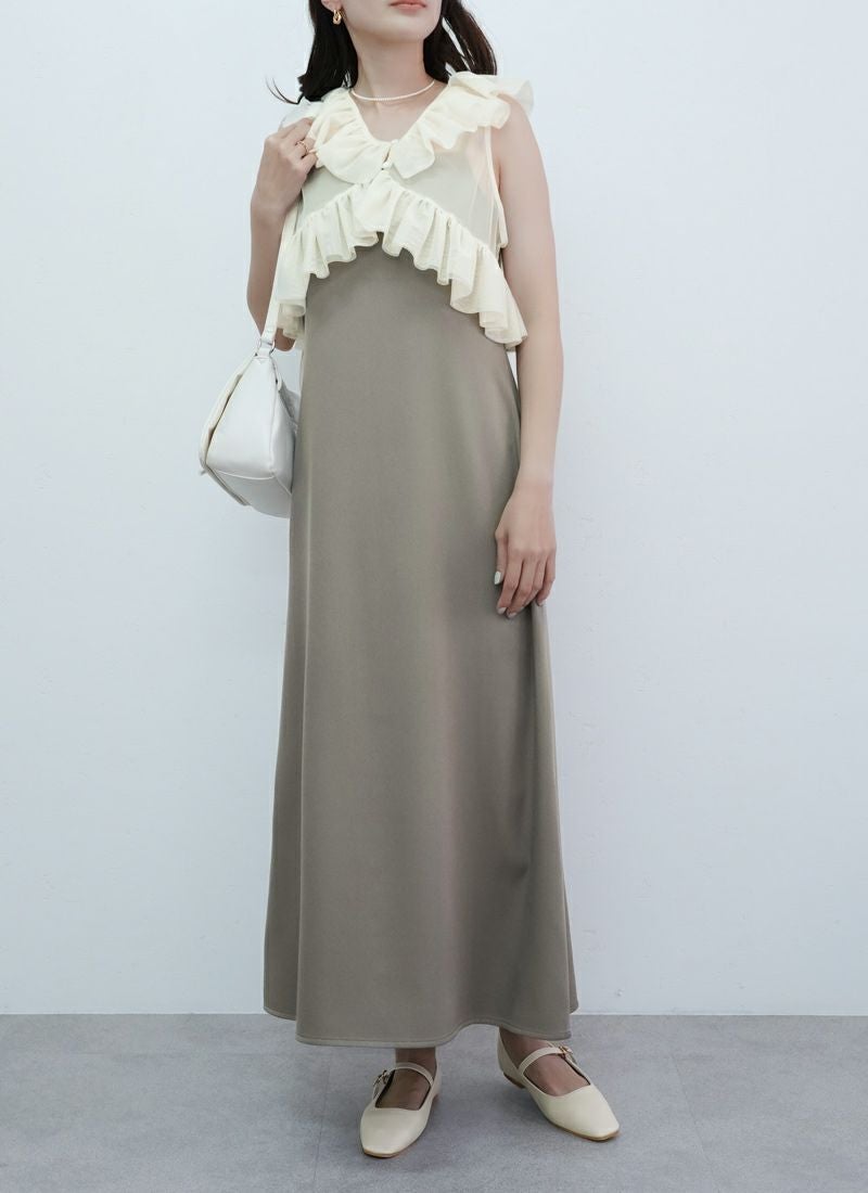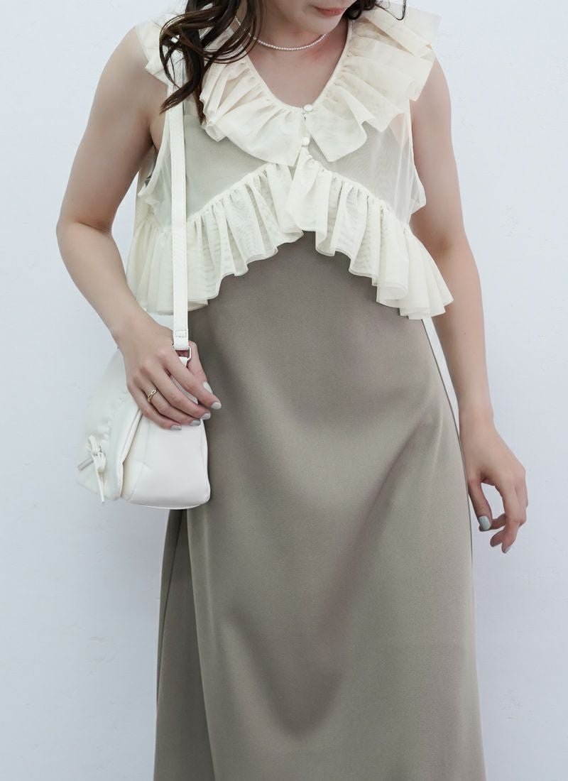 【新作おすすめ】 【10%OFF】チュールフリルベストセットキャミワンピ