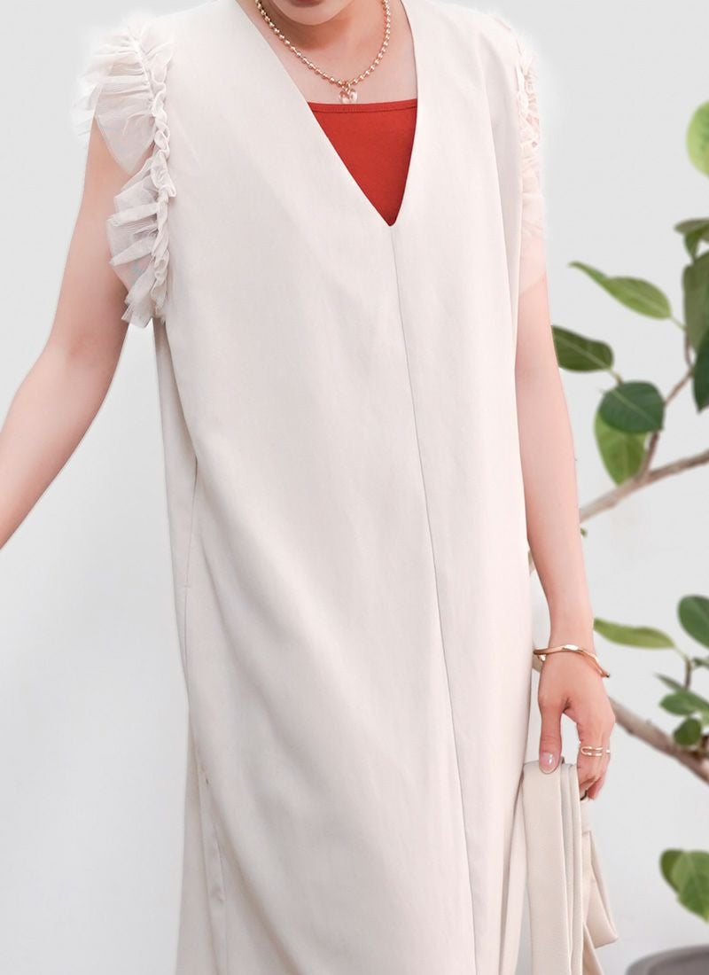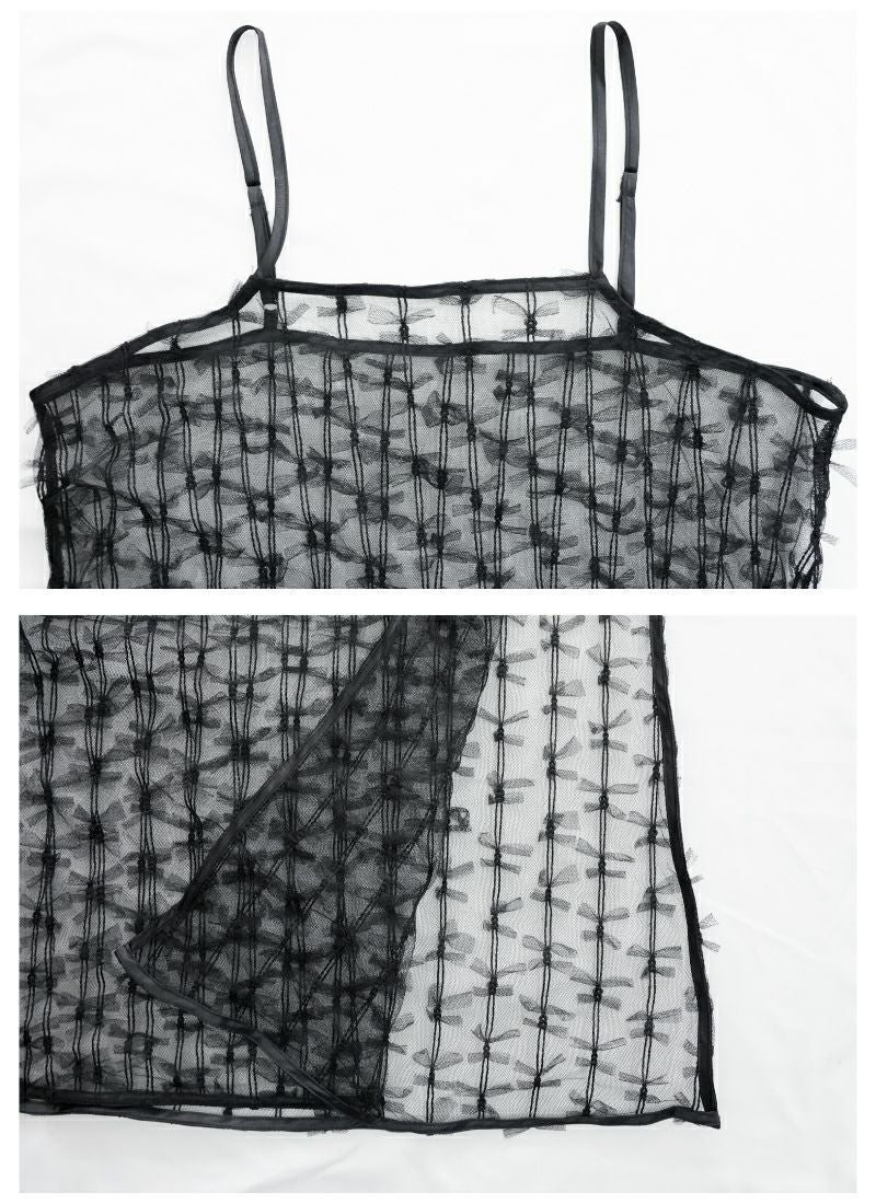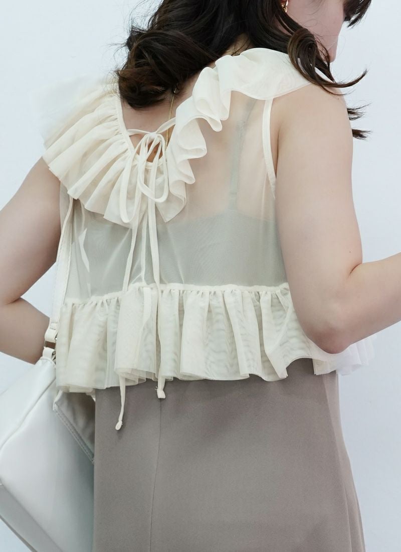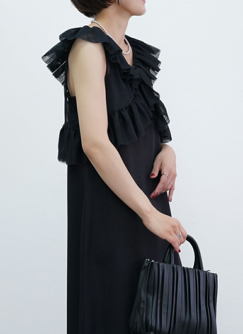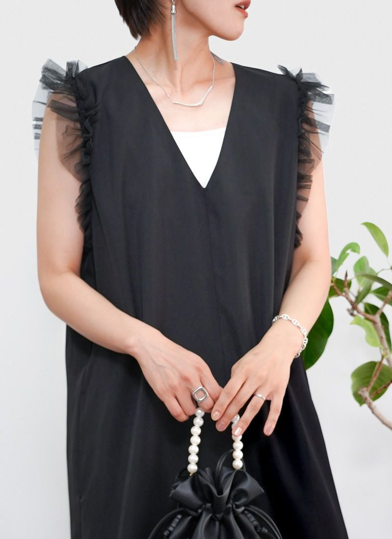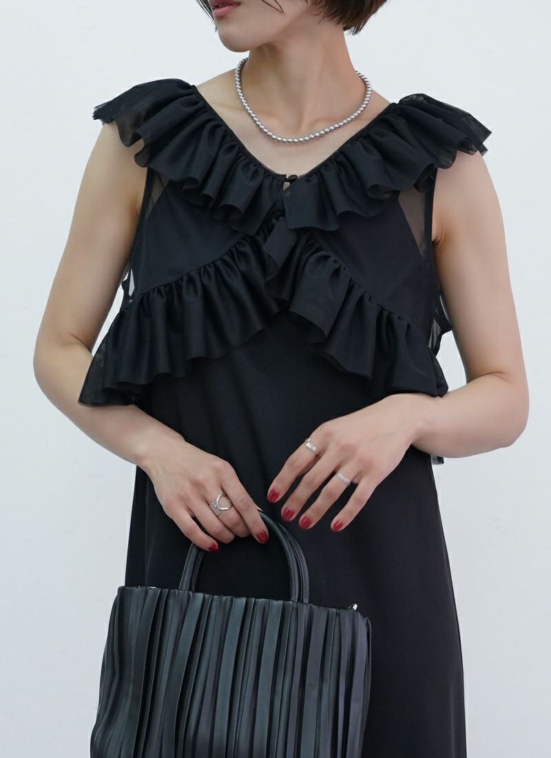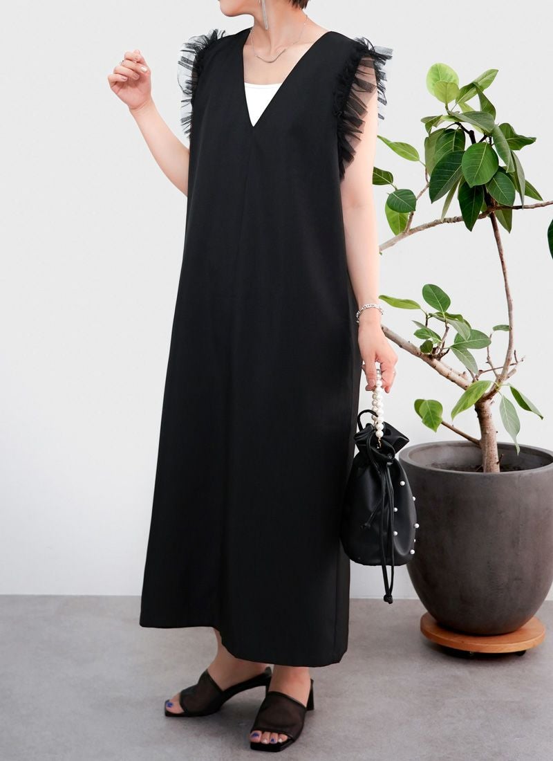 【新作おすすめ】 【10%OFF】チュールフリルベストセットキャミワンピ