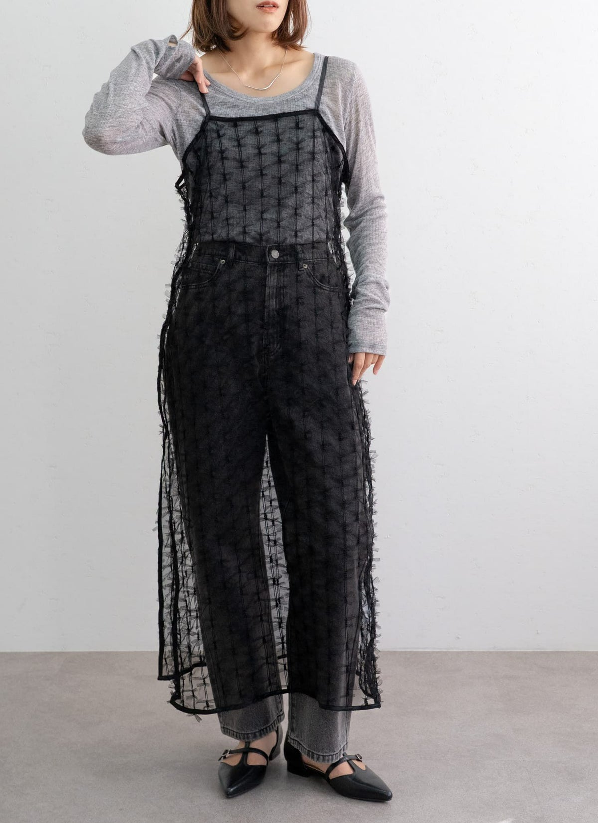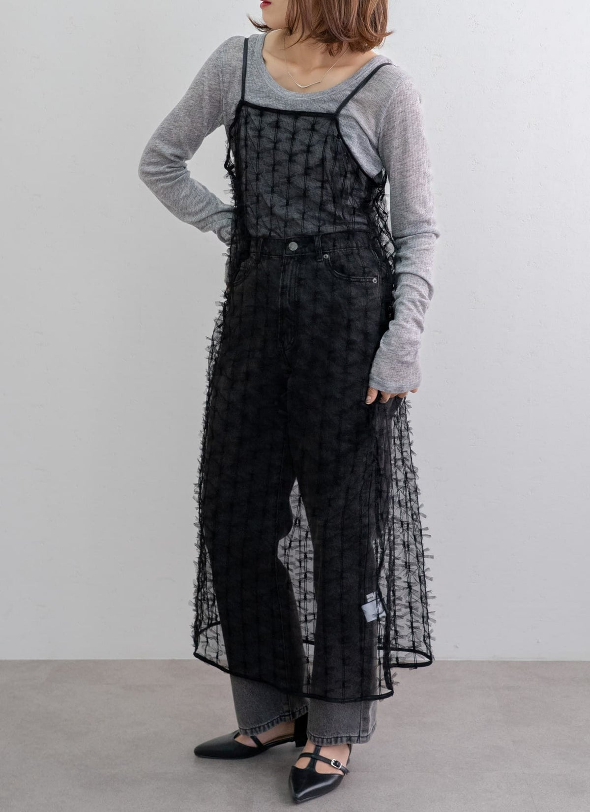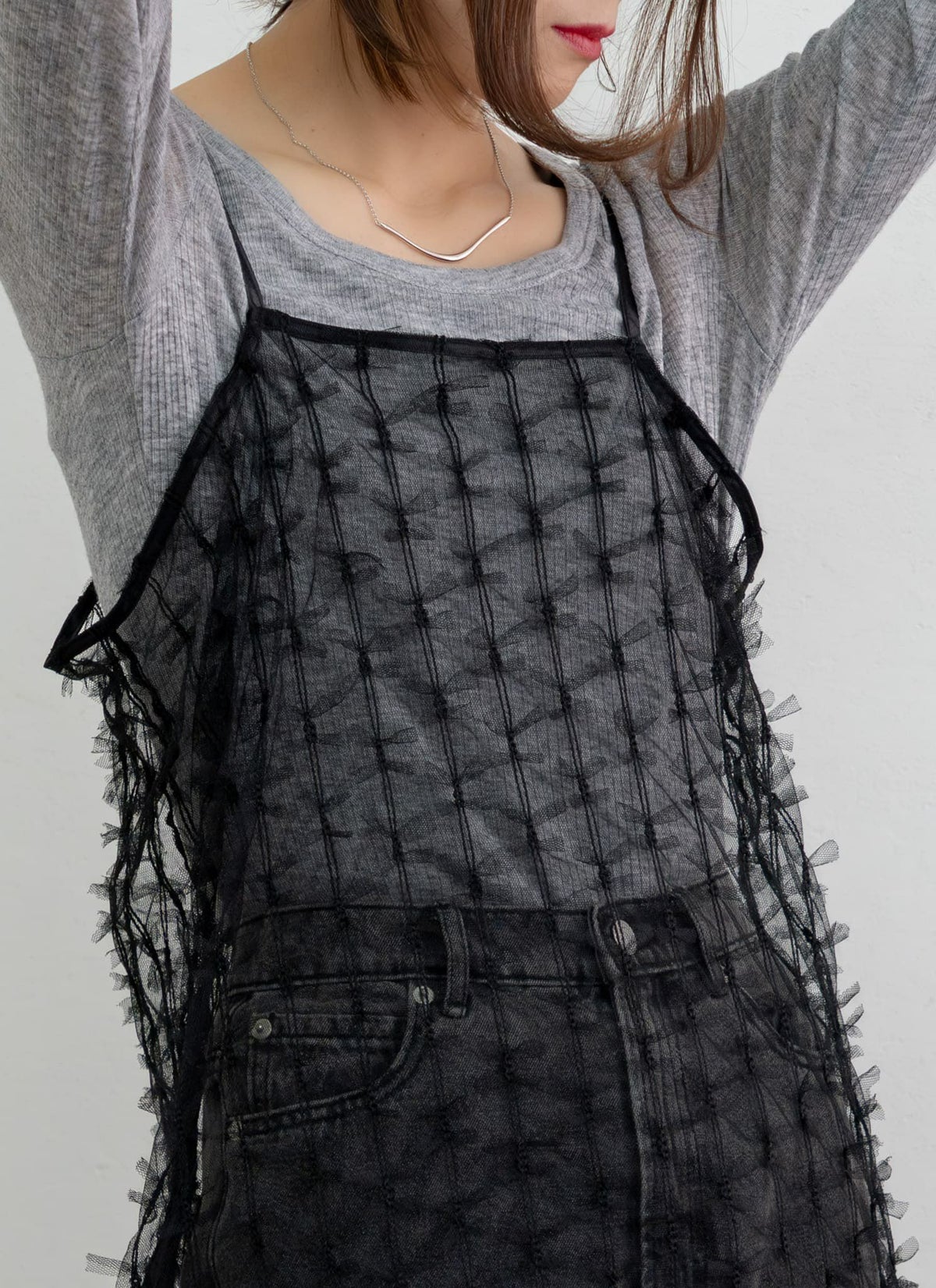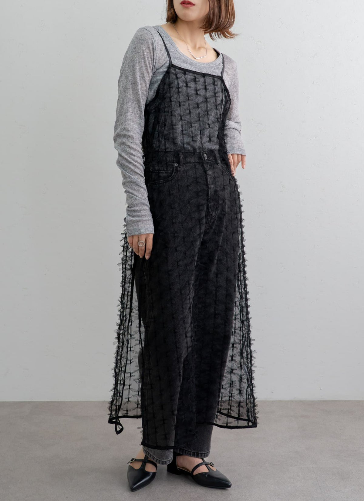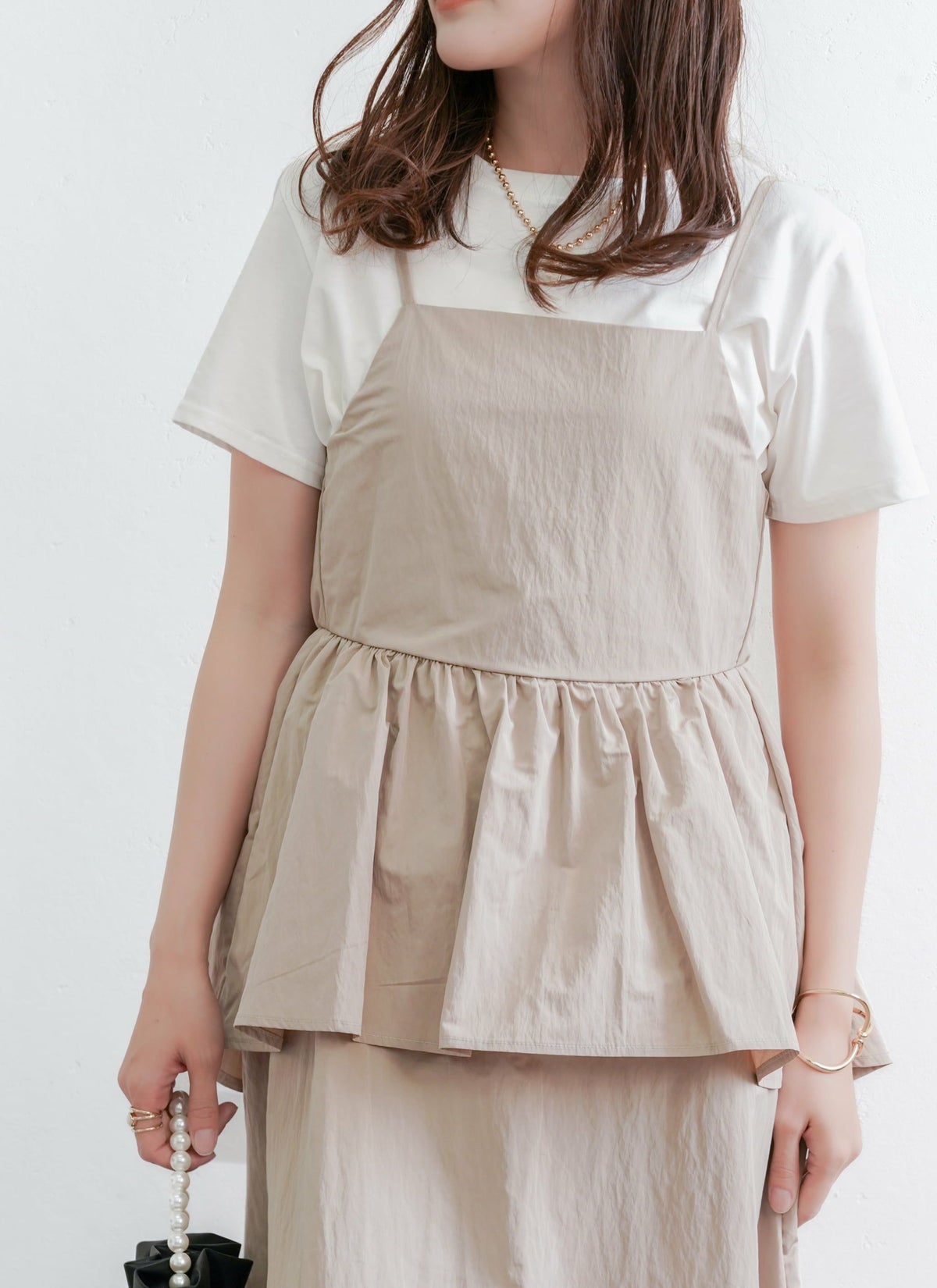 【新作おすすめ】 【10%OFF】チュールフリルベストセットキャミワンピ