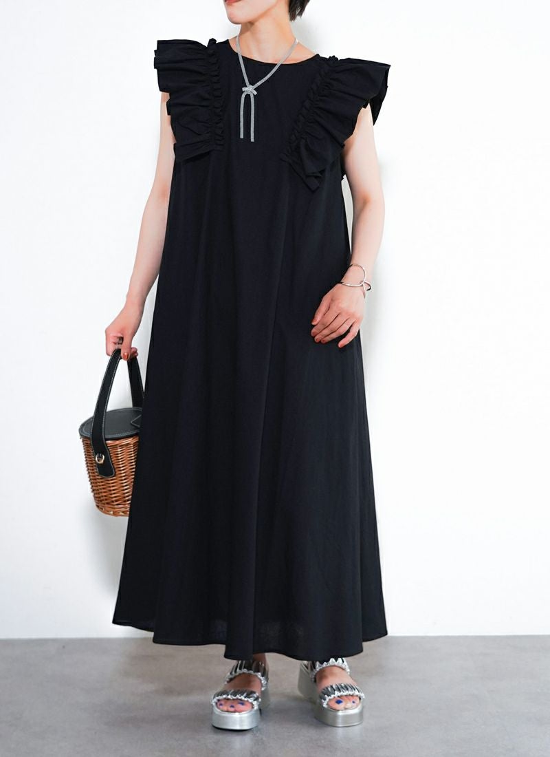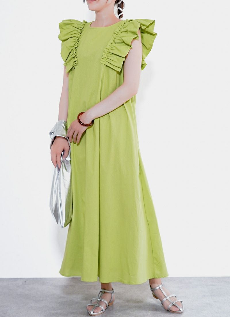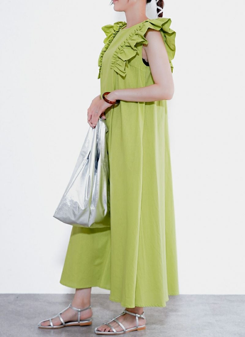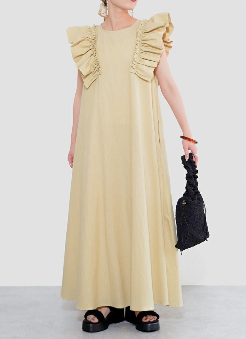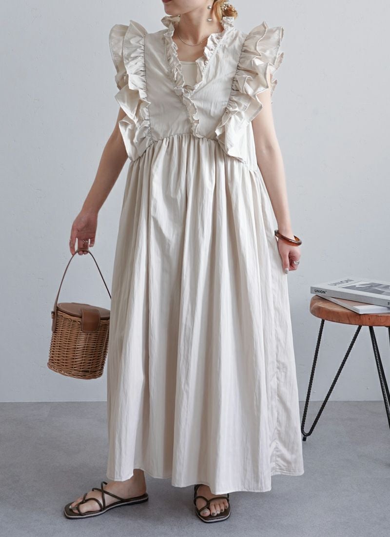 revoam【可愛くて、涼しくて、着映える。大人のための、サマーフリルワンピ】 【25%OFF】リネンタッチノースリ フリルワンピース