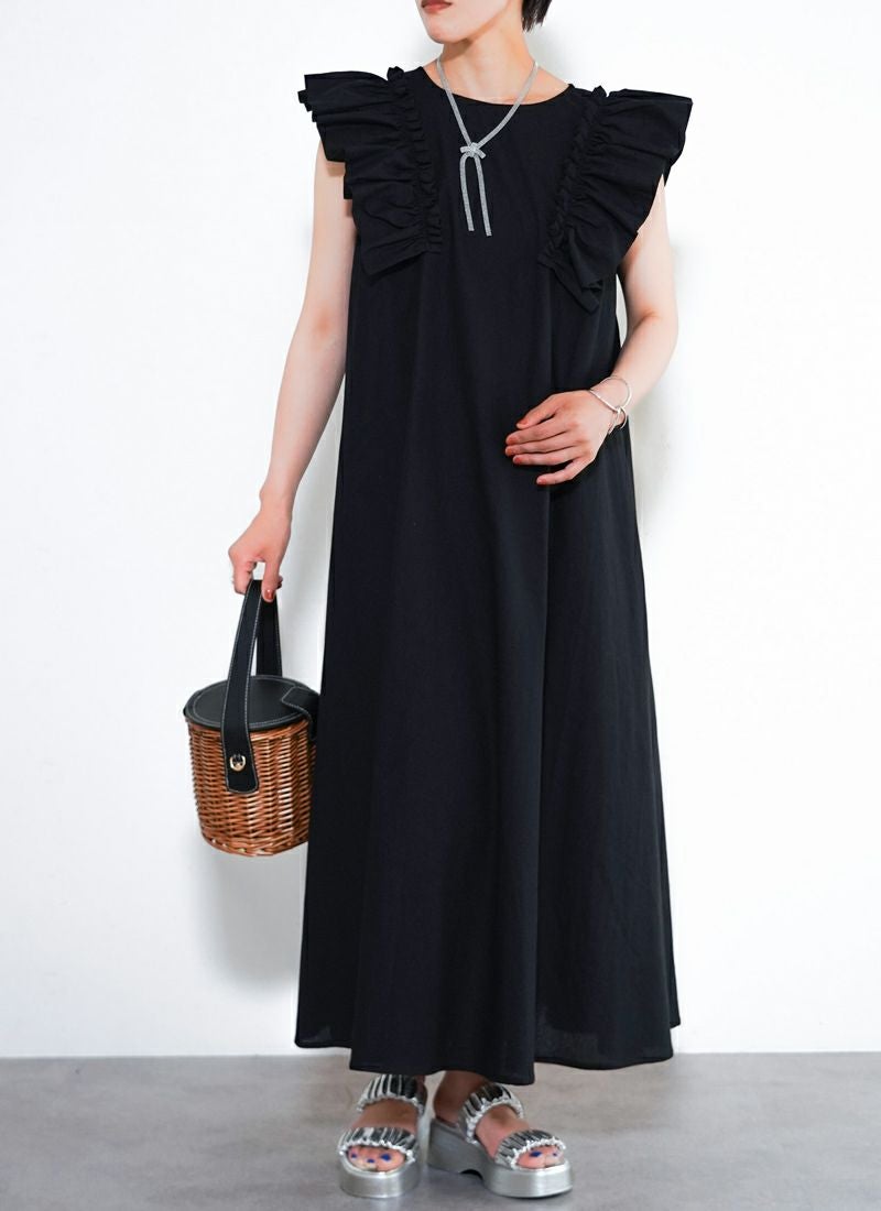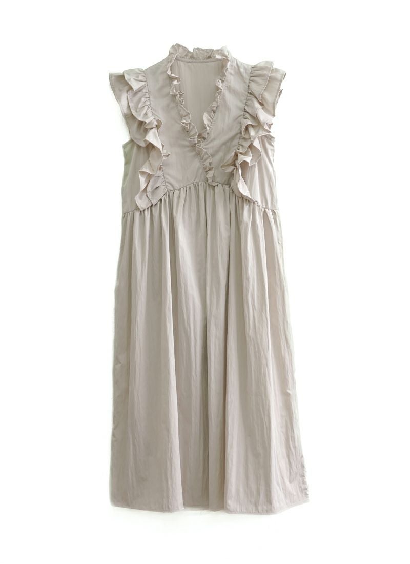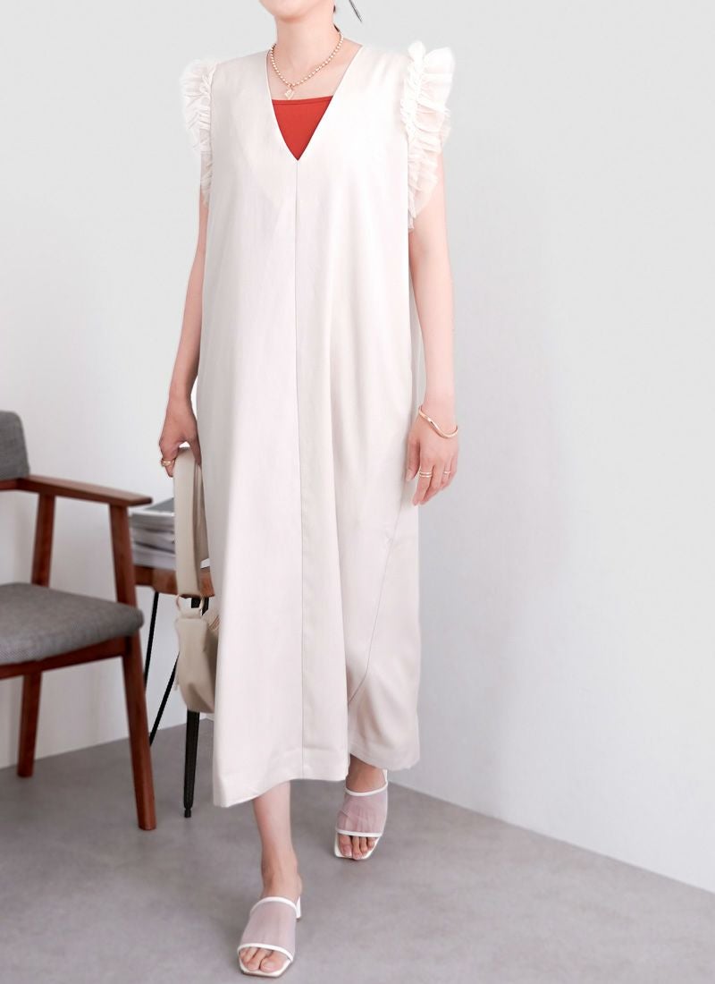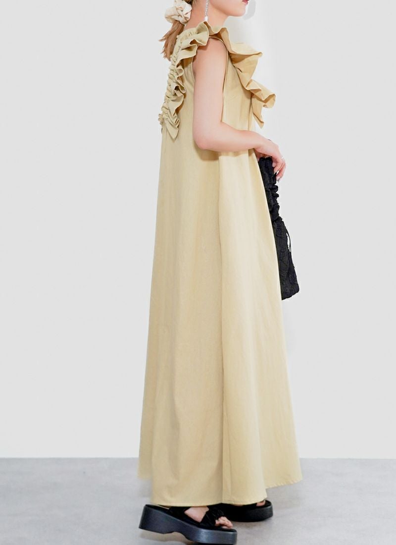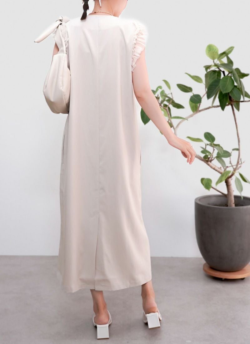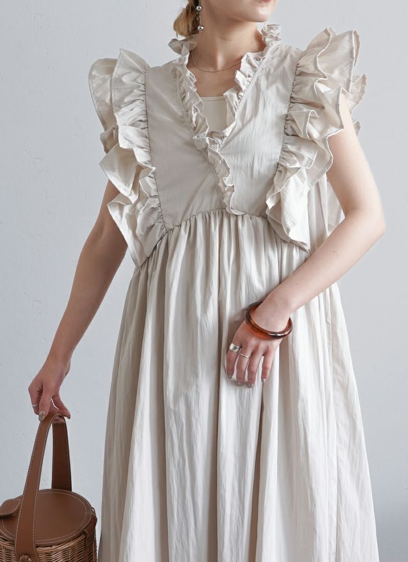 revoam【可愛くて、涼しくて、着映える。大人のための、サマーフリルワンピ】 【25%OFF】リネンタッチノースリ フリルワンピース