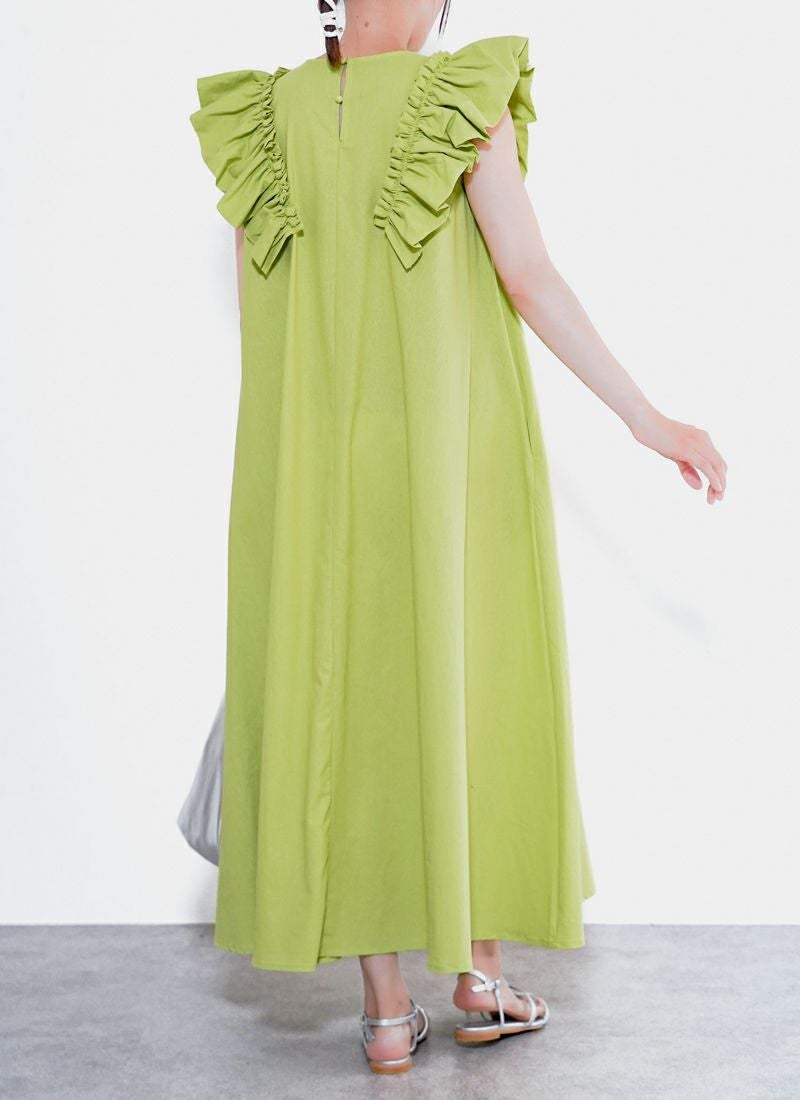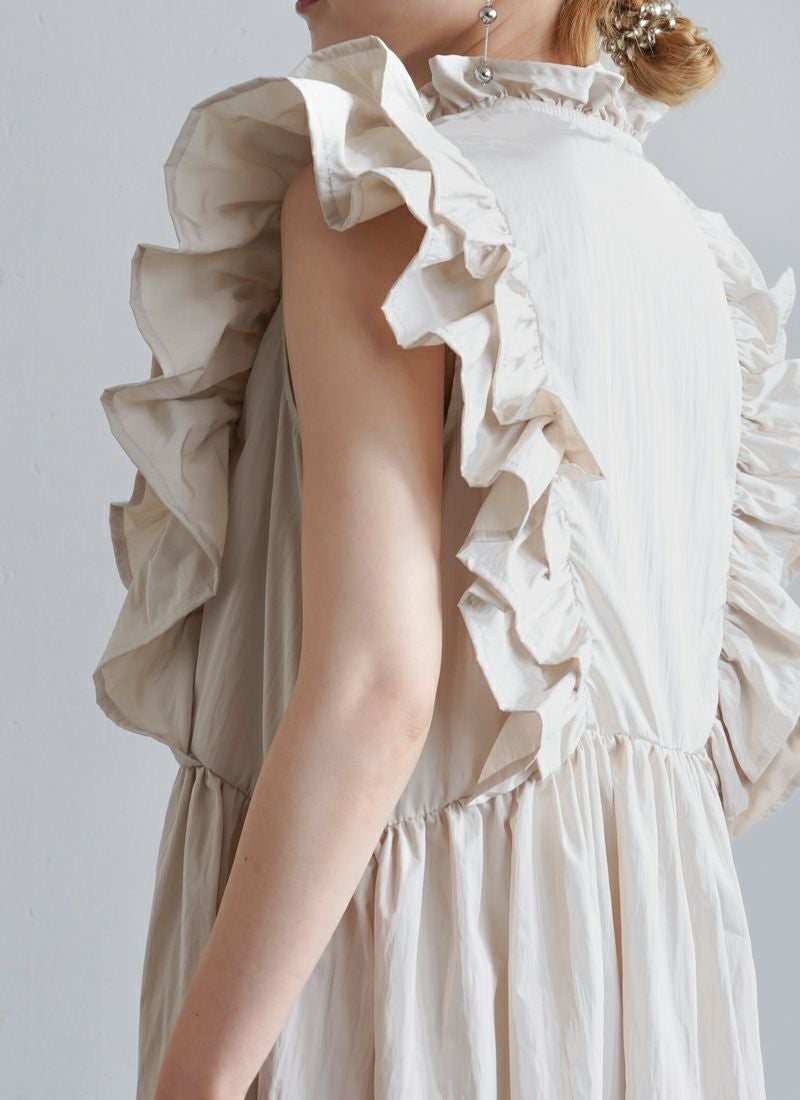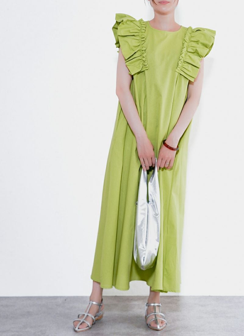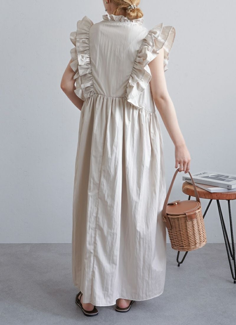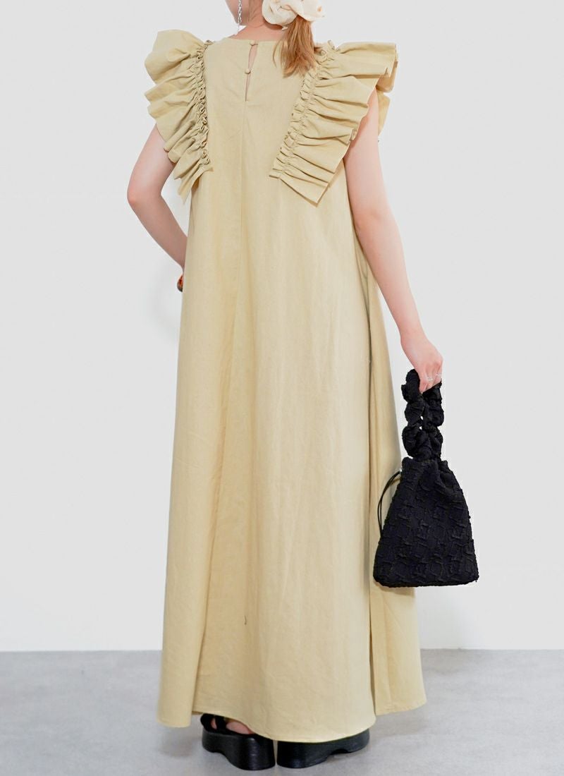 revoam【可愛くて、涼しくて、着映える。大人のための、サマーフリルワンピ】 【25%OFF】リネンタッチノースリ フリルワンピース