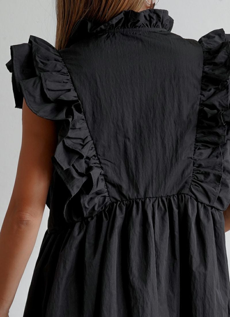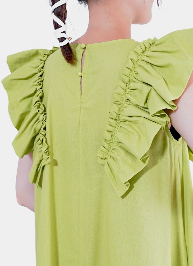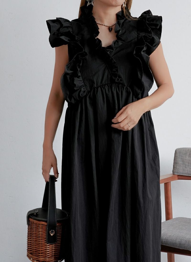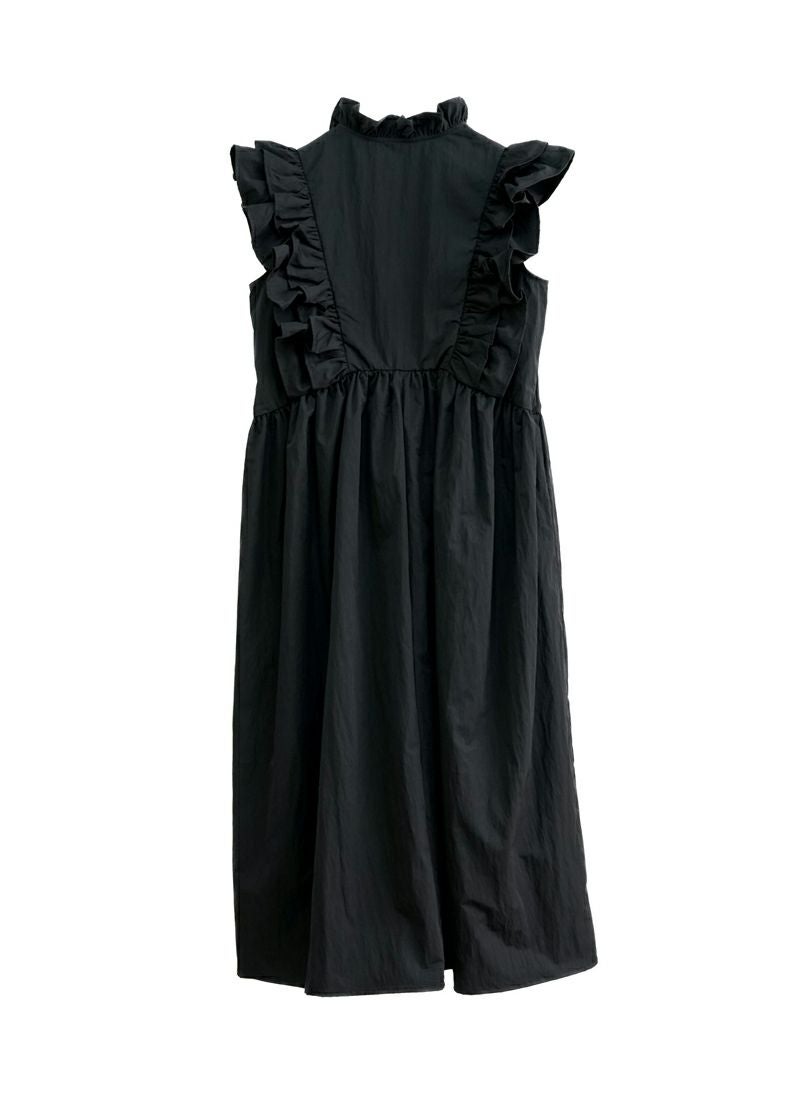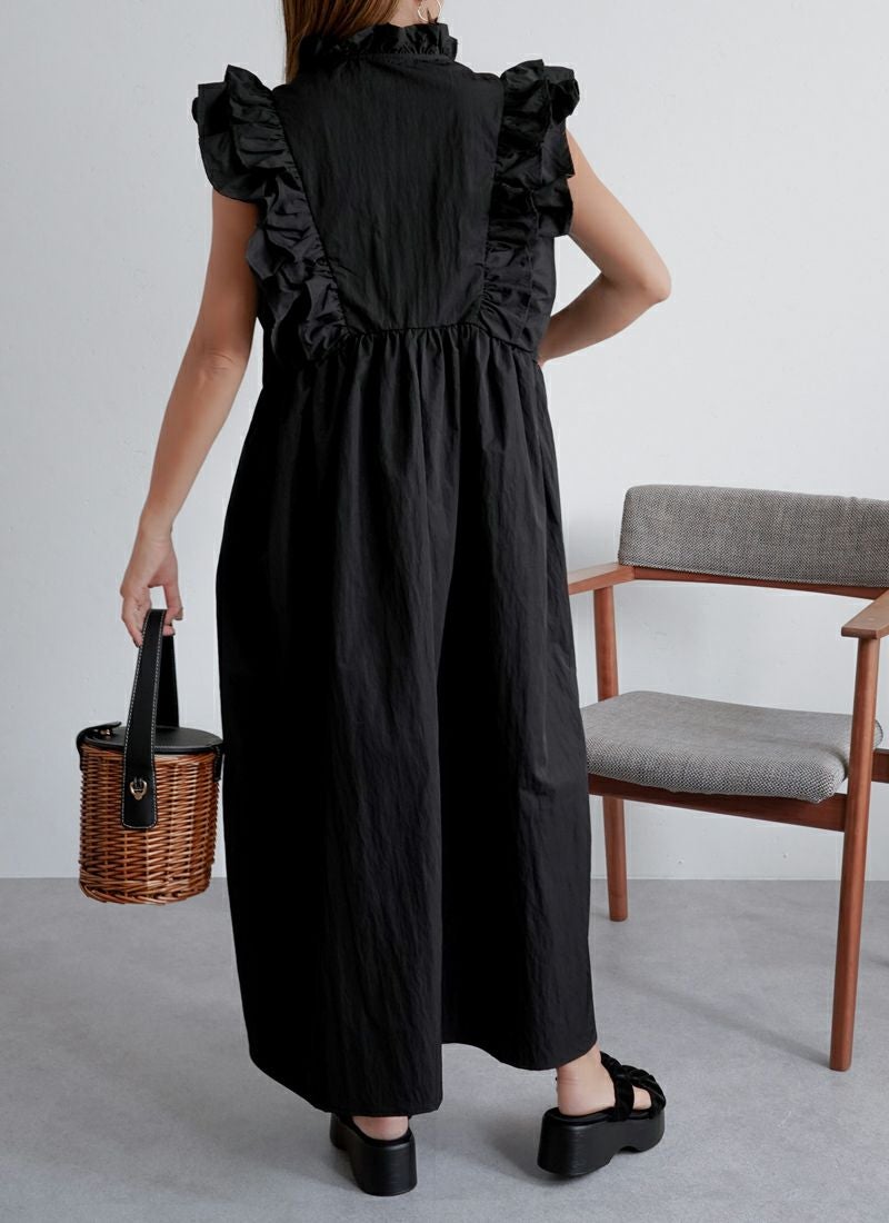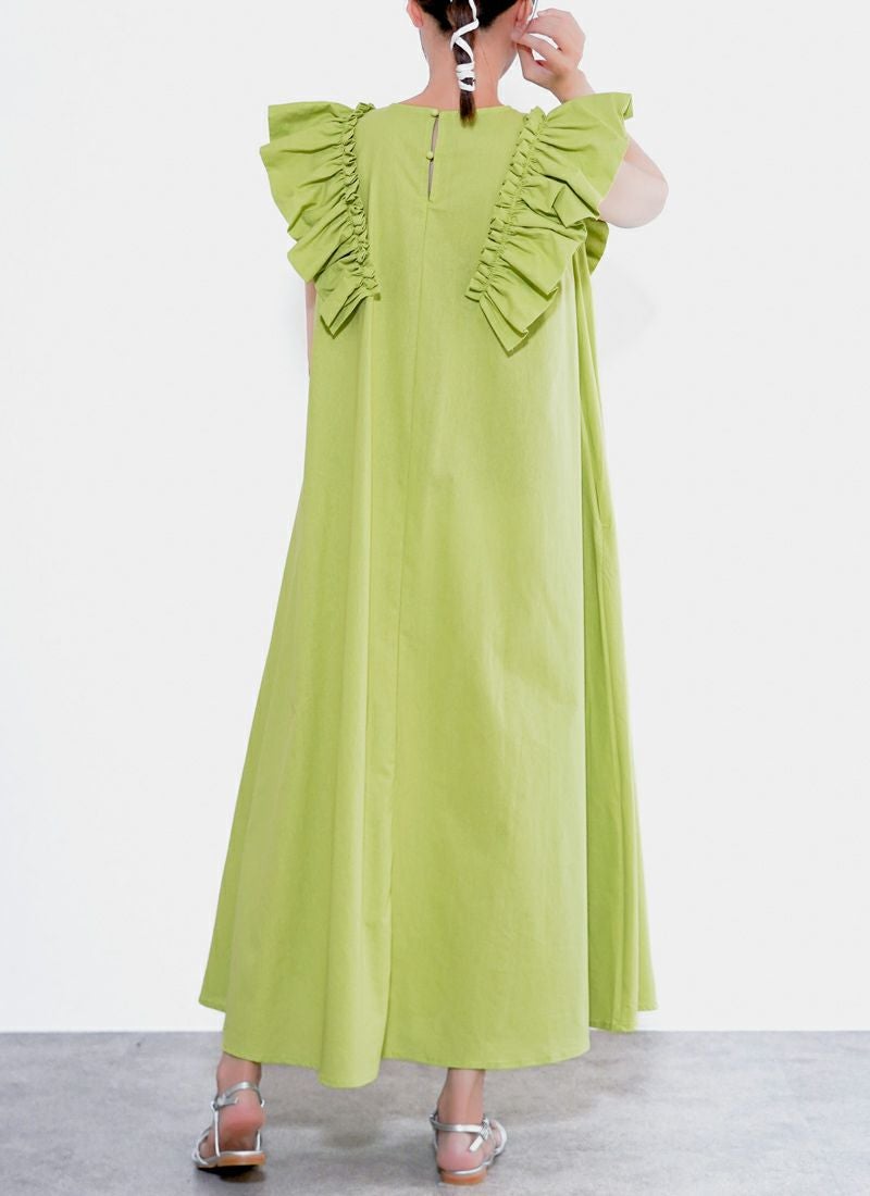 revoam【甘すぎないフリルが絶妙。一枚で“上品かわいい”が叶う、洗練デザイン】 【30%OFF】ツイル肩フリル付ワンピース