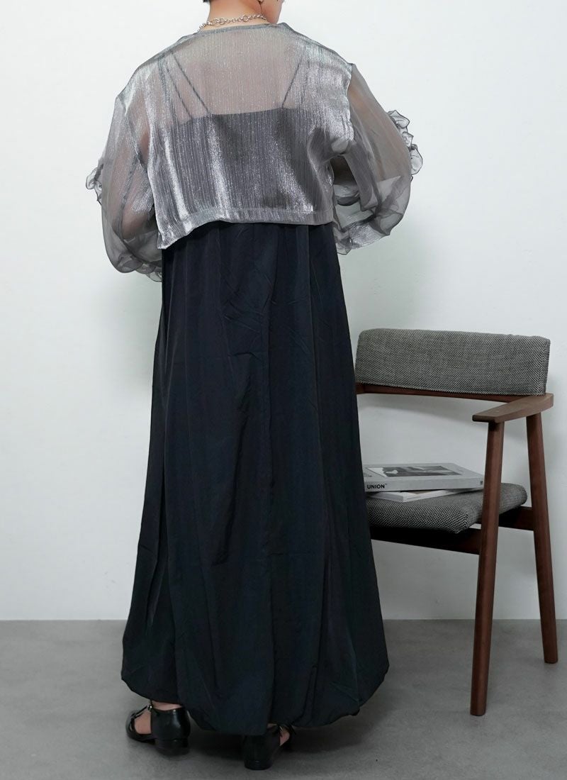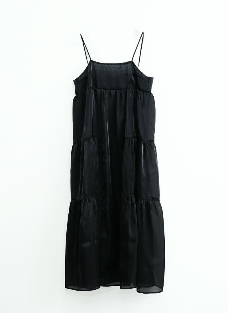 revoam【ふわり透け感。ラメがきらめくティアードワンピ。大人のための夏映えレイヤードに】 【30%OFF】ラメオーガンジーティアード キャミワンピース