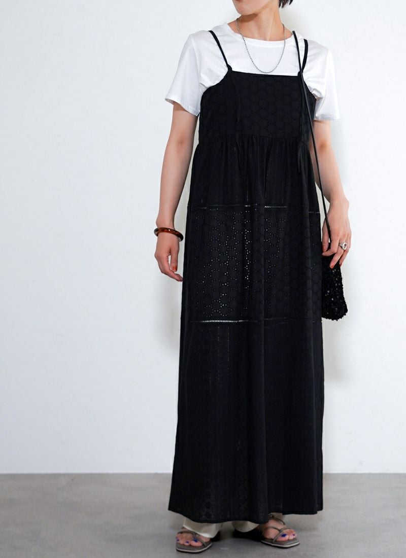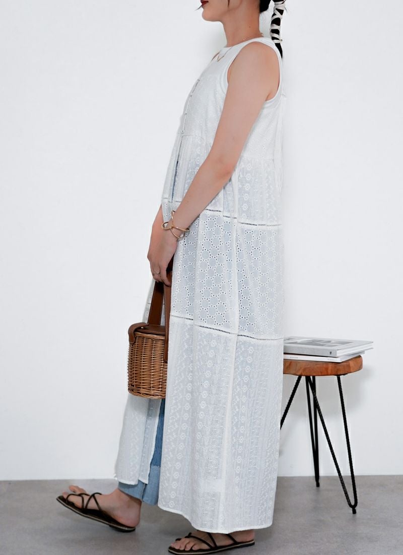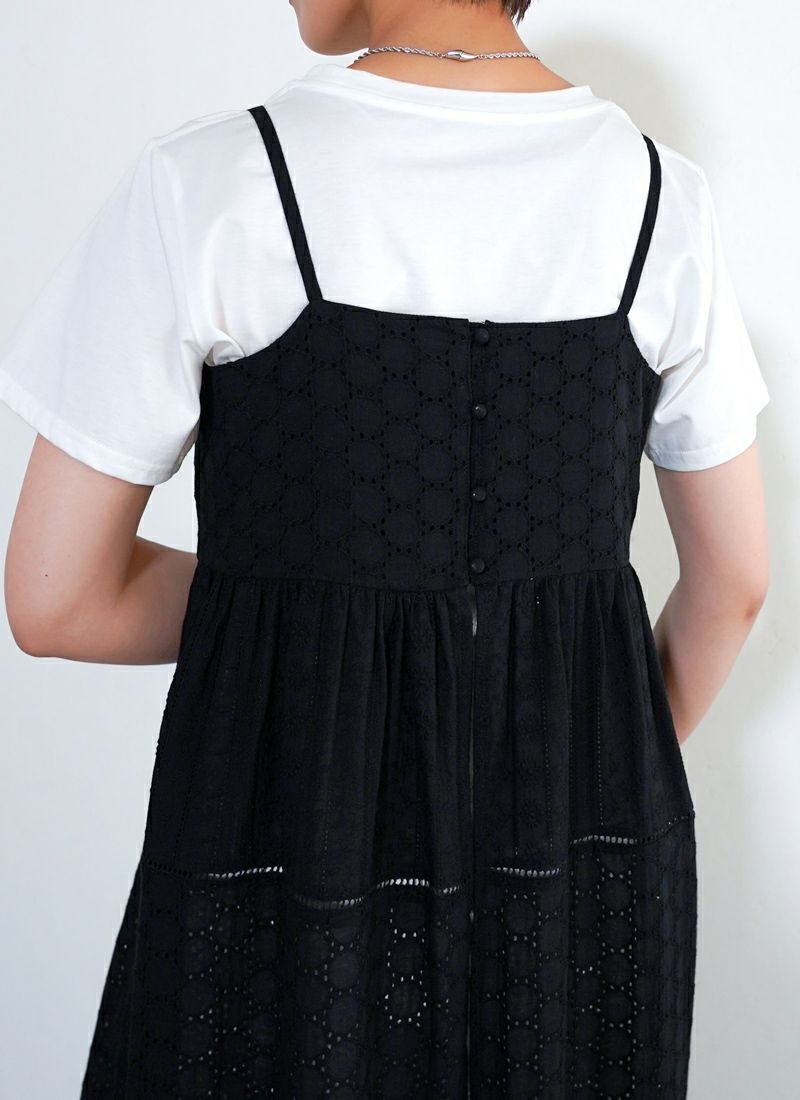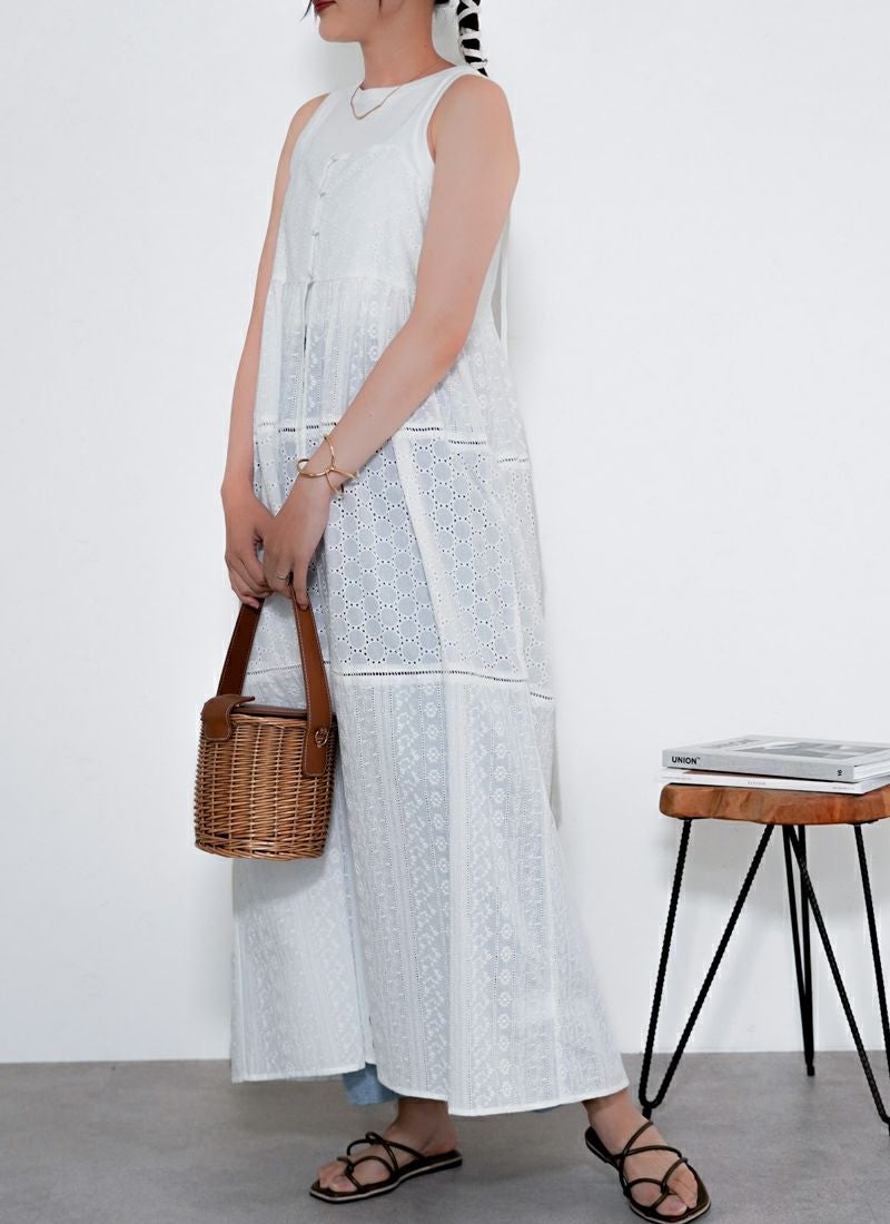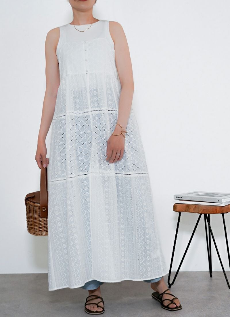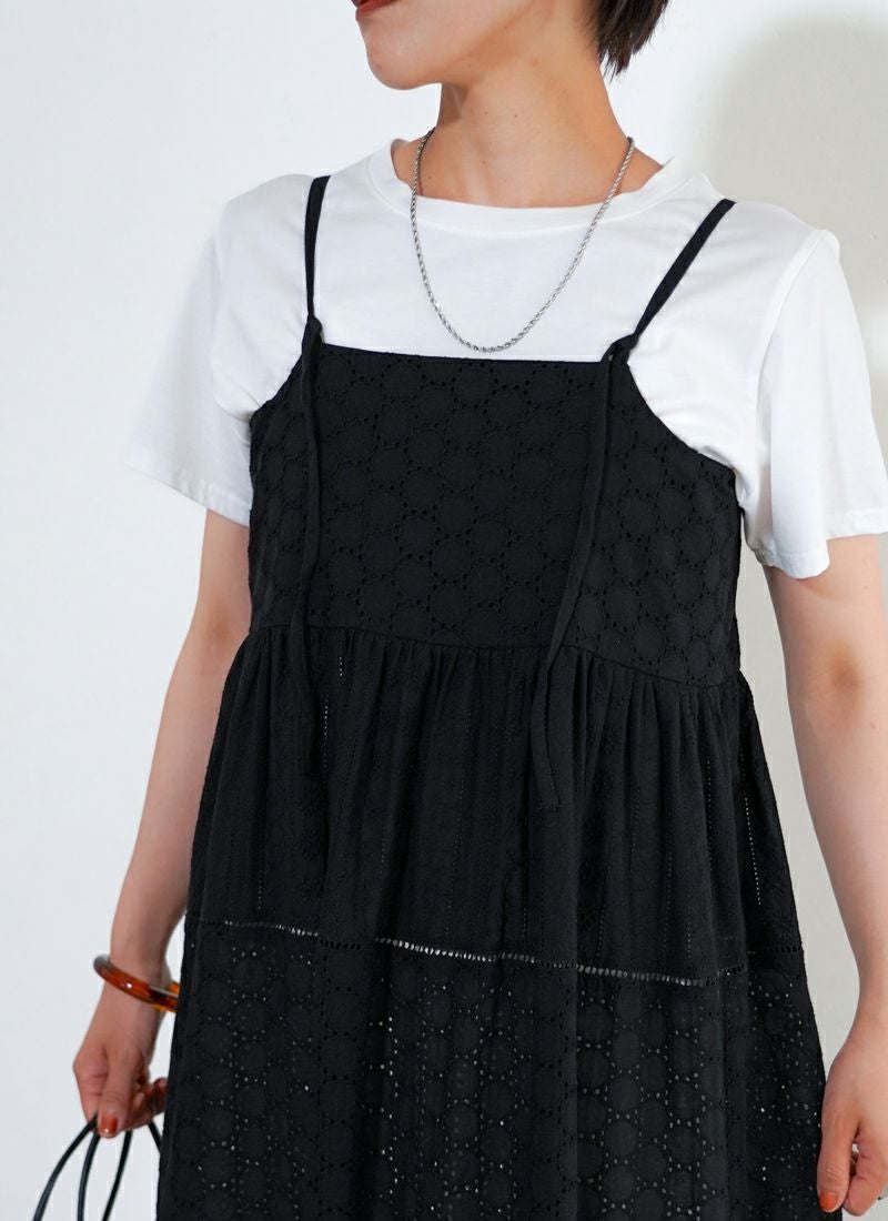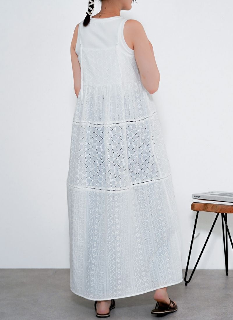 revoam【涼やかレースで差をつける、夏のおしゃれ。羽織にもなる2wayデザイン】 【25%OFF】コットンレースキャミワンピース