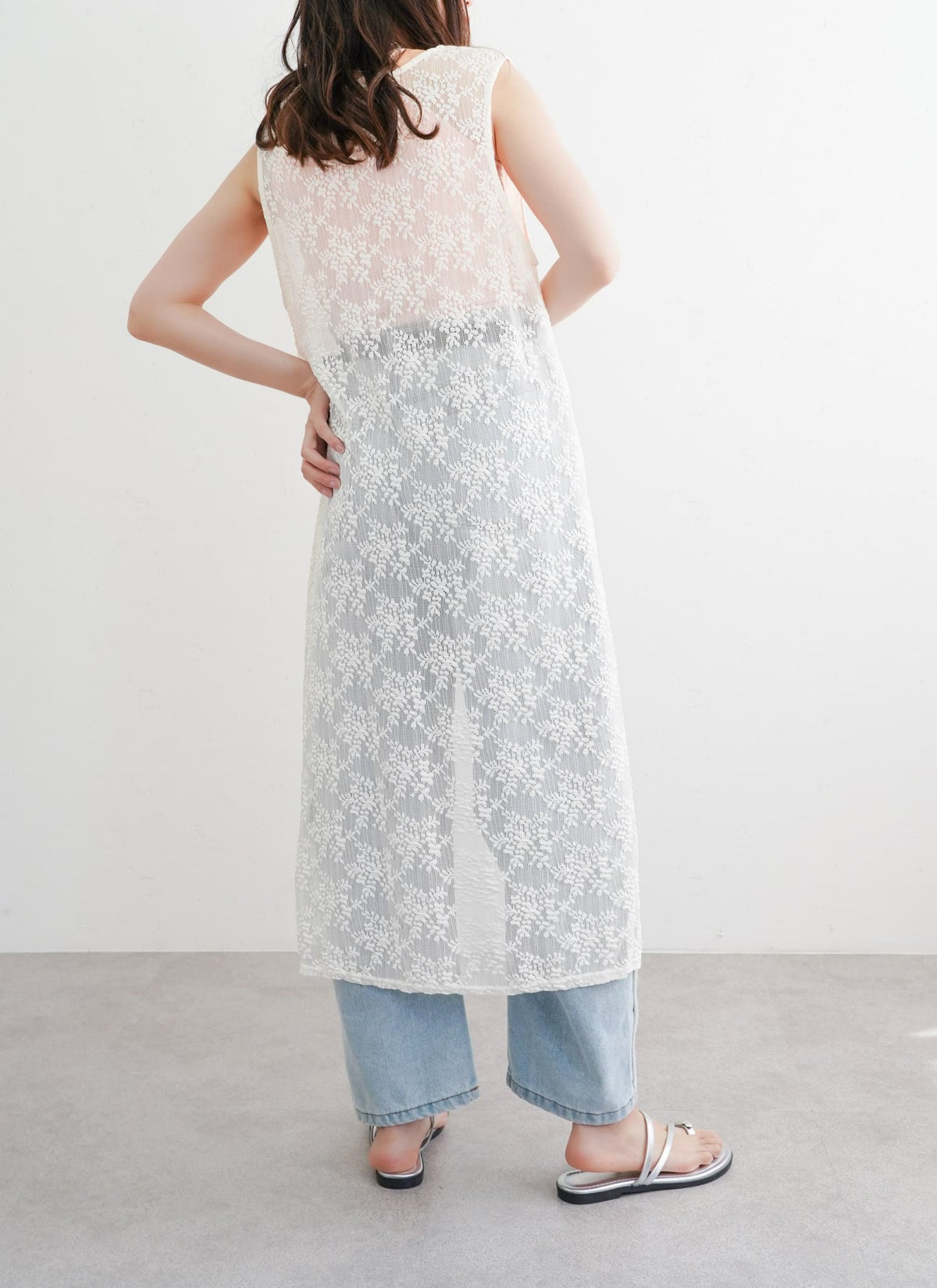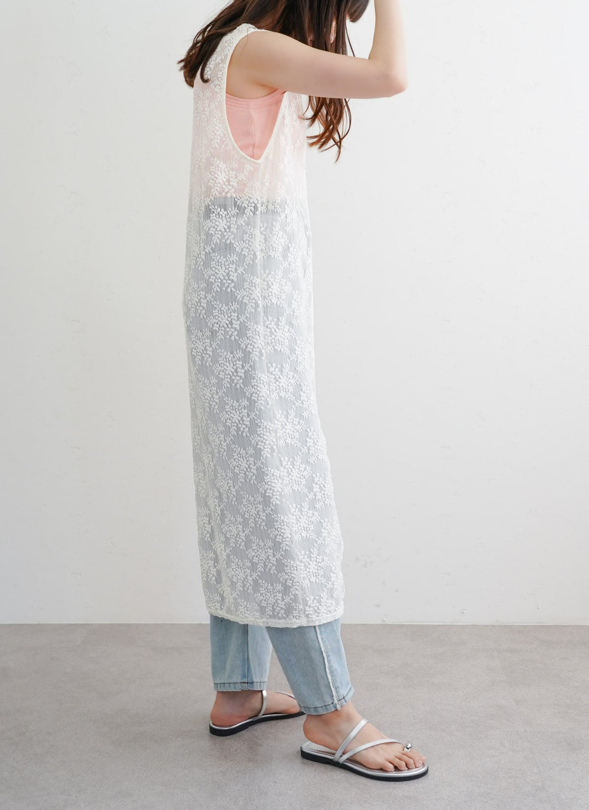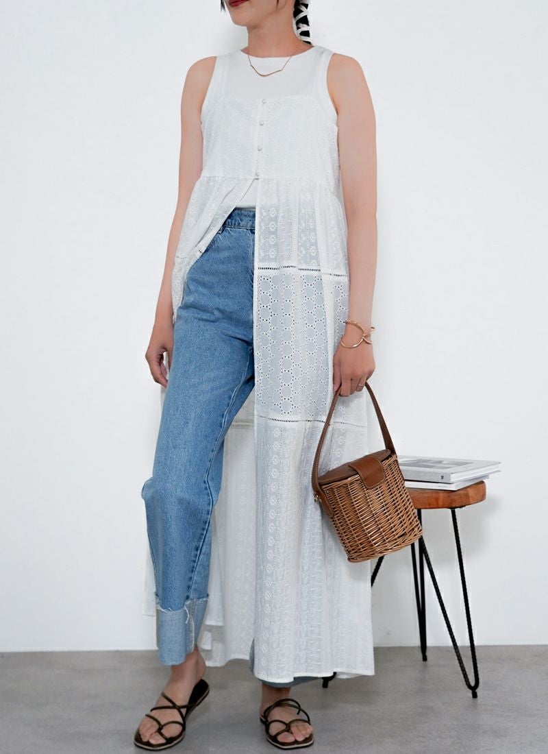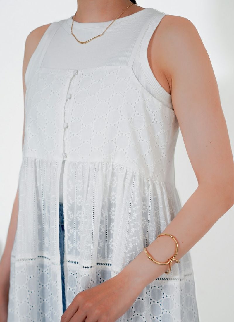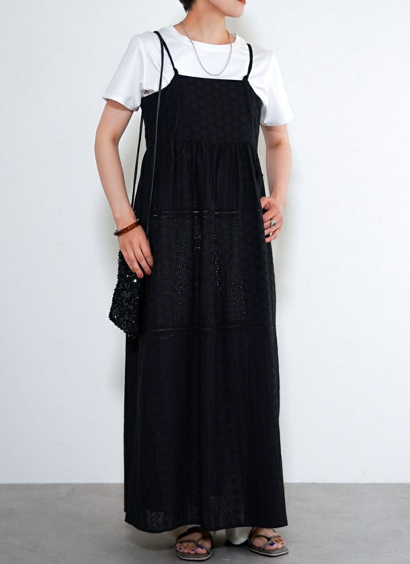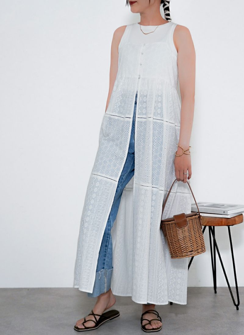 revoam【涼やかレースで差をつける、夏のおしゃれ。羽織にもなる2wayデザイン】 【25%OFF】コットンレースキャミワンピース