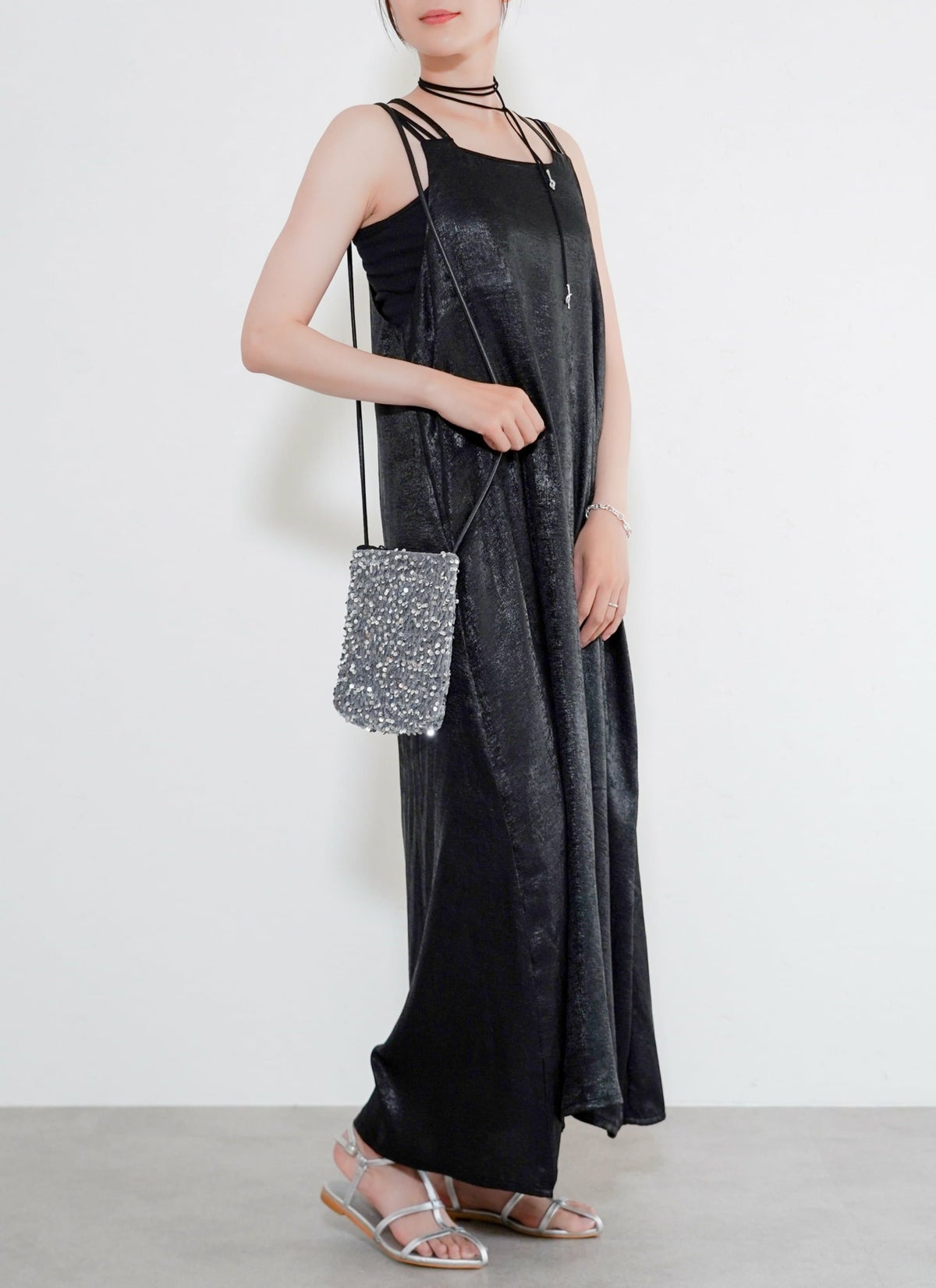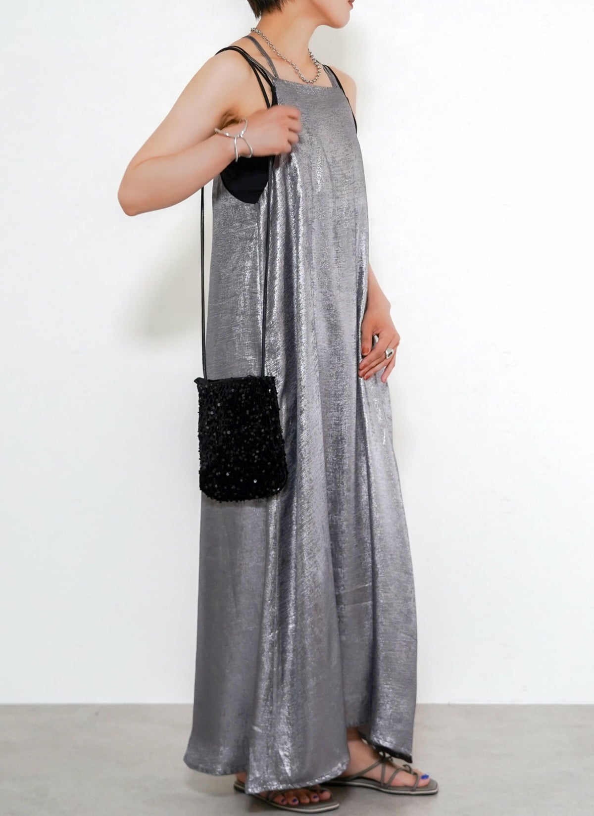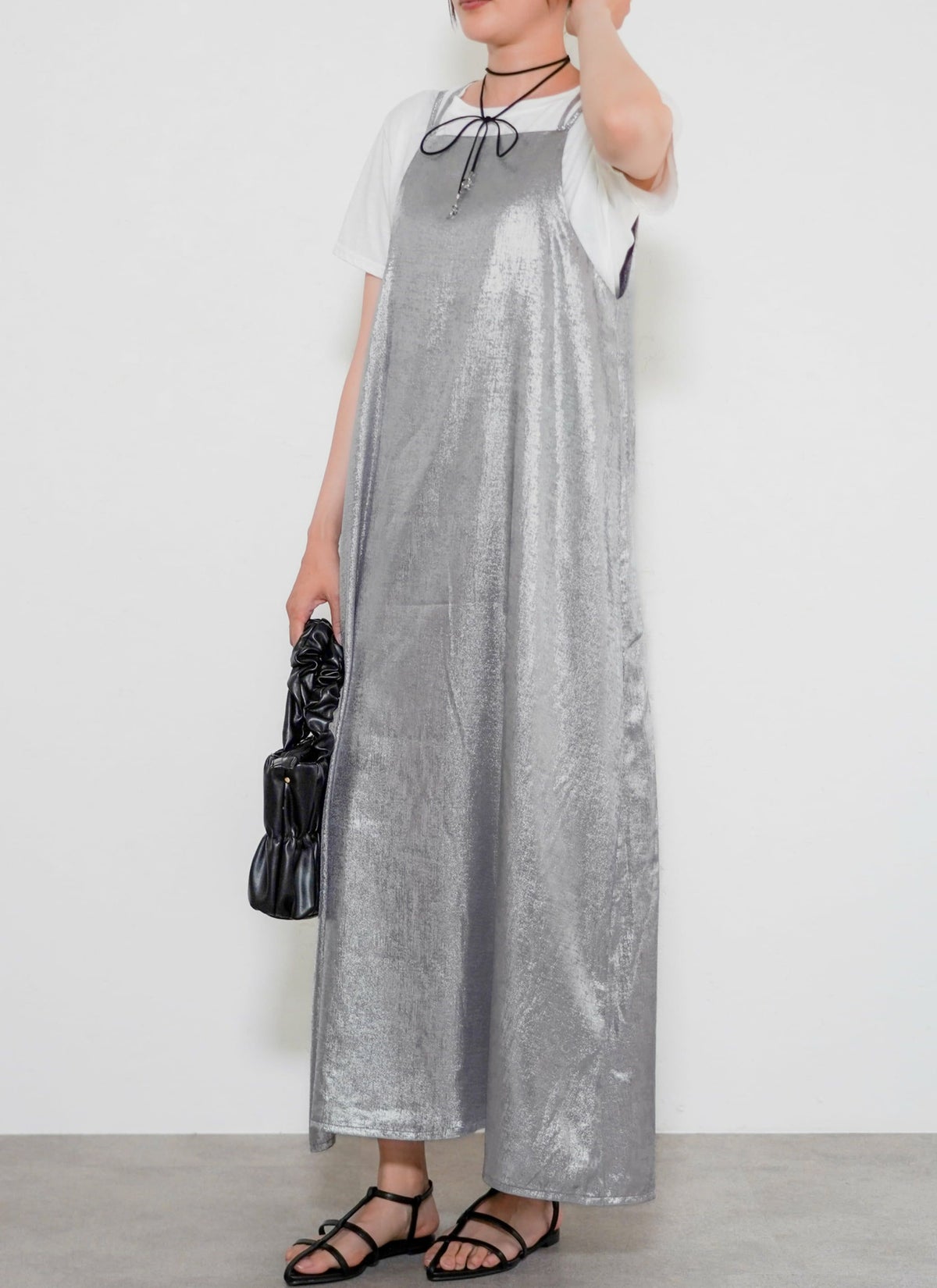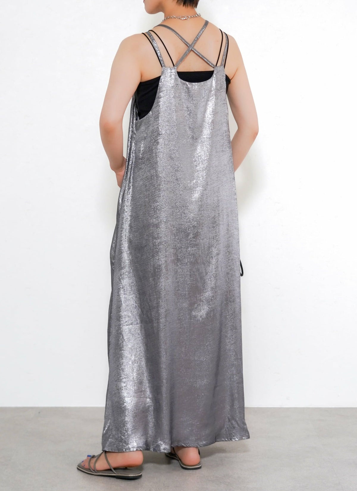revoam【とろみ素材×シャイニー感で魅せる、リゾートにも街にも映える一枚】 【30%OFF】シャイニーキャミワンピース