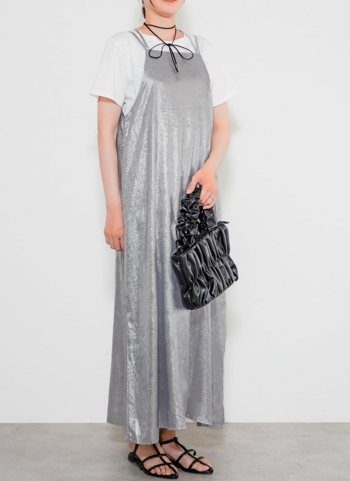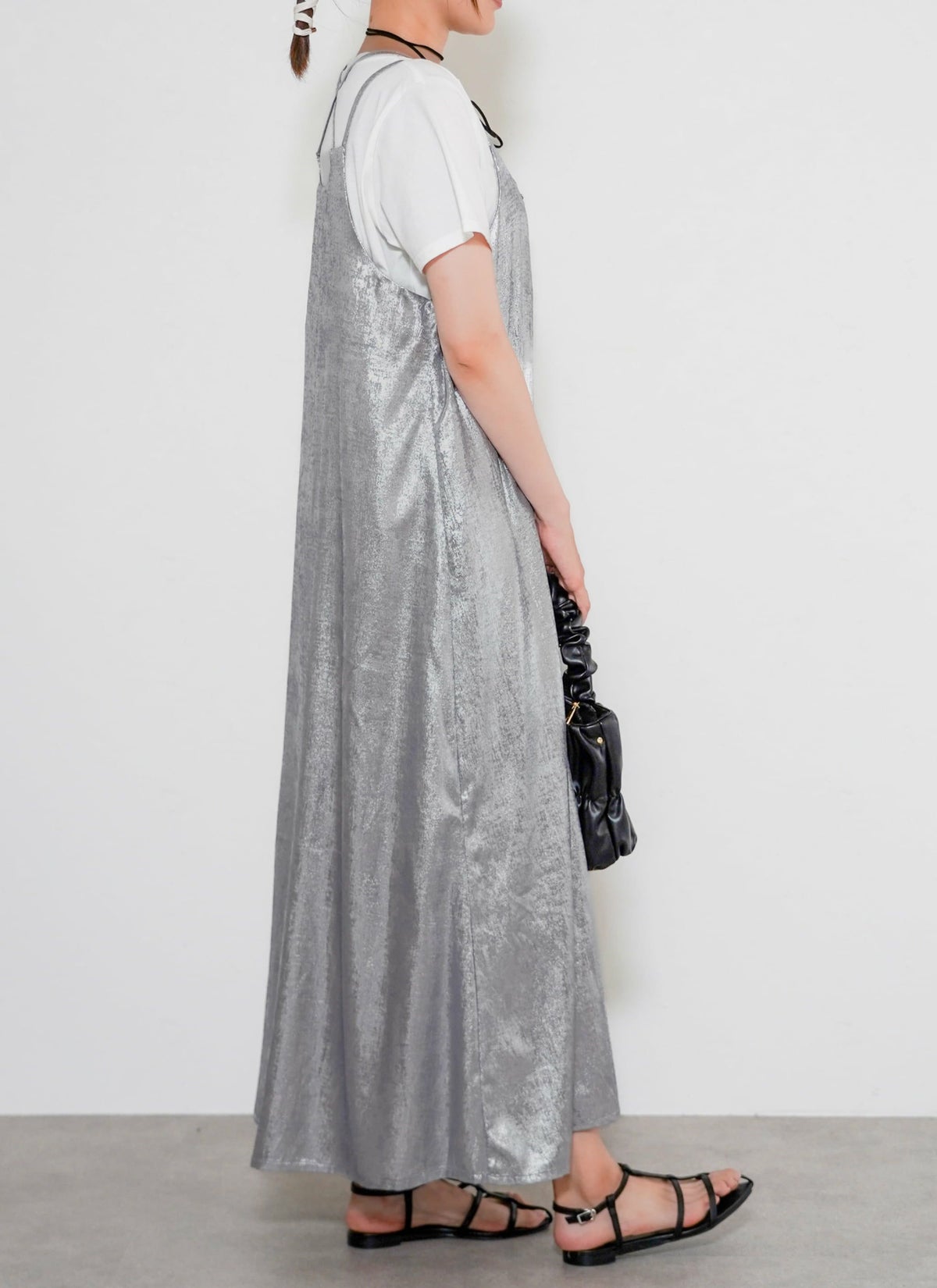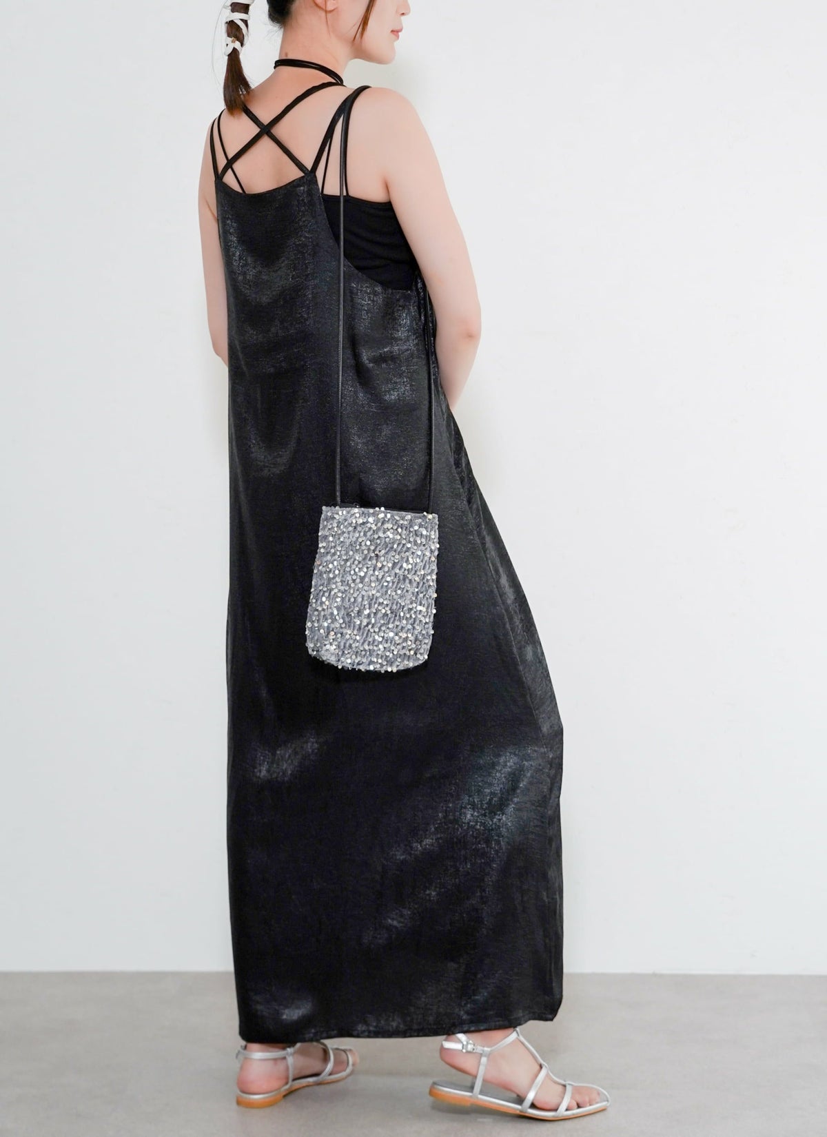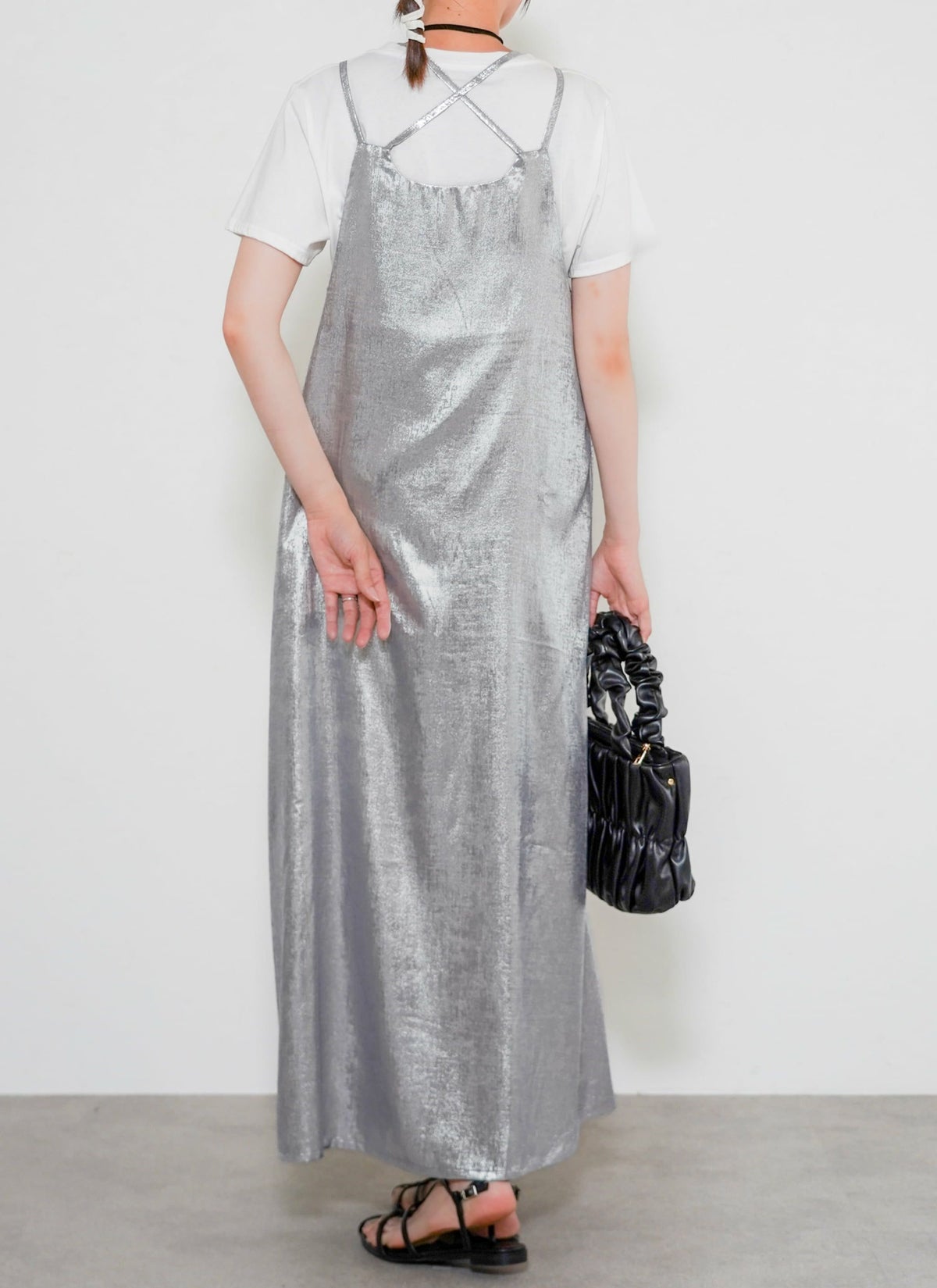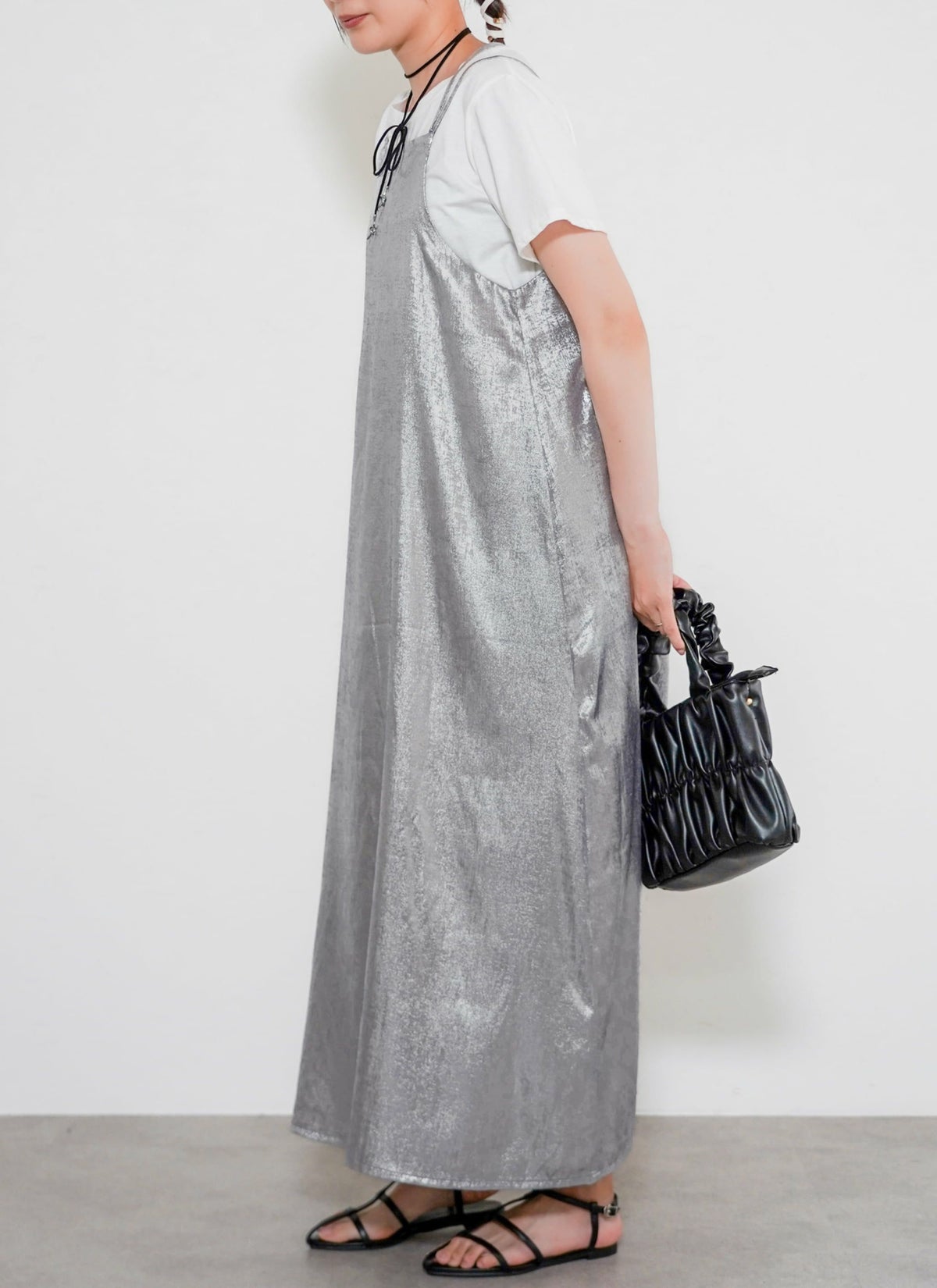 revoam【とろみ素材×シャイニー感で魅せる、リゾートにも街にも映える一枚】 【30%OFF】シャイニーキャミワンピース