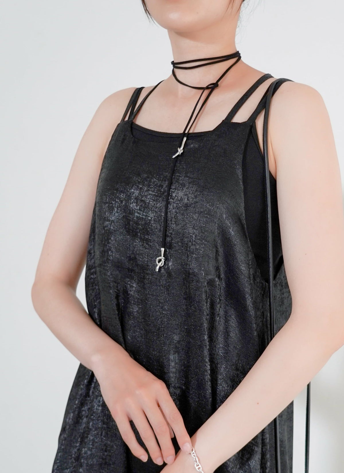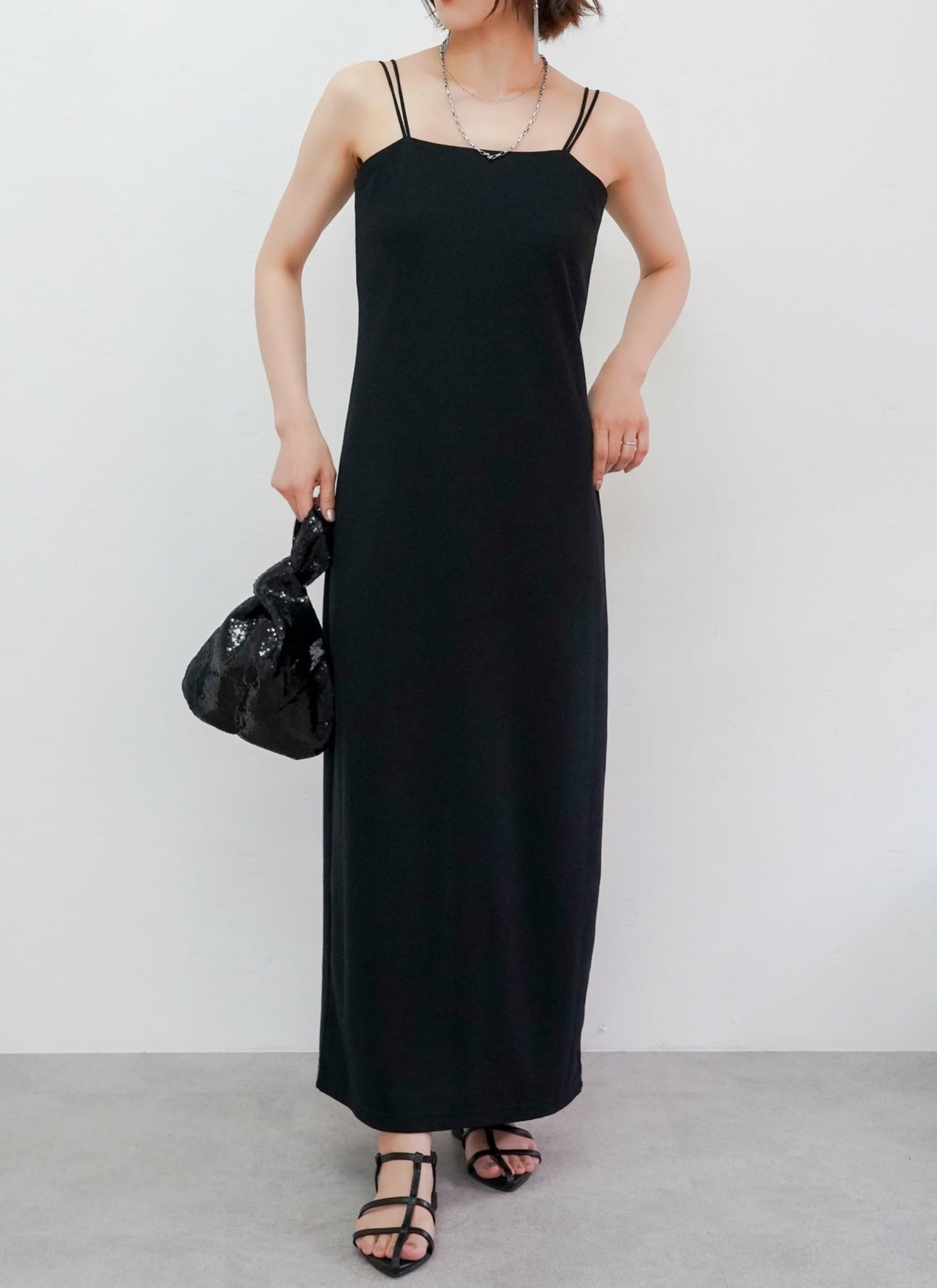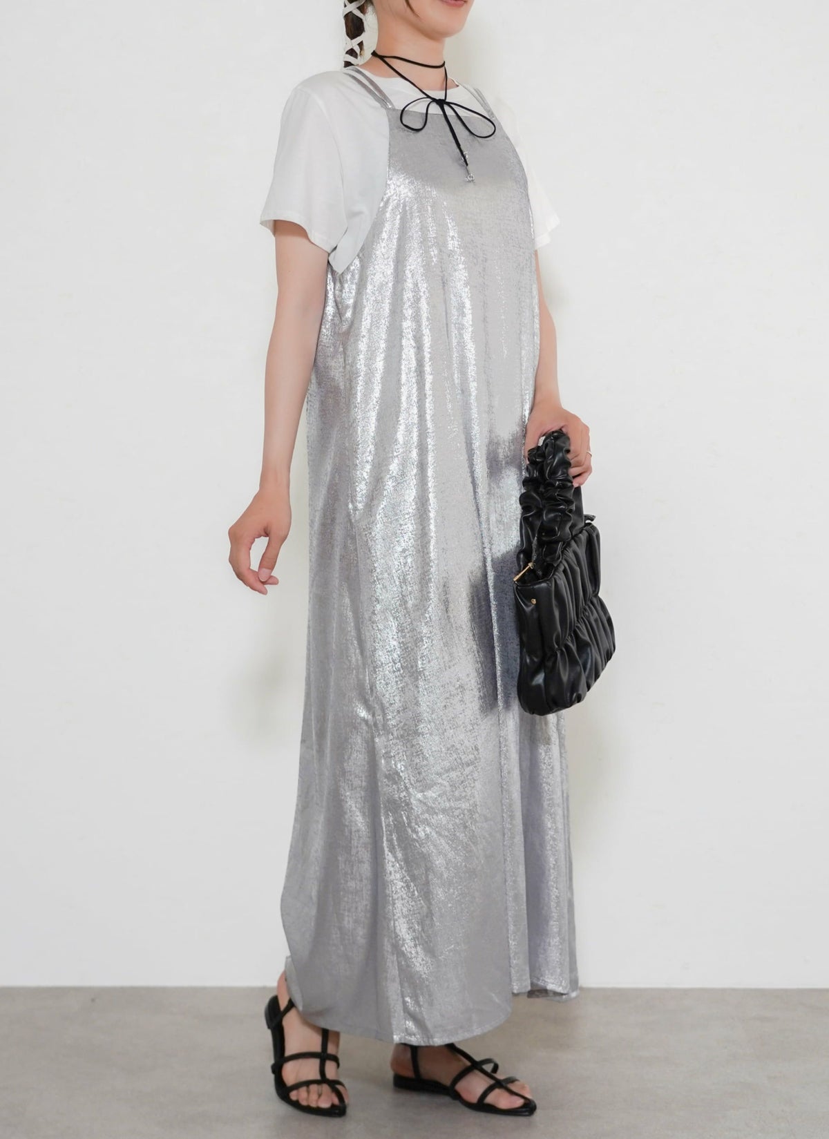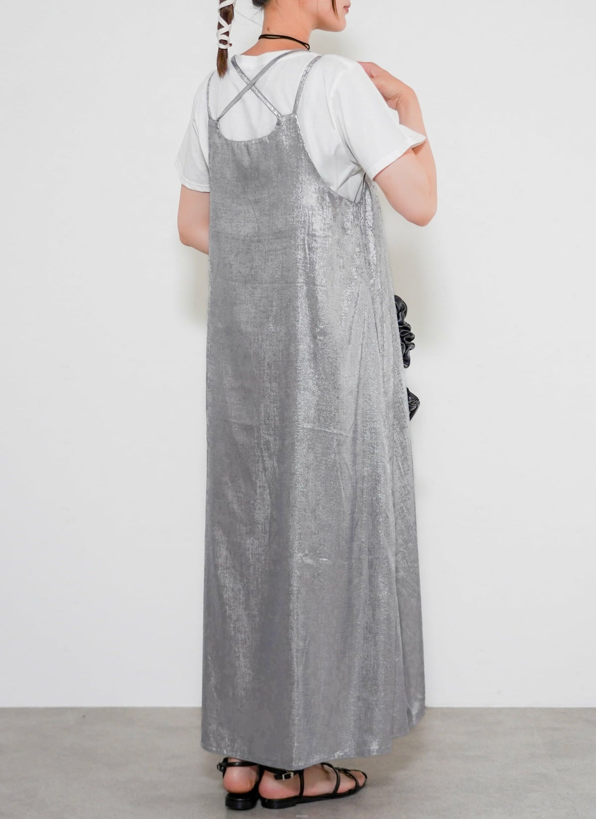 revoam【とろみ素材×シャイニー感で魅せる、リゾートにも街にも映える一枚】 【30%OFF】シャイニーキャミワンピース