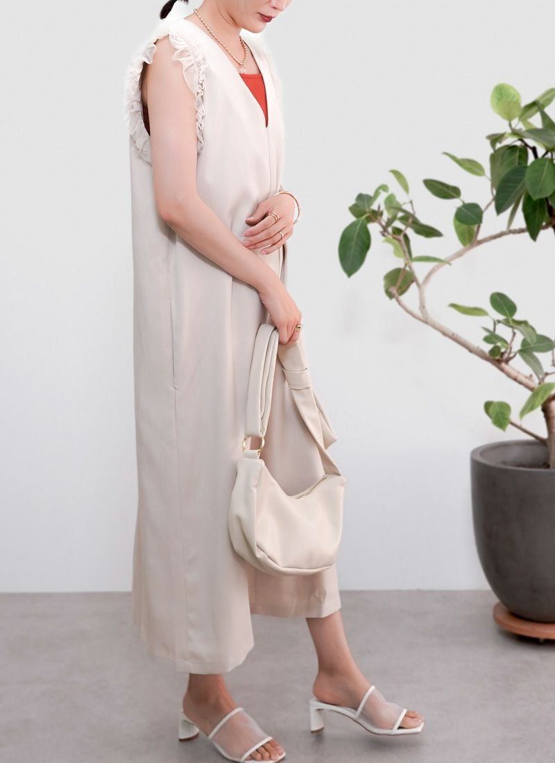 revoam【シンプルに着ても様になる、上品フェミニン。休日のお出かけも、ちょっと特別に】 【40%OFF】フリル ノースリワンピース