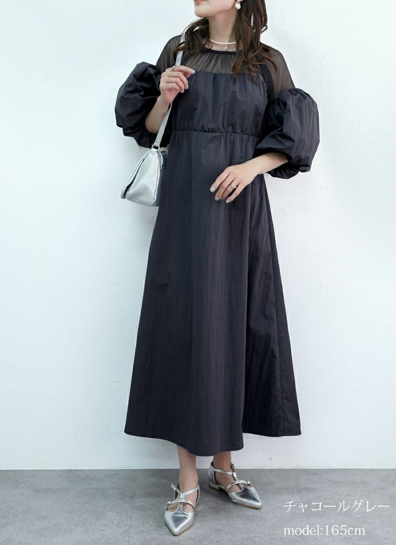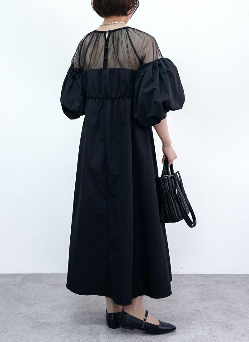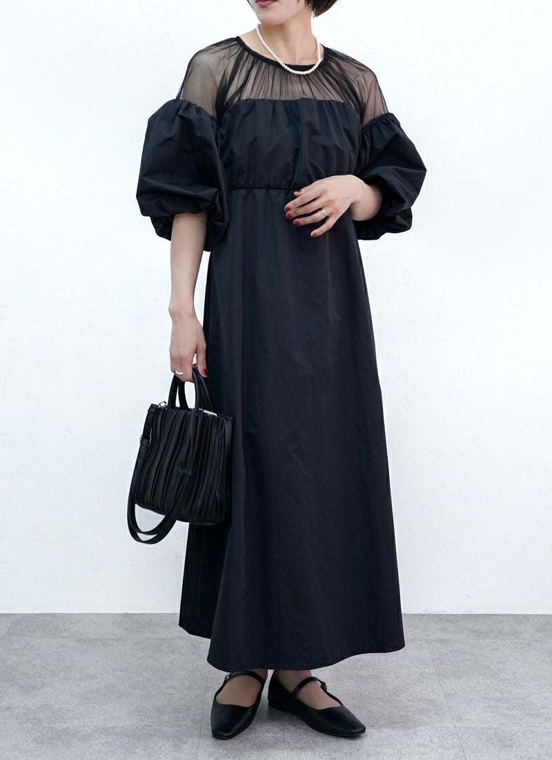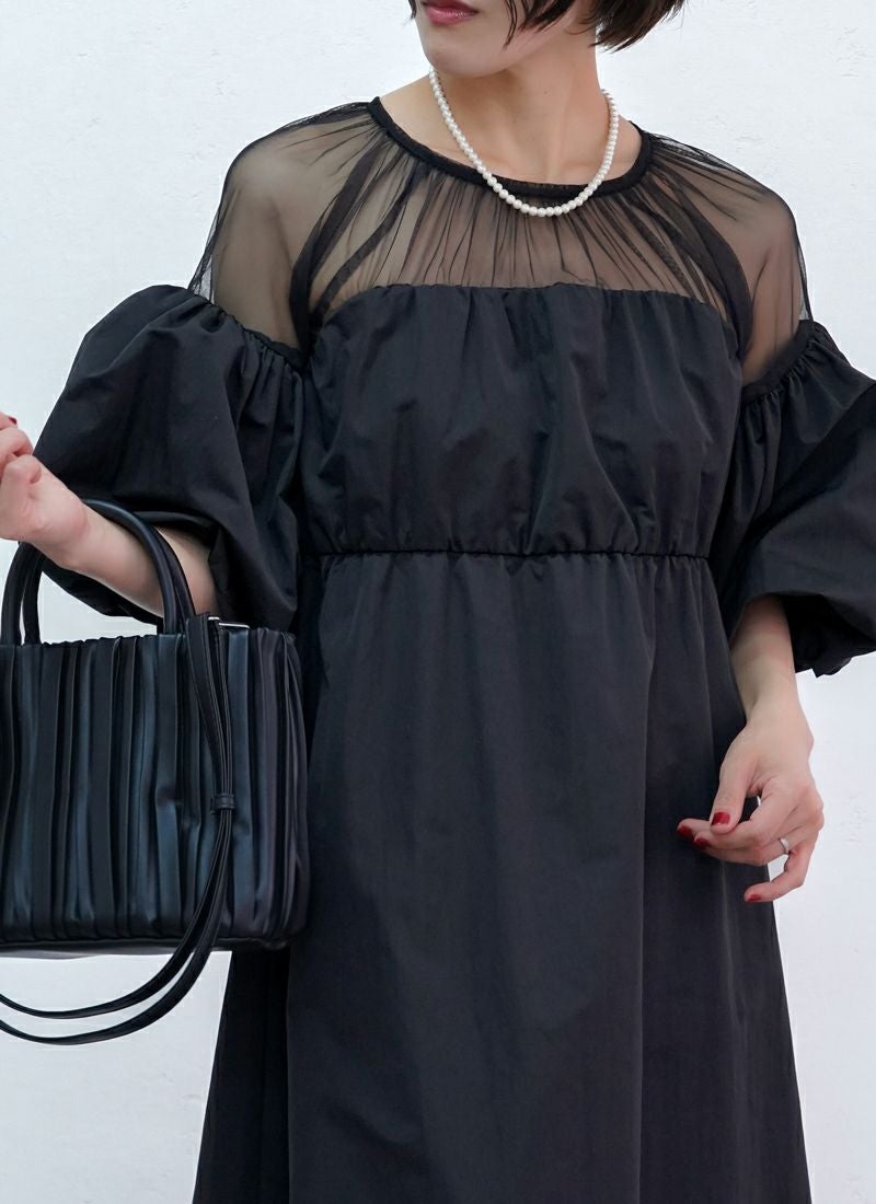 revoam【甘さ控えめ、大人のエレガンス。異素材のコントラストで魅せる、上級フェミニンスタイル】 【20%OFF】タフタ×チュールドッキングワンピース