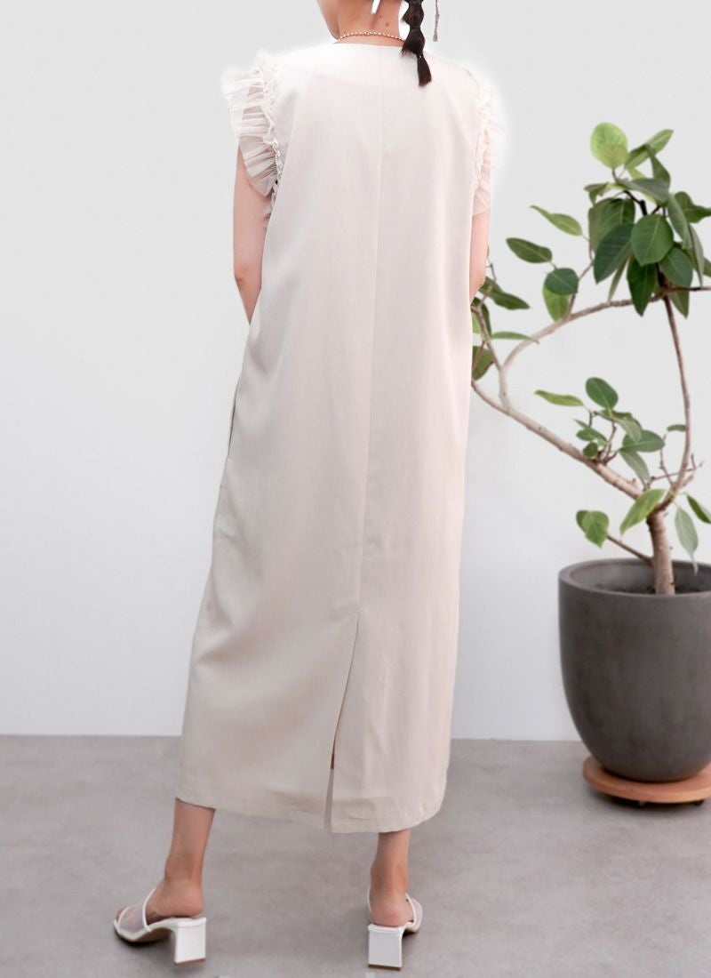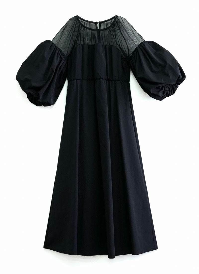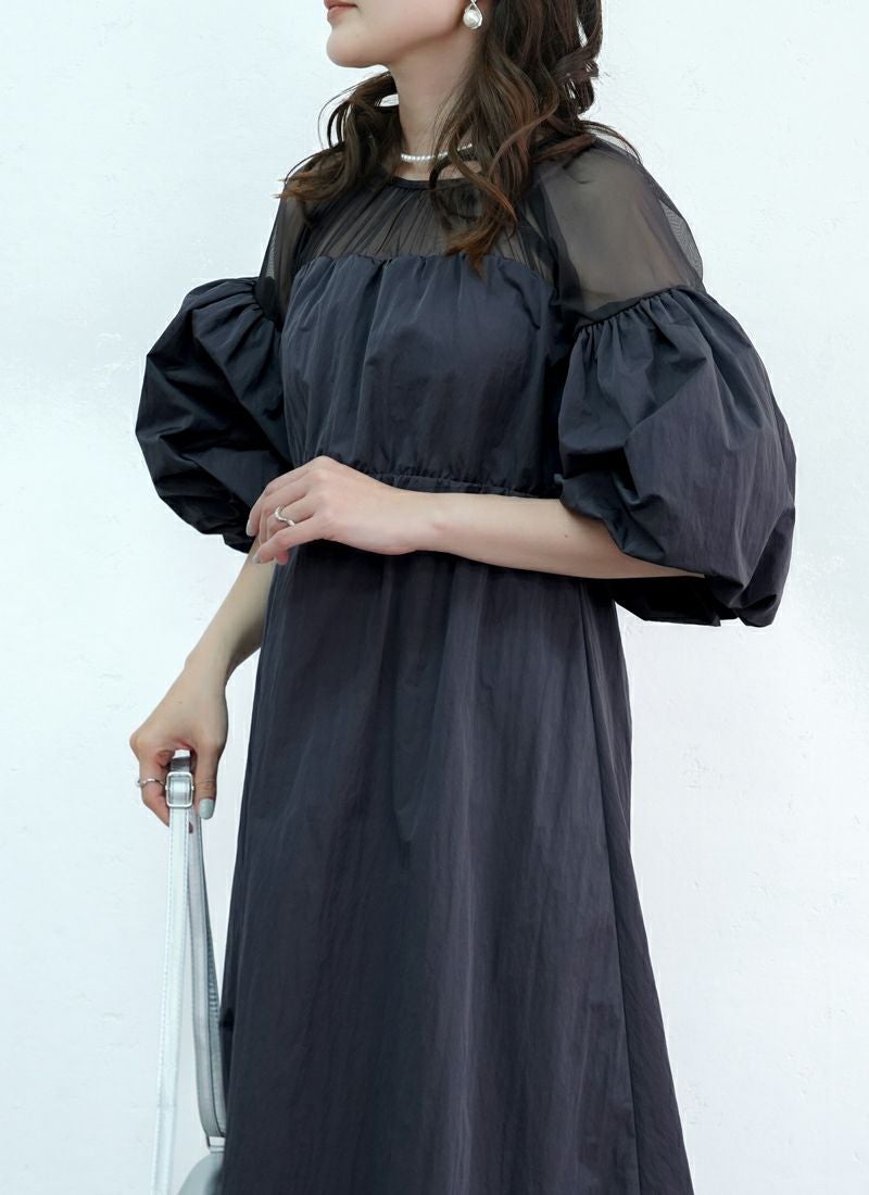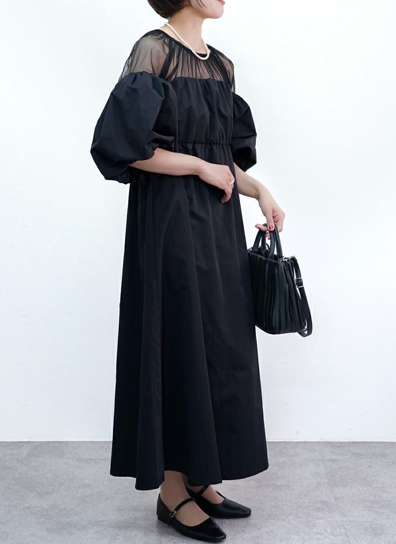 revoam【甘さ控えめ、大人のエレガンス。異素材のコントラストで魅せる、上級フェミニンスタイル】 【20%OFF】タフタ×チュールドッキングワンピース