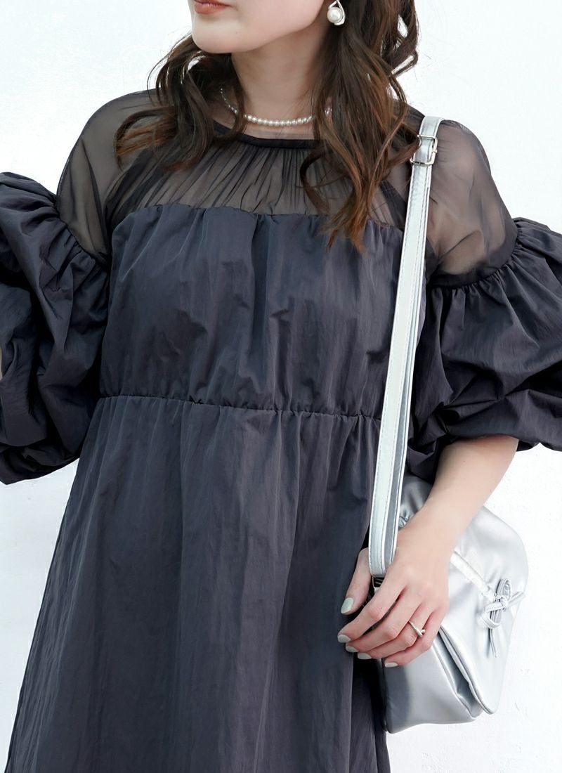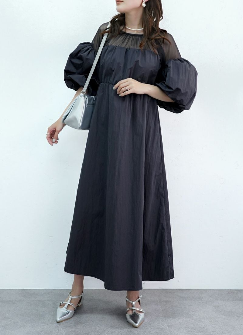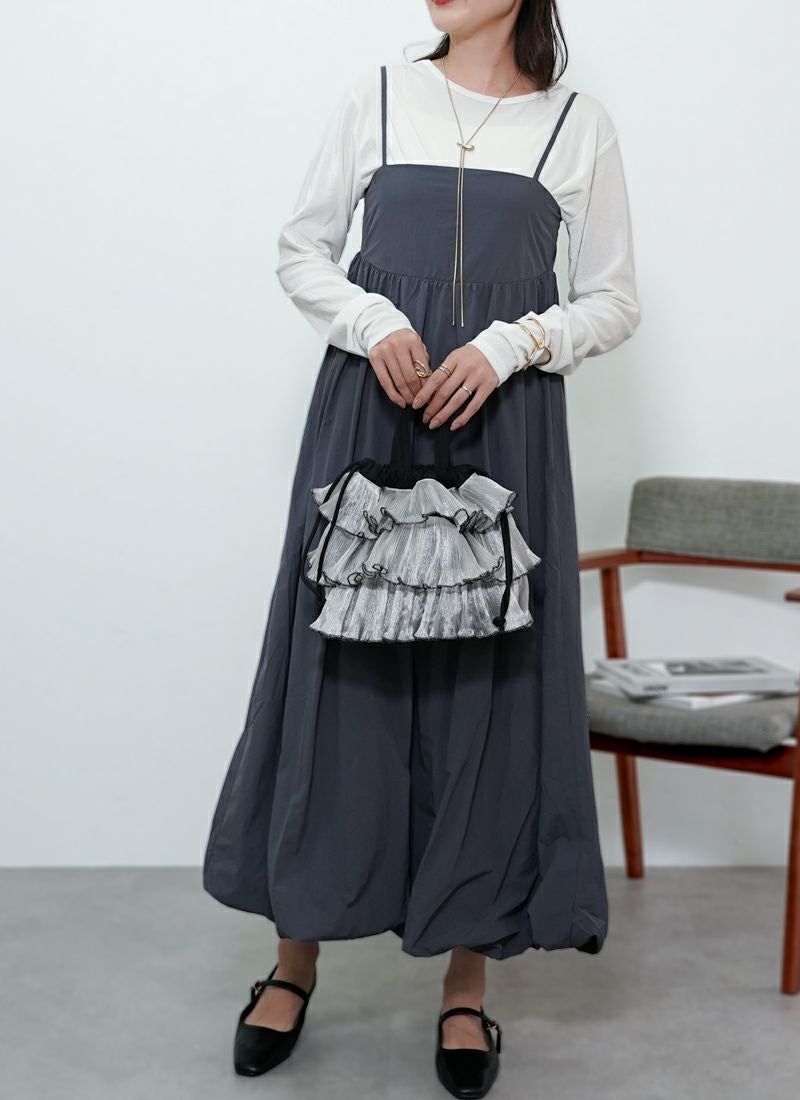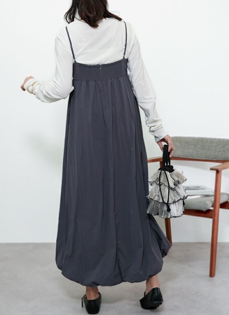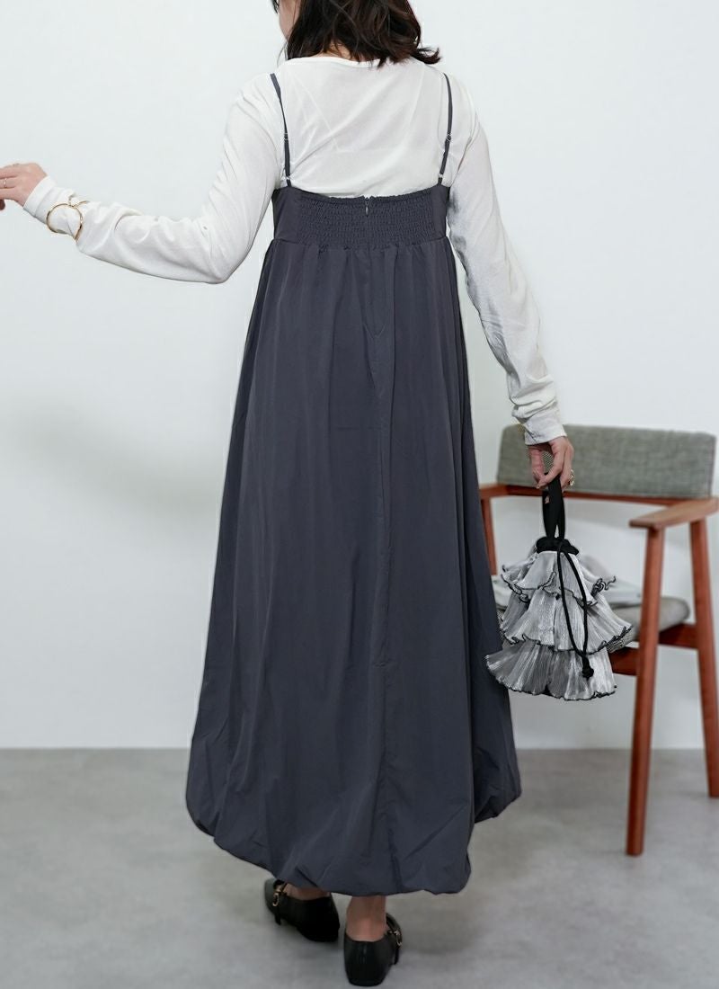 revoam【ふんわり軽やか、体型カバーもおまかせ。シンプルなのに映える大人のバルーンワンピ】 【30%OFF】ナイロンバルーンキャミワンピース