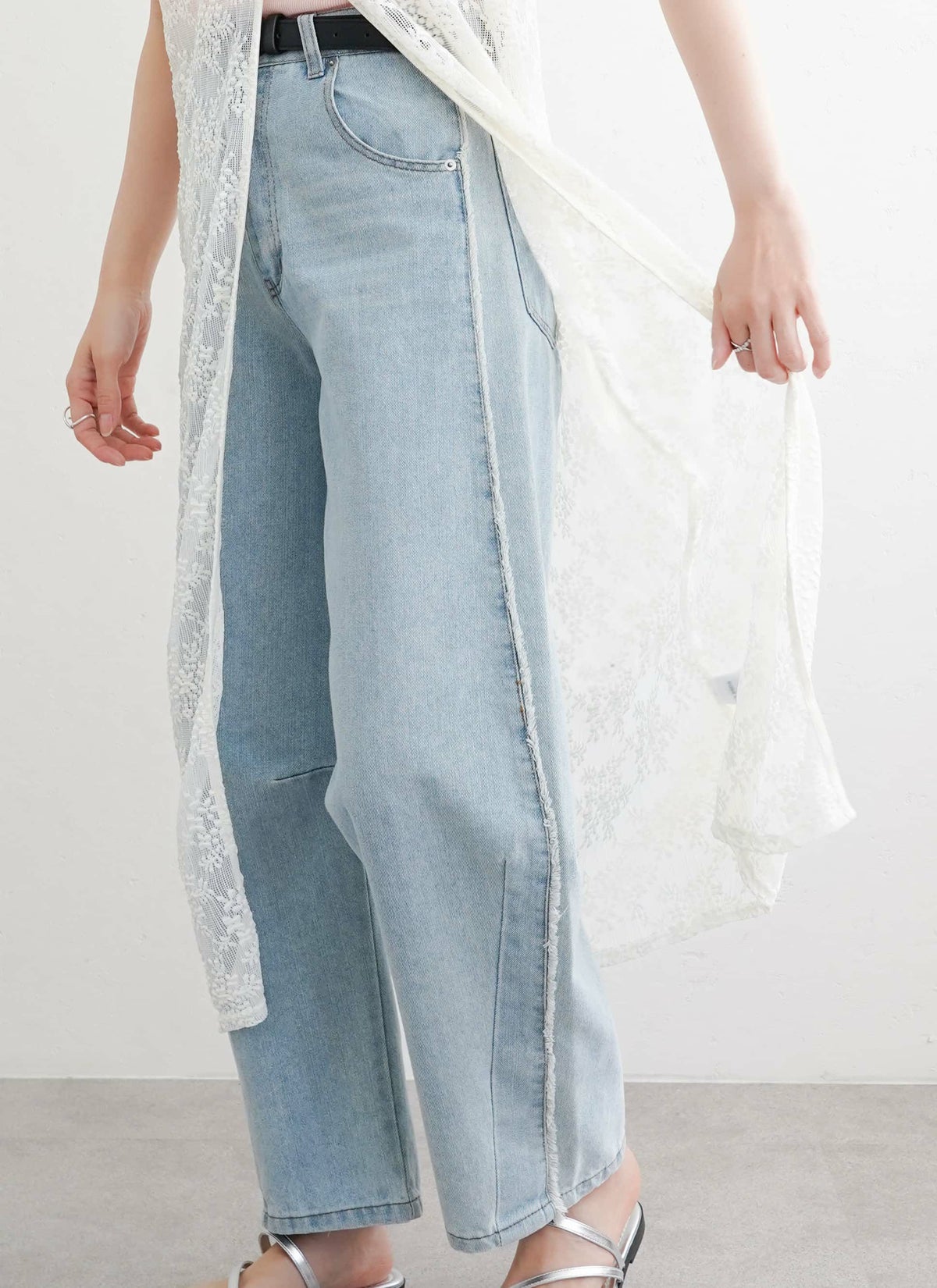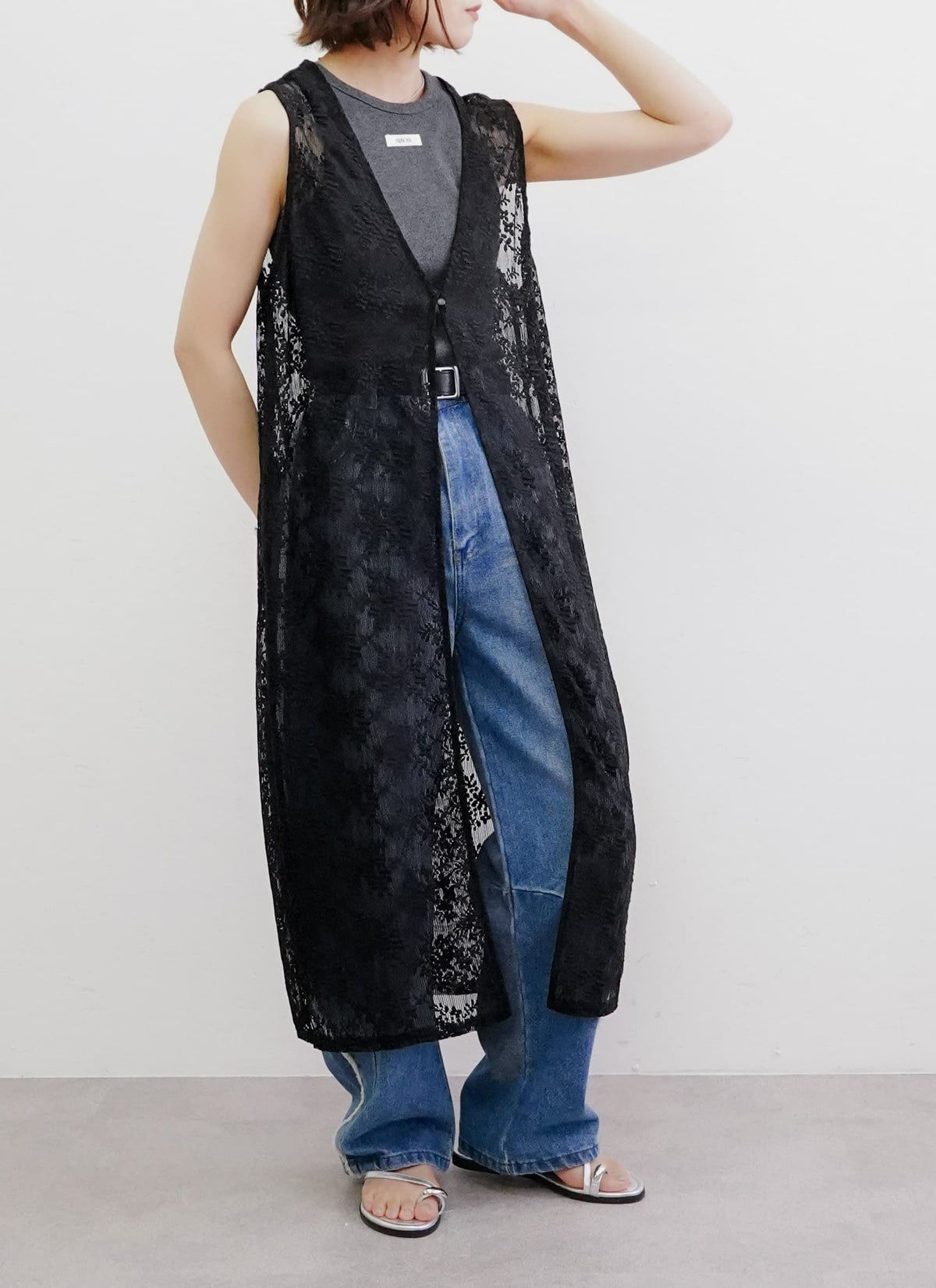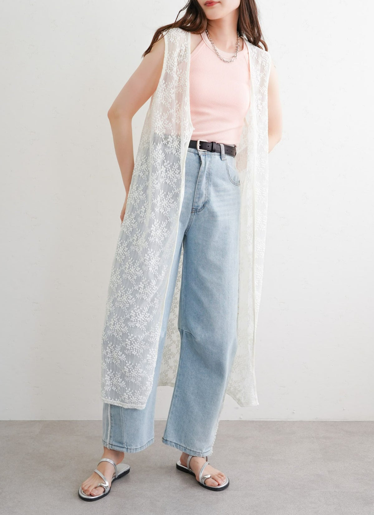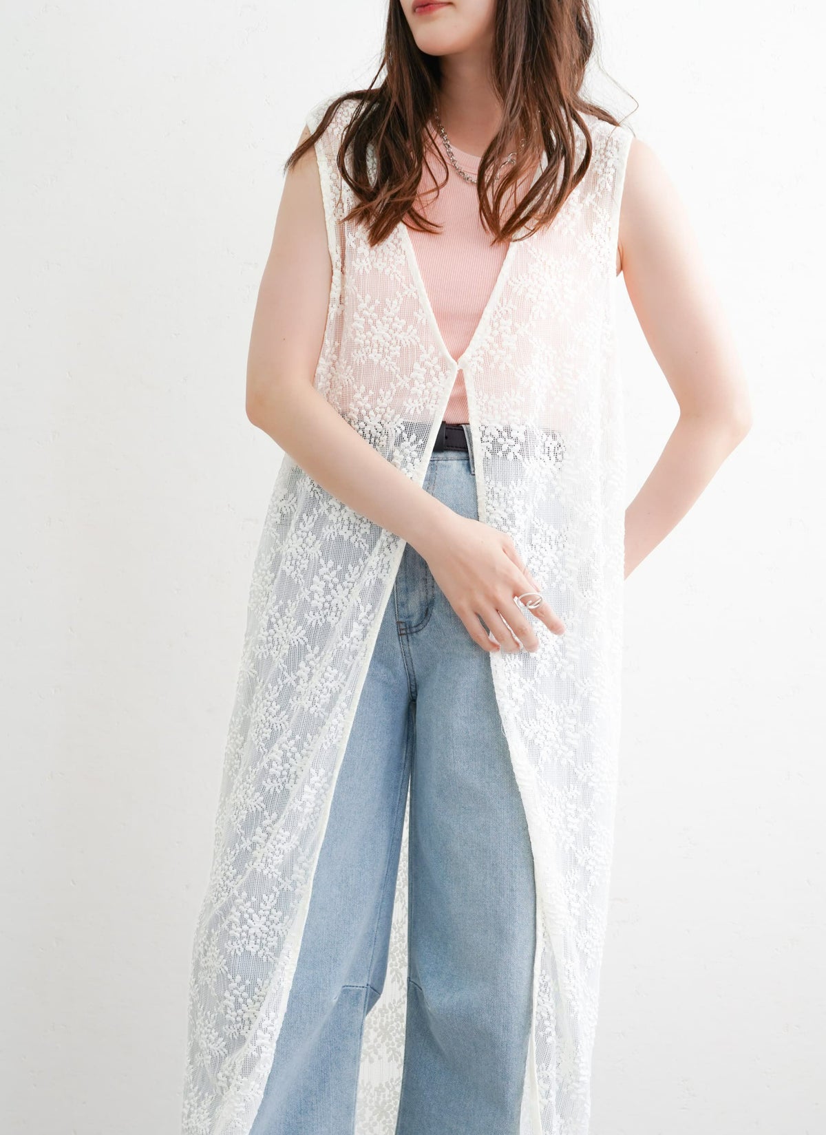 revoam【繊細なフラワーレースが目を惹くロングジレ】 フラワーレース前後2WAYロングジレ