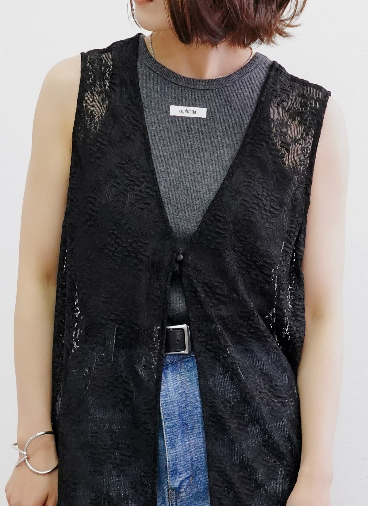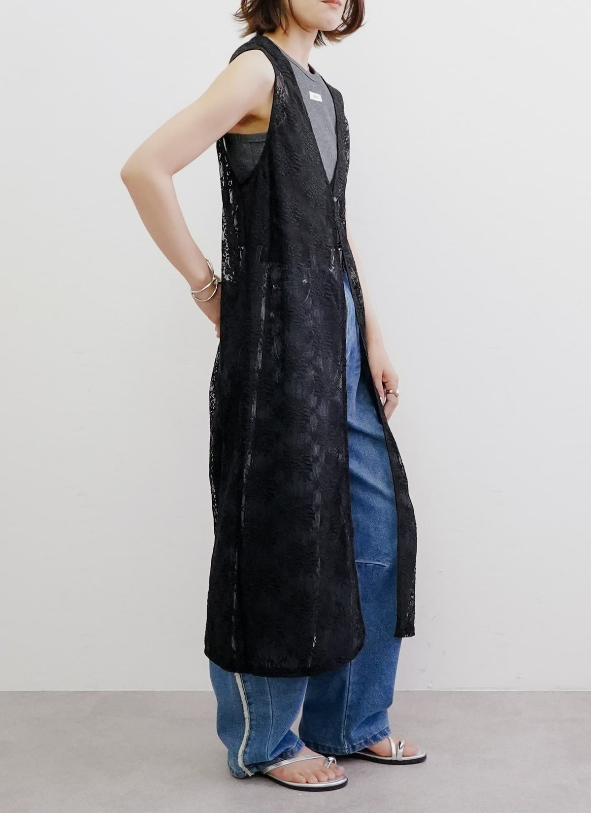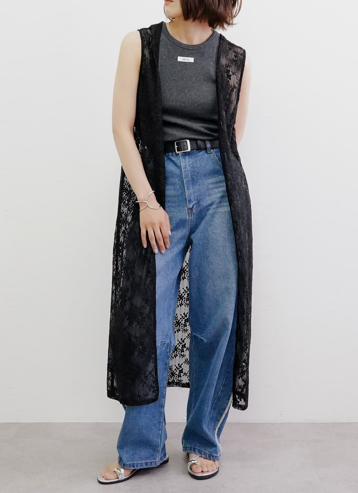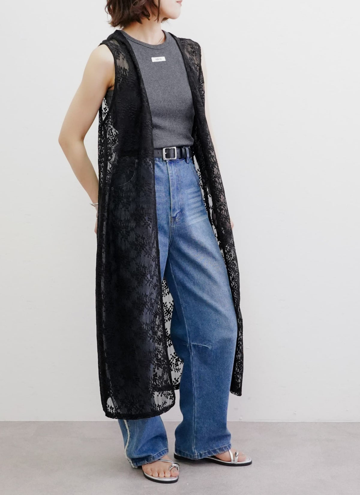 revoam【繊細なフラワーレースが目を惹くロングジレ】 フラワーレース前後2WAYロングジレ