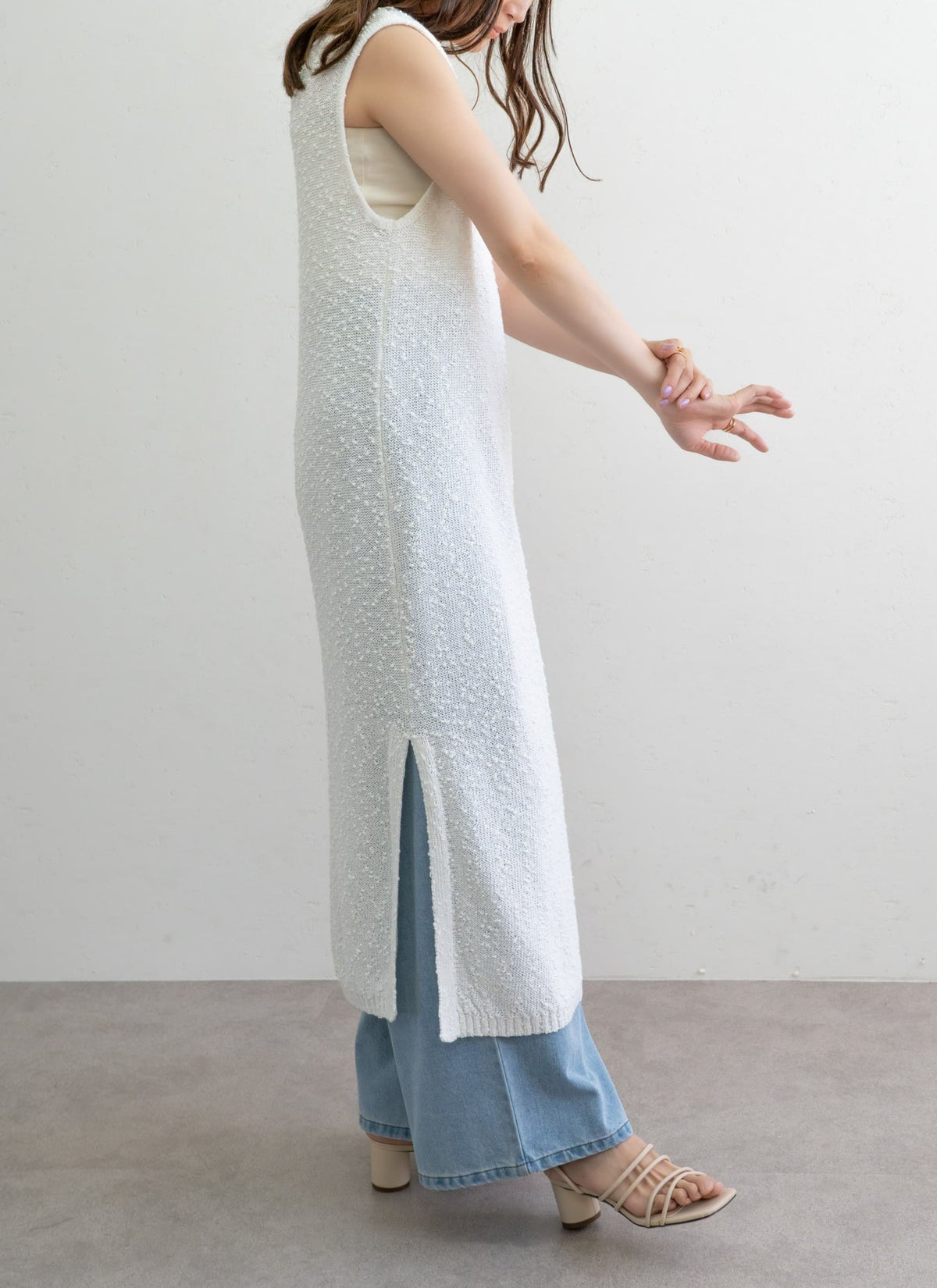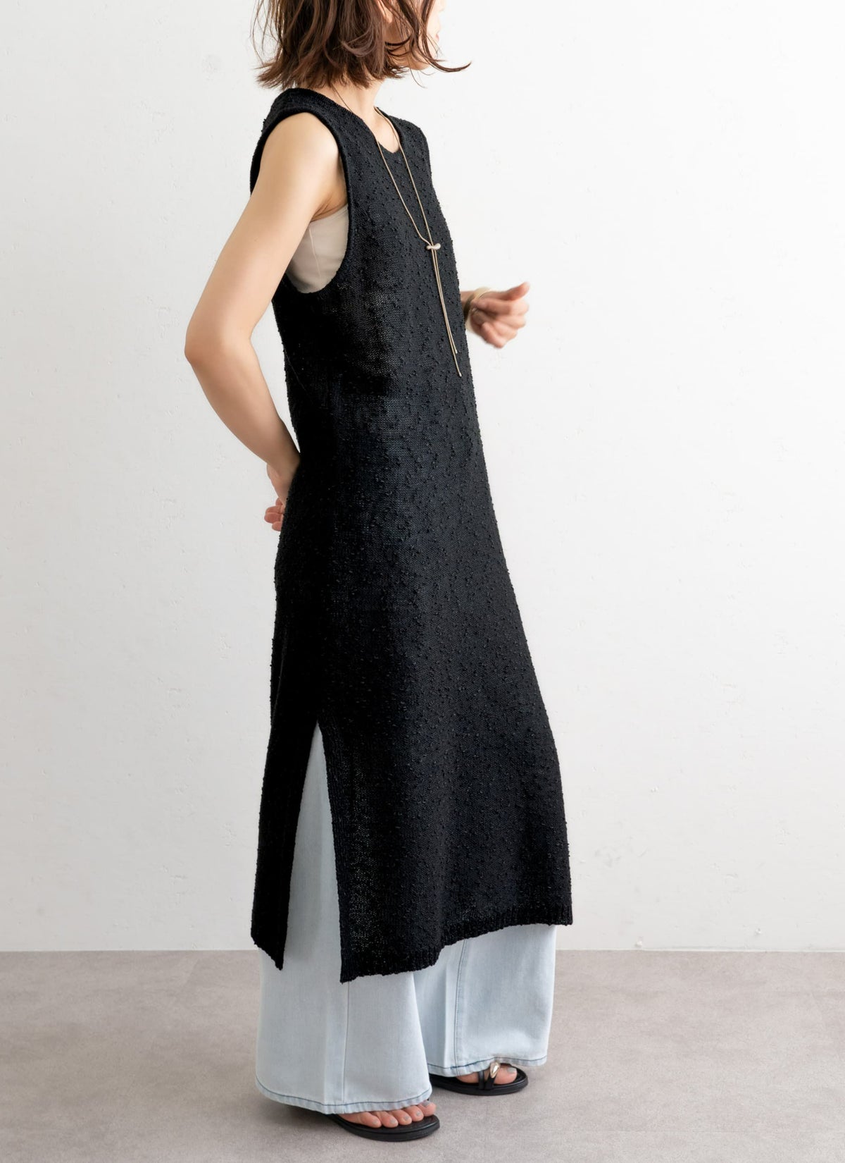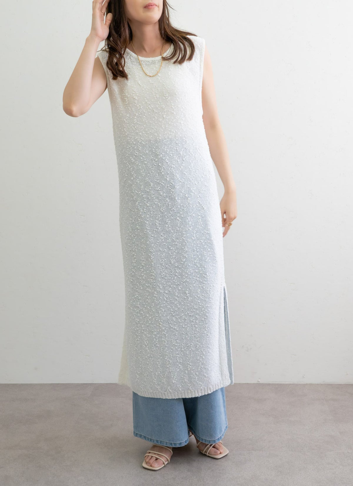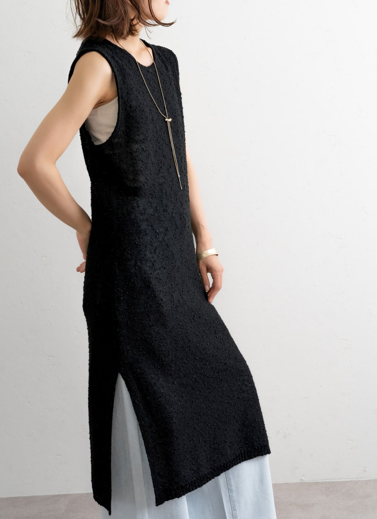 revoam【1枚で“抜け感”がつくれるナチュラルなワンピース】 ネップニットノースリワンピ