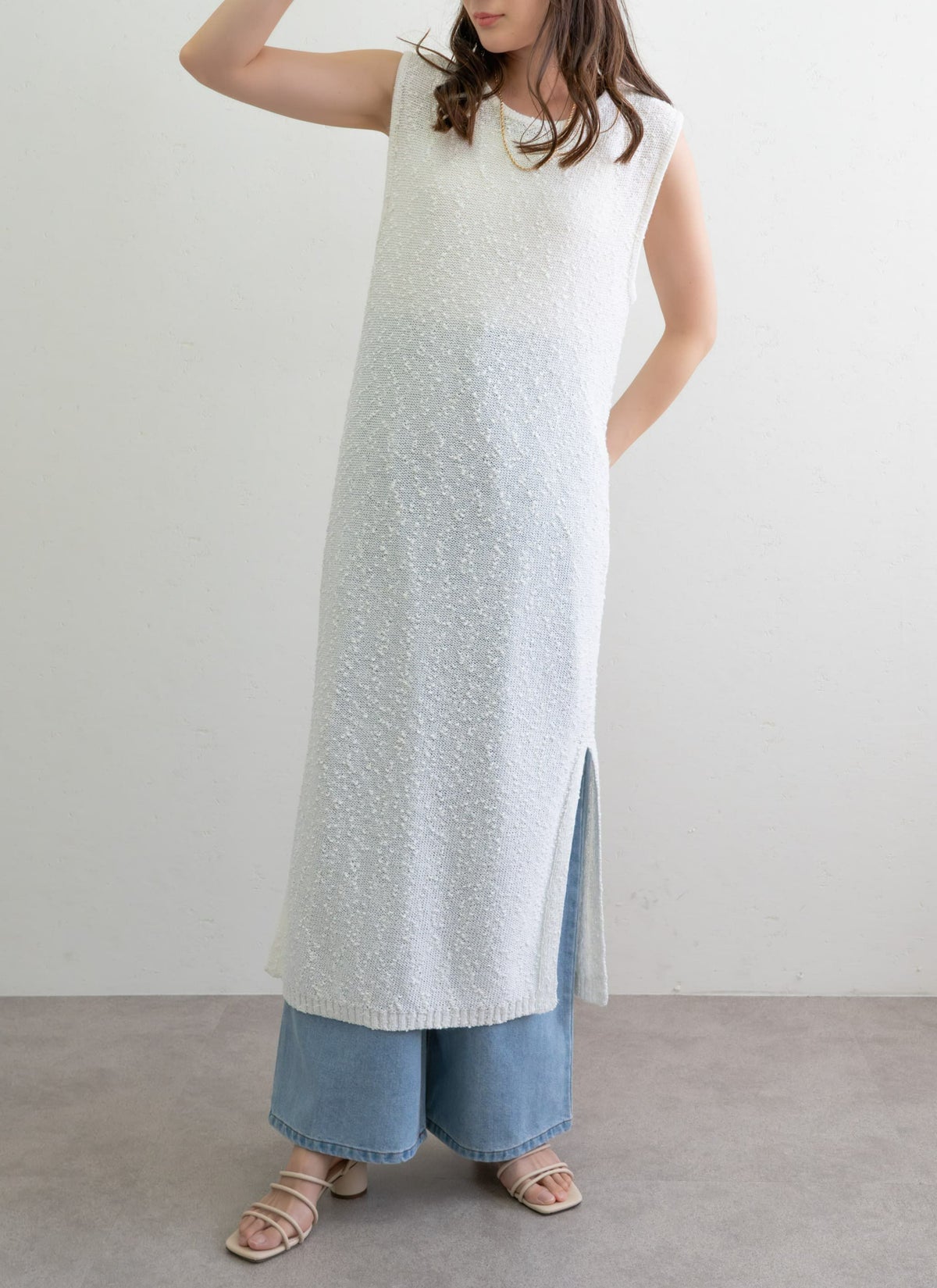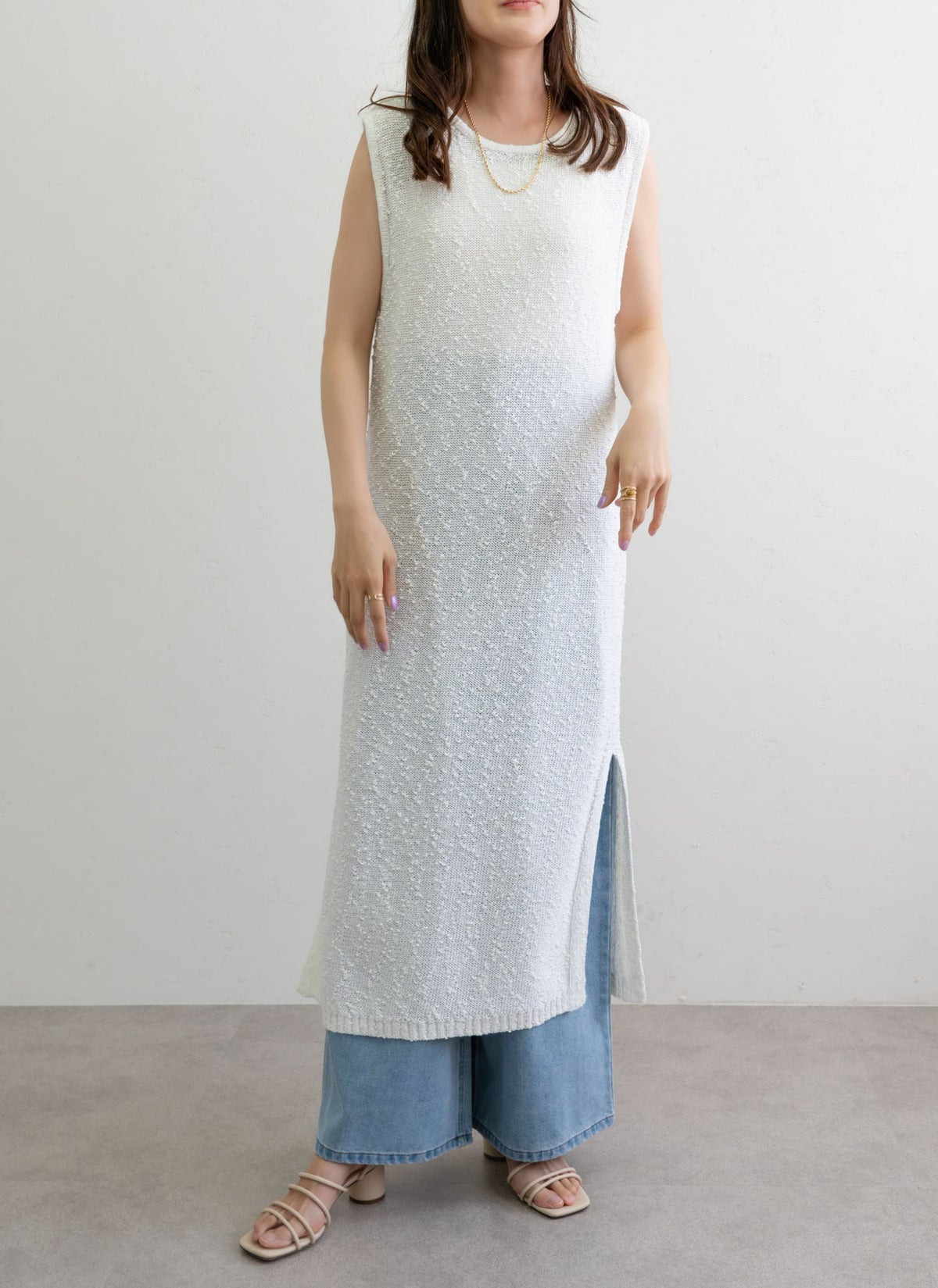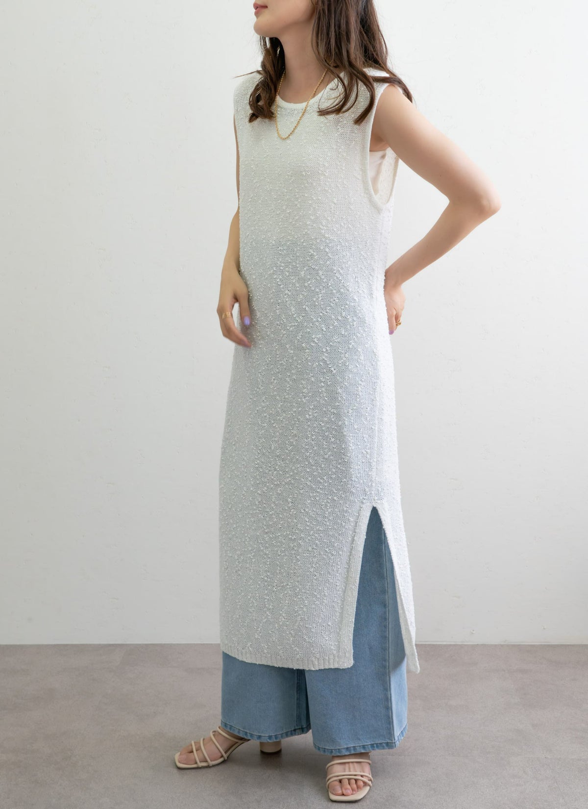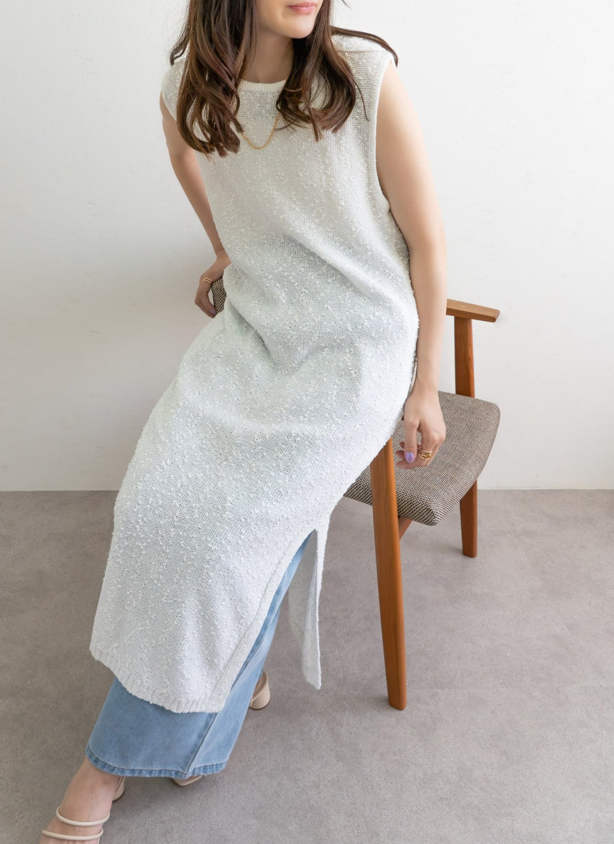 revoam【1枚で“抜け感”がつくれるナチュラルなワンピース】 ネップニットノースリワンピ