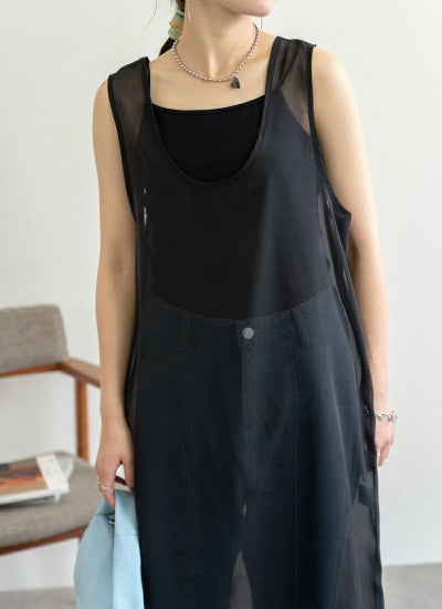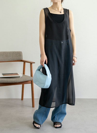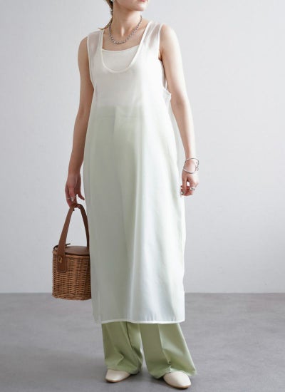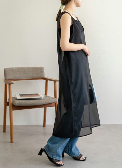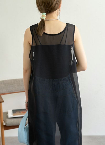 revoam【透け感で魅せる、夏のレイヤード。さらりが気持ちいい大人のオーガンジーワンピ】 【35%OFF】オーガンジータンクワンピース