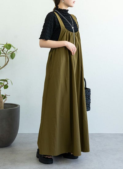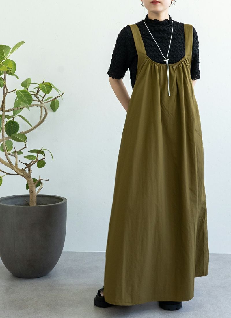 ワッシャータフタギャザーノースリワンピース