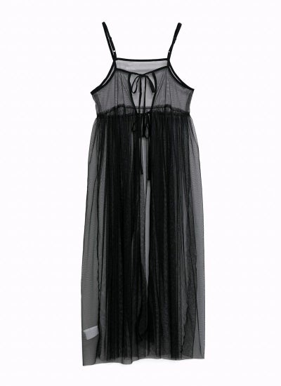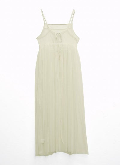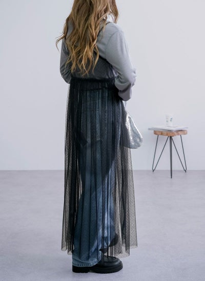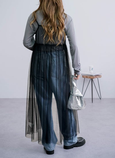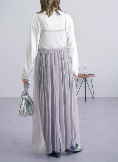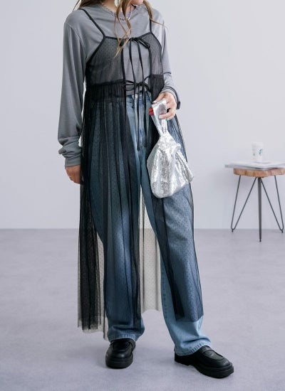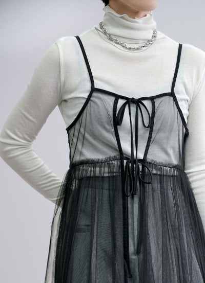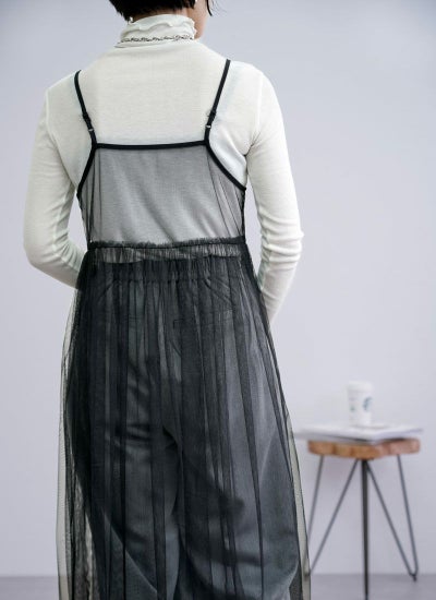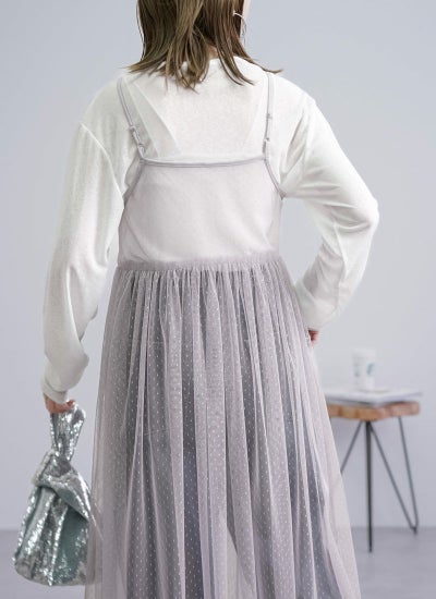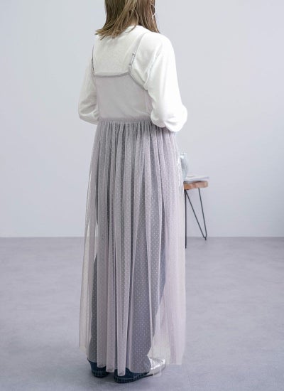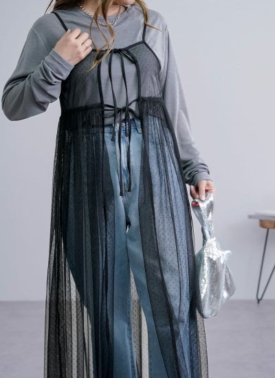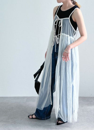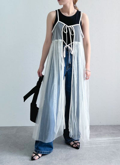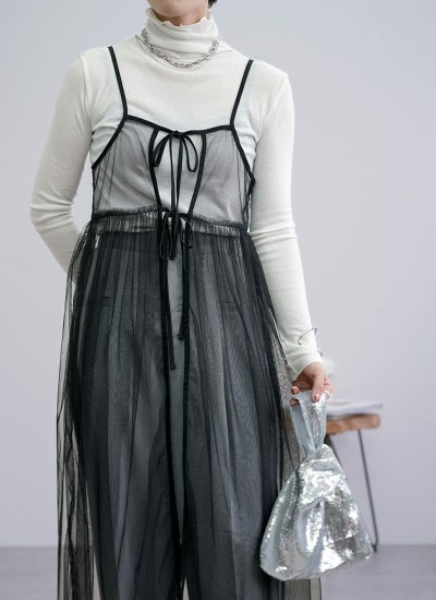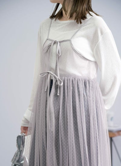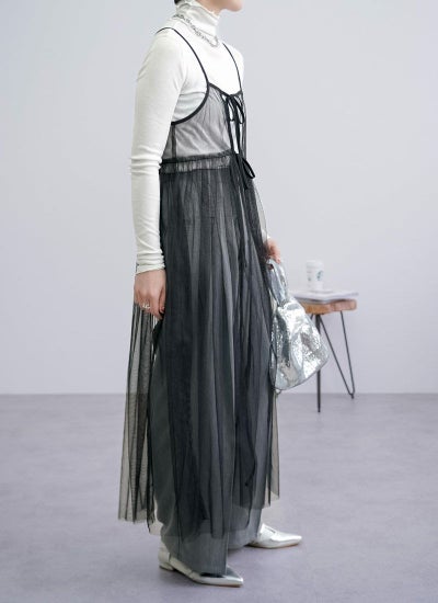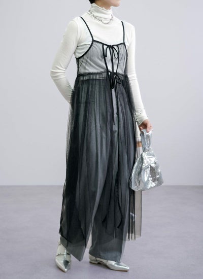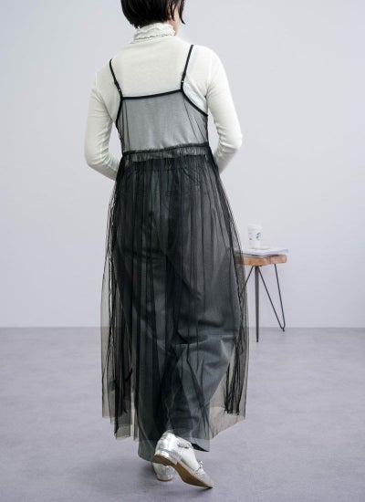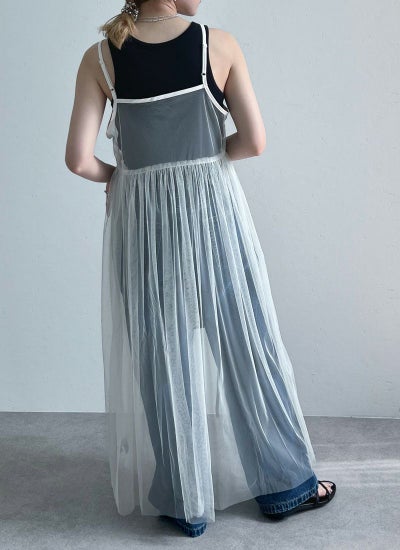動くたびに揺れるチュールが目を惹くキャミワンピース。