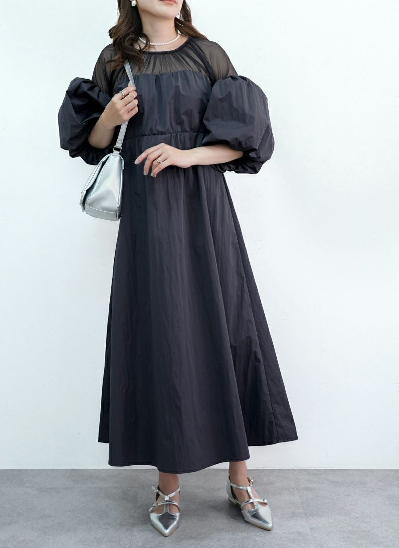 シアーチュール素材で抜け感と女性らしさをプラスしながら、ナイロン素材で程よくカジュアルダウン。