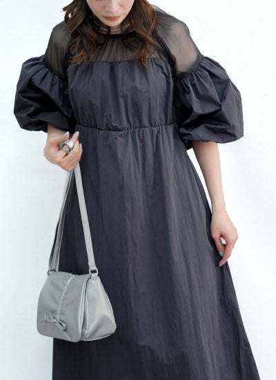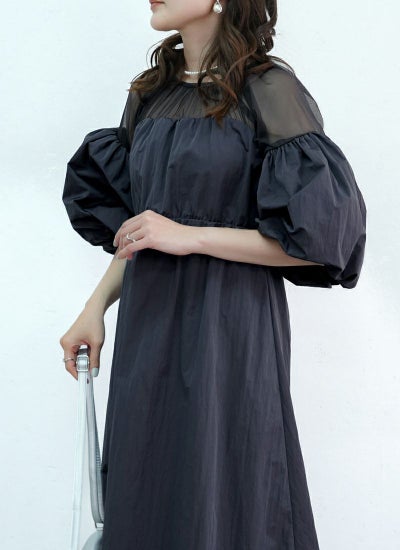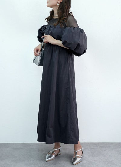 バルーンスリーブで気になる二の腕をカバーしつつ、フェミニンさを兼ね備えているのもポイント。