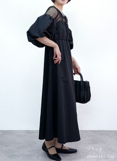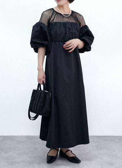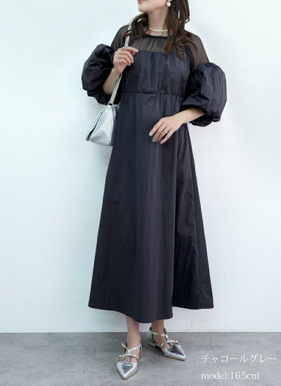 5. 【20%OFF】タフタ×チュールドッキングワンピース