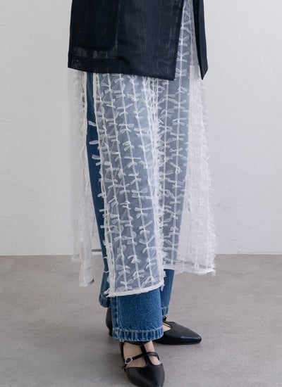 繊細なチュール素材で、コーデに取り入れるだけで女性らしい華やかな印象を演出できる1枚◎