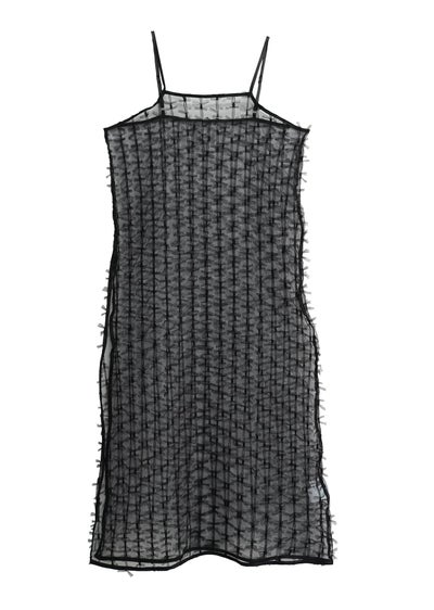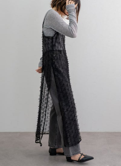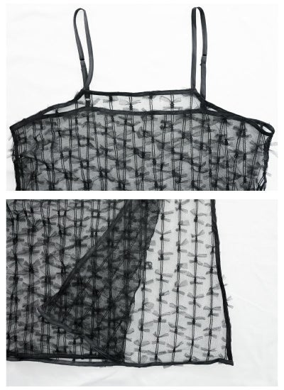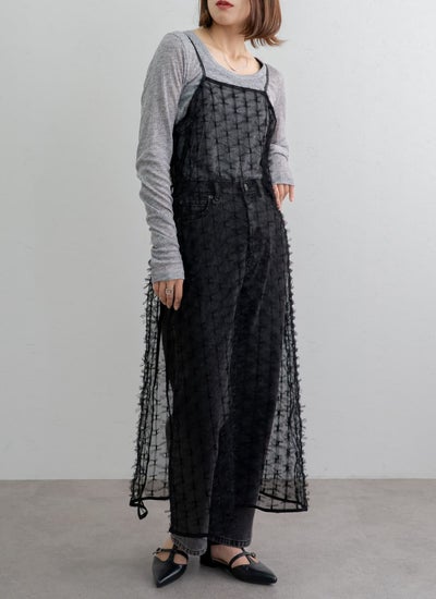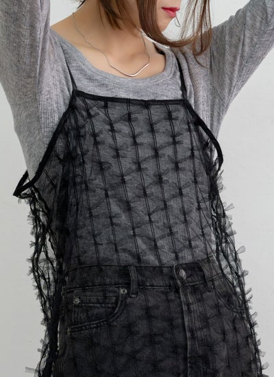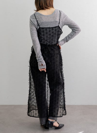 チュールリボンが縫いついた立体的なシアーキャミワンピース。
