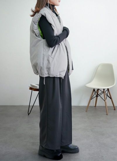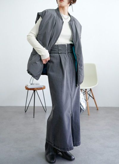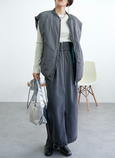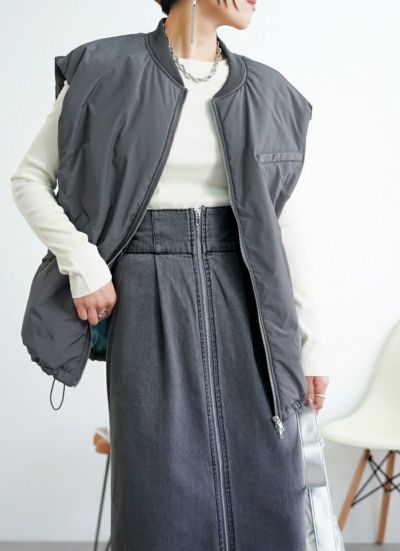 ダブルジップで裾から上にも開けられて、スリットデザインでも楽しめます。