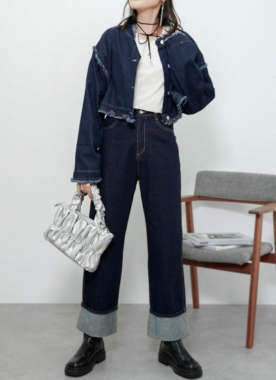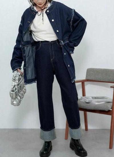 2WAY仕様で丈の長さを変えられるデニムブルゾン。