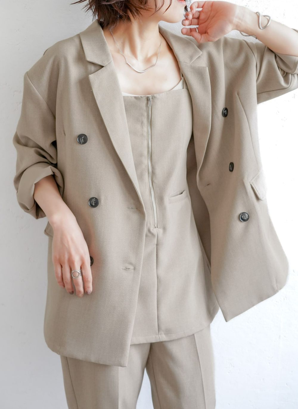 セットアップでもオシャレに決まるダブルブレストジャケット。