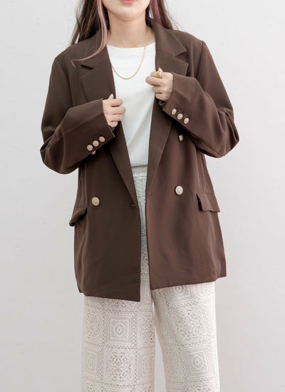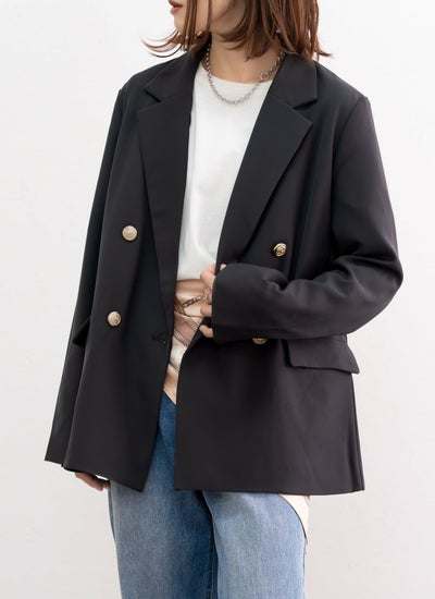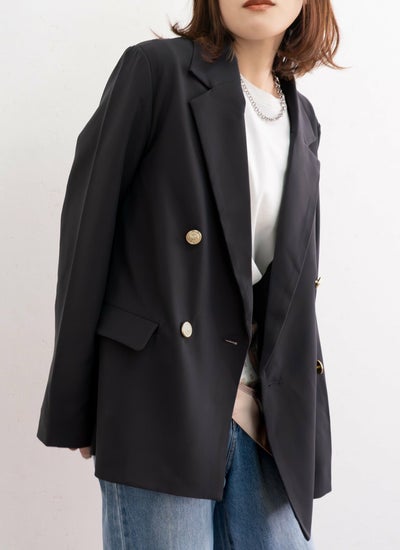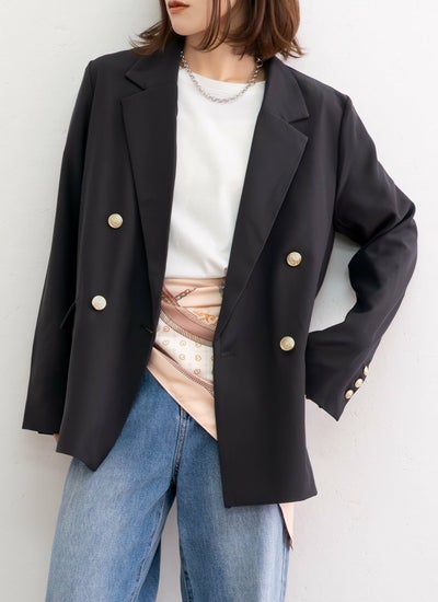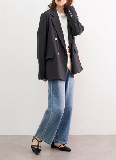 金ボタンの上品な華やかさと、袖を折り返したときにさりげなく見えるストライプ柄がこなれ感をプラス◎