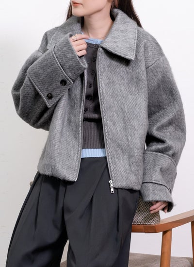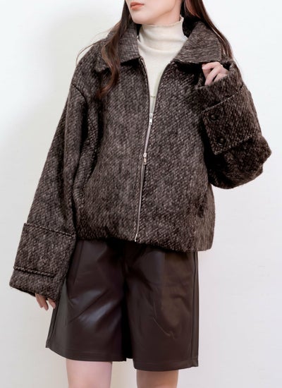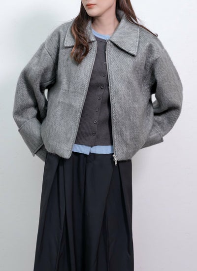 ふんわりした軽やかな毛足の生地を使用した、シャギー素材のショートブルゾン。