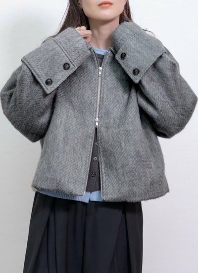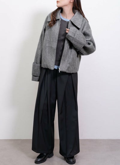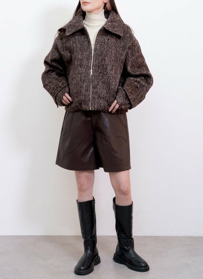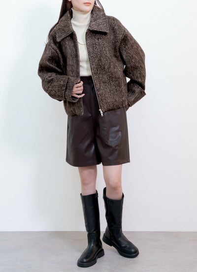 シャギー襟付ショートブルゾン