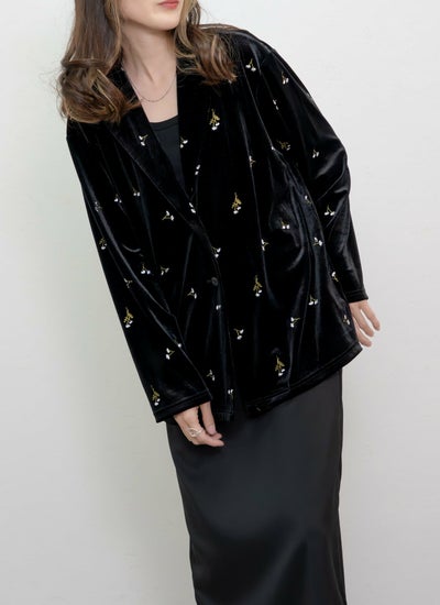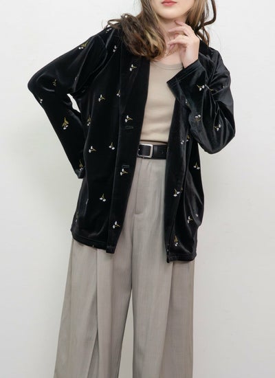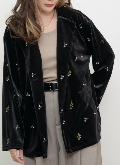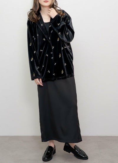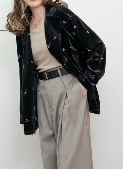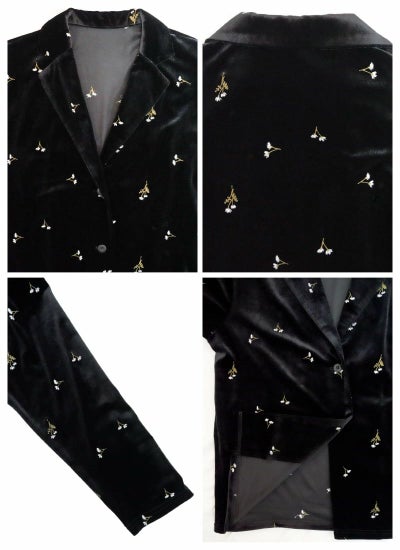 revoam【レトロシックなベロアに咲く、可憐なフラワー刺繍ジャケット】 小花柄刺繍テーラードジャケット