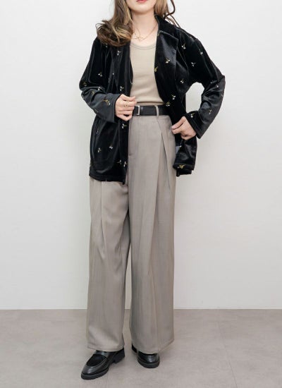 細身のボトムスと合わせると、ジャケットのゆったり感とのメリハリが出て、効果的にIラインを作れます。