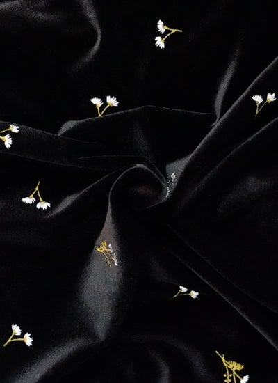 全体に施されたフラワー刺繍が、360度どこから見ても着映えするデザイン。上品な光沢感と柔らかく滑らかな肌触りが特徴で、優雅な雰囲気を演出します。