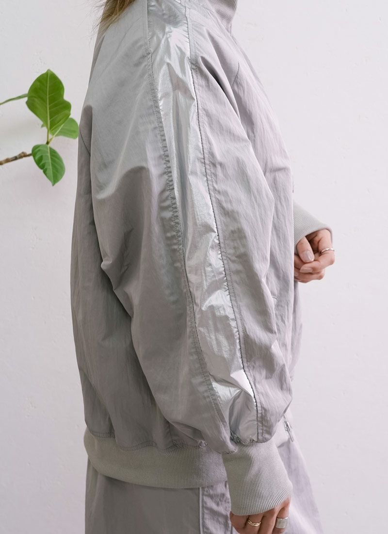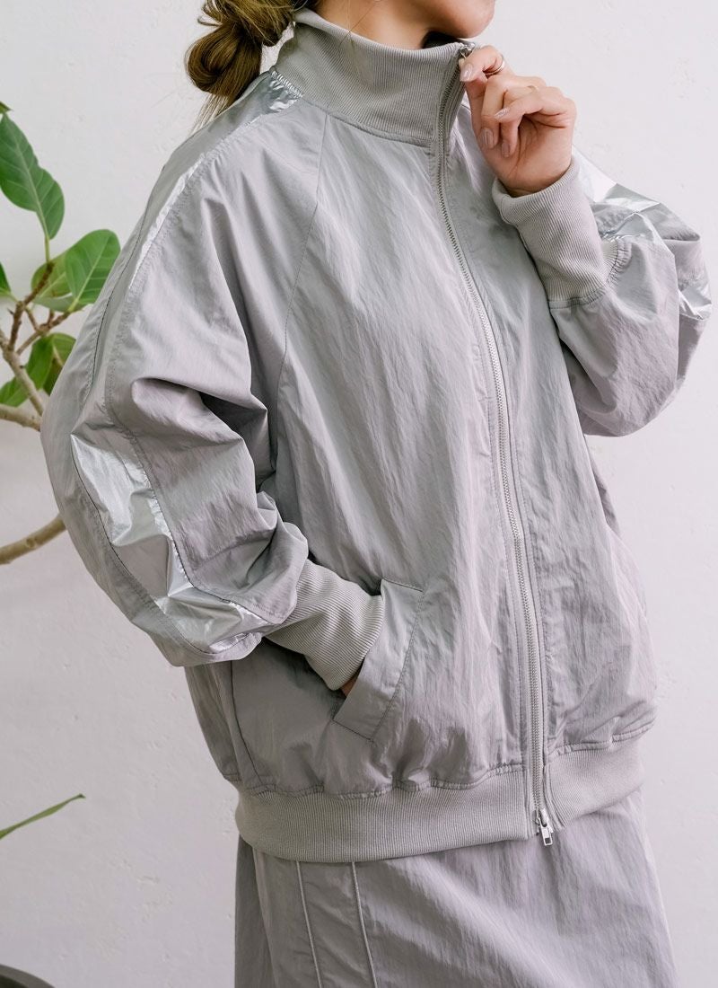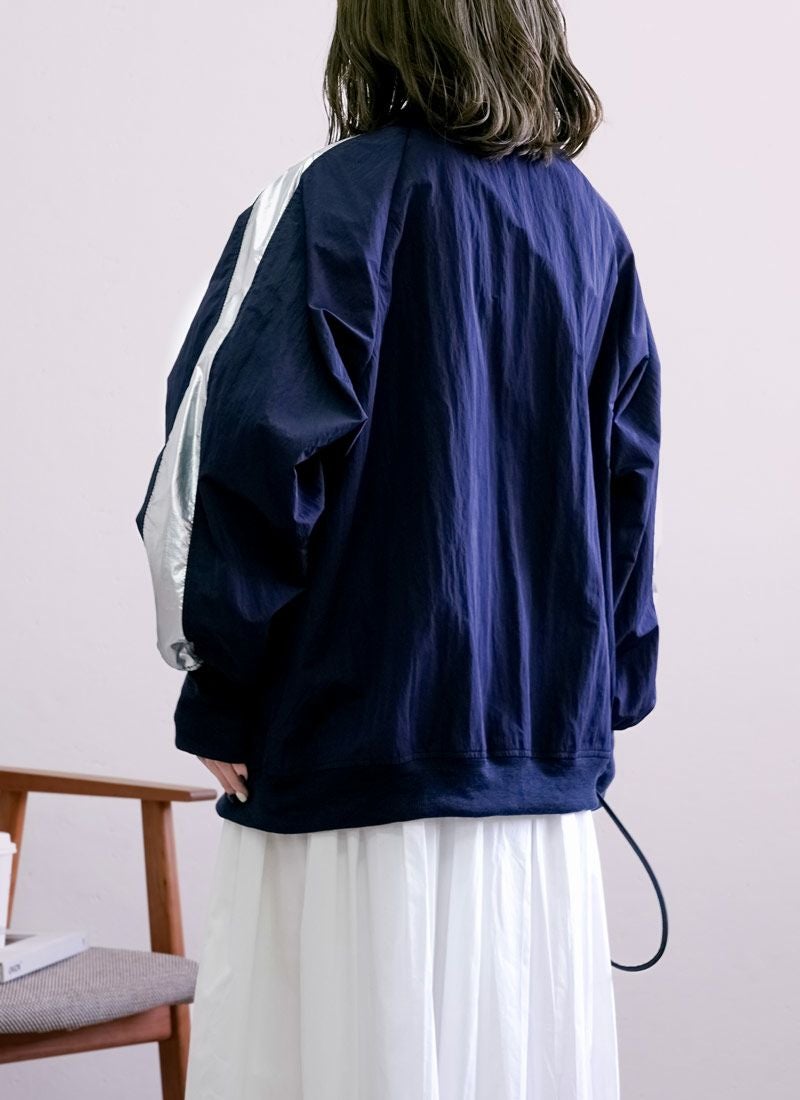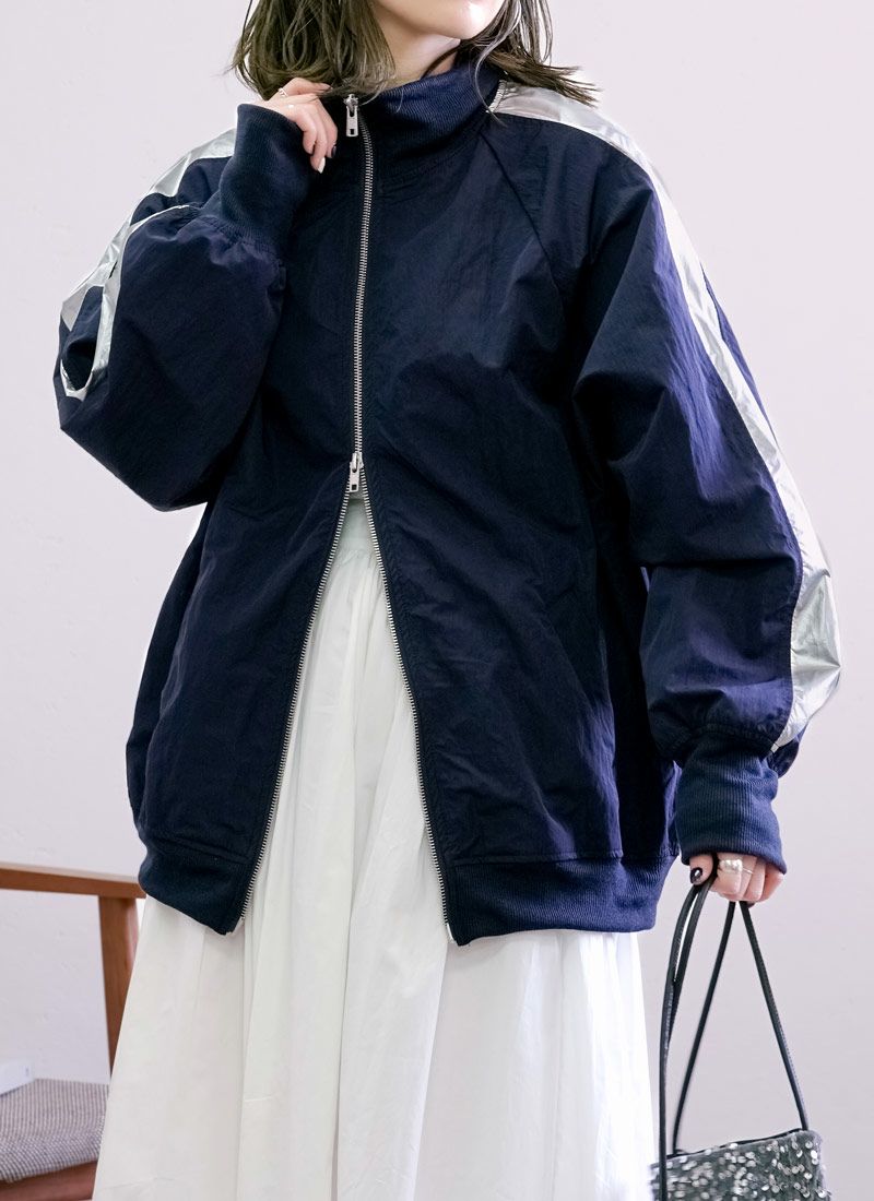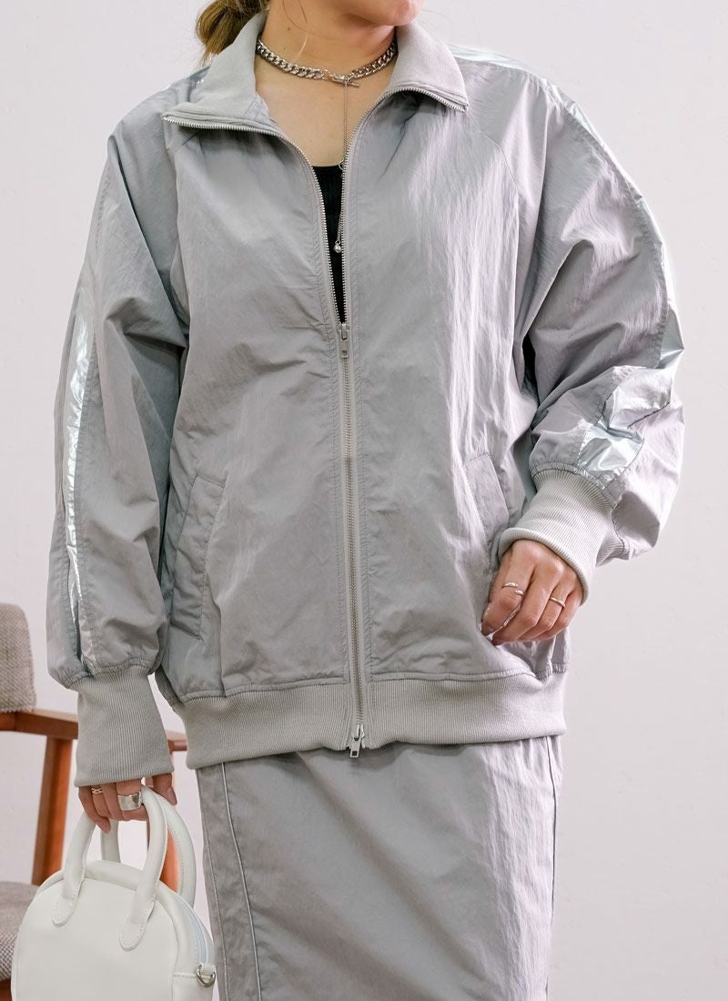 revoam【抜け感も、存在感も。ゆったりシルエット×光沢ラインでつくる最旬スタイル】 【40%OFF】メタリックラインオーバーリブブルゾン