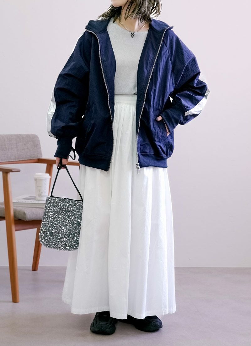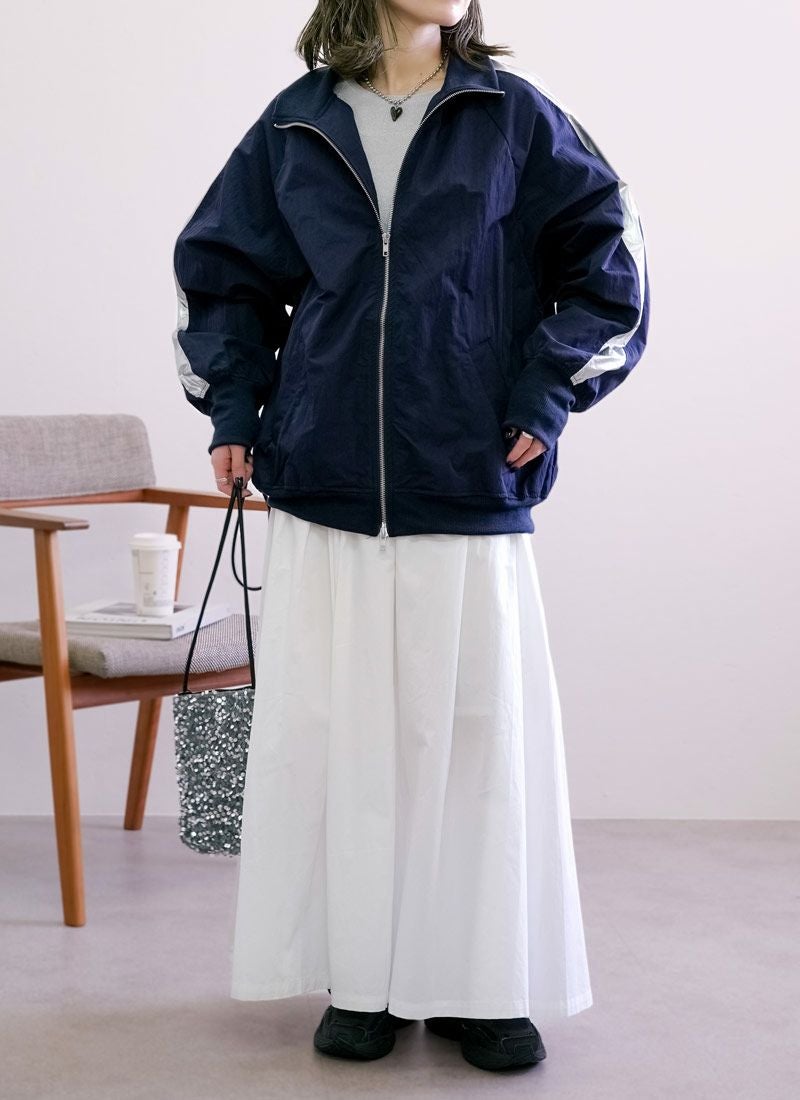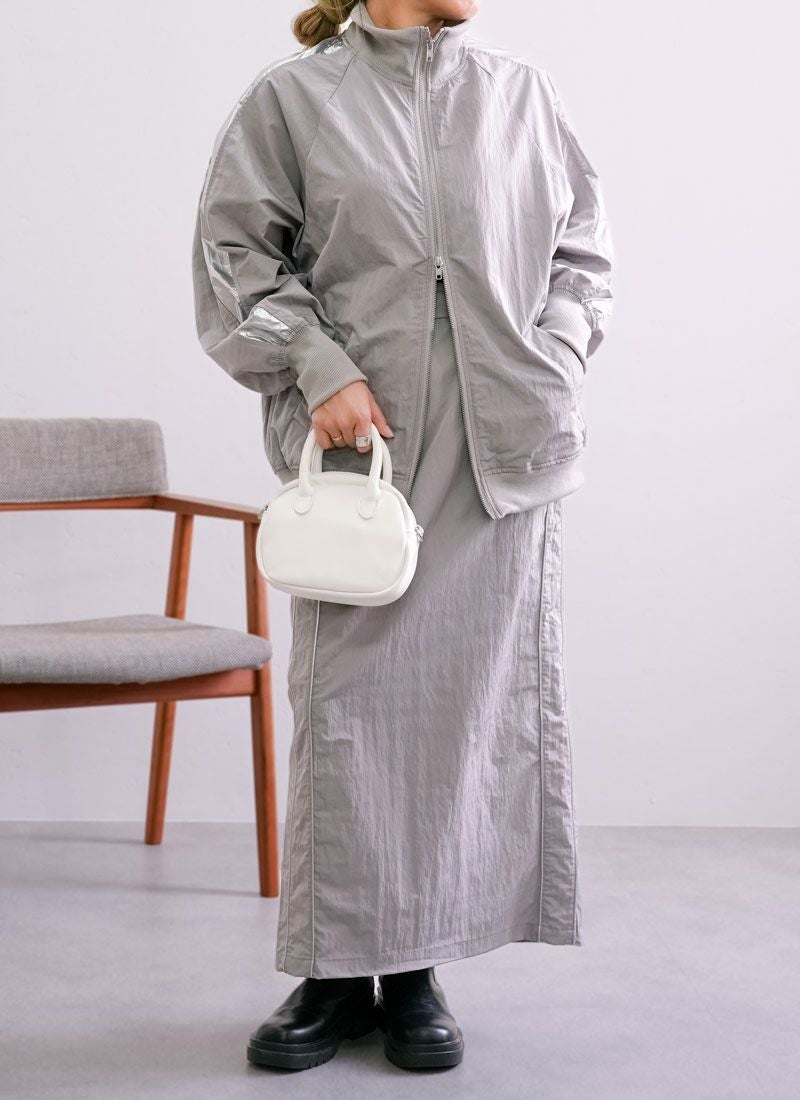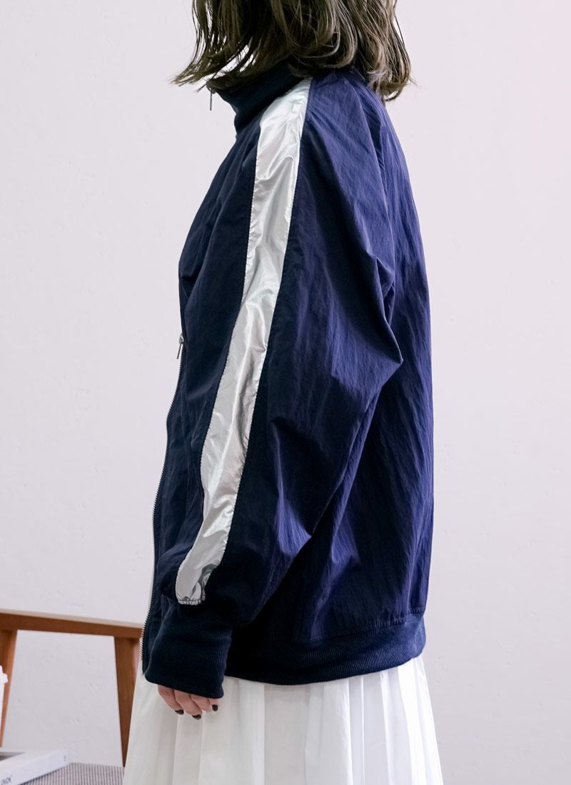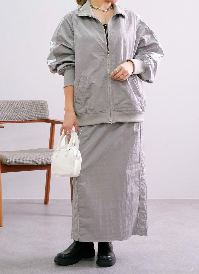 revoam【抜け感も、存在感も。ゆったりシルエット×光沢ラインでつくる最旬スタイル】 【40%OFF】メタリックラインオーバーリブブルゾン
