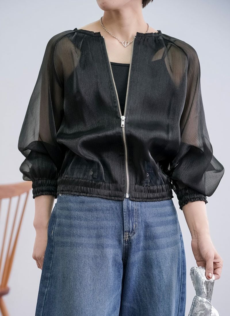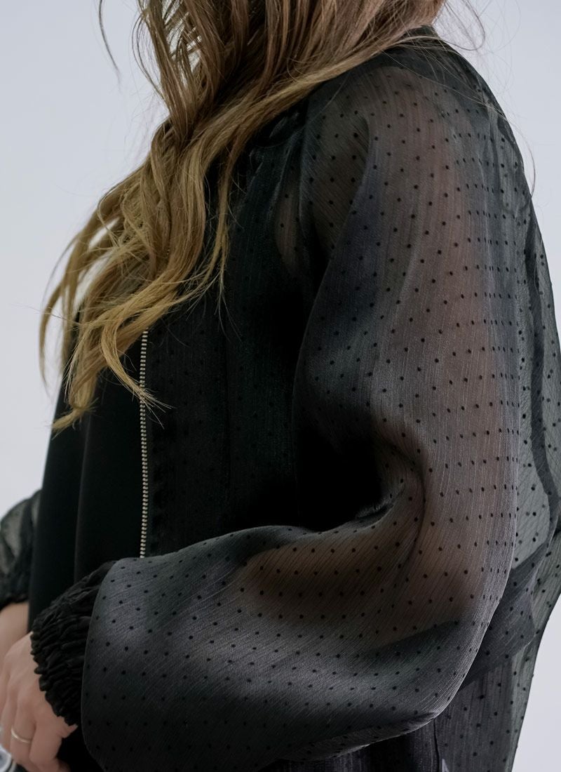 revoam【シャイニーな光沢感と透け感で、大人フェミニンなスタイルを演出】 【20%OFF】シアーシャイニーブルゾン