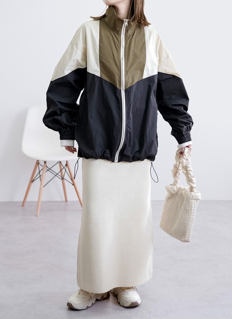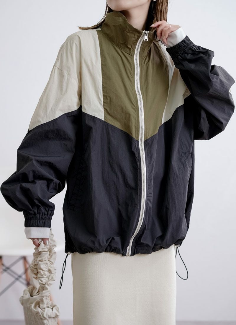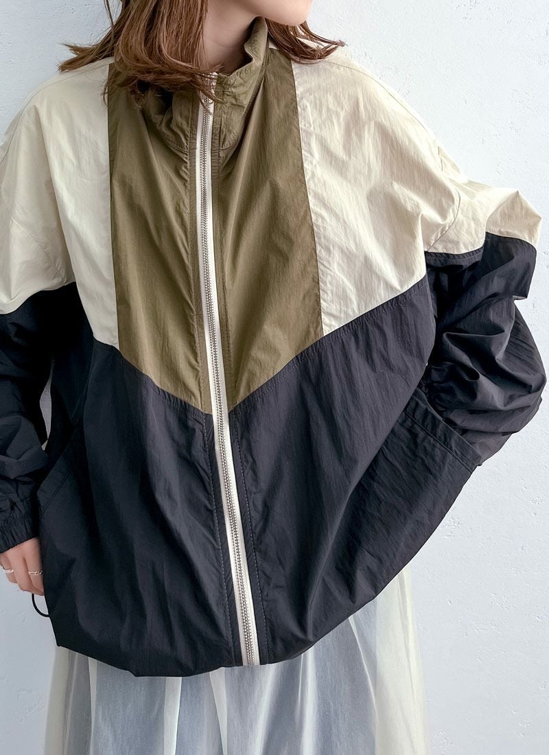 revoam【配色が映える、今っぽブルゾン。軽くて着心地も◎ 秋まで使える優秀ライトアウター】 【30%OFF】カラーブロッキングナイロンブルゾン