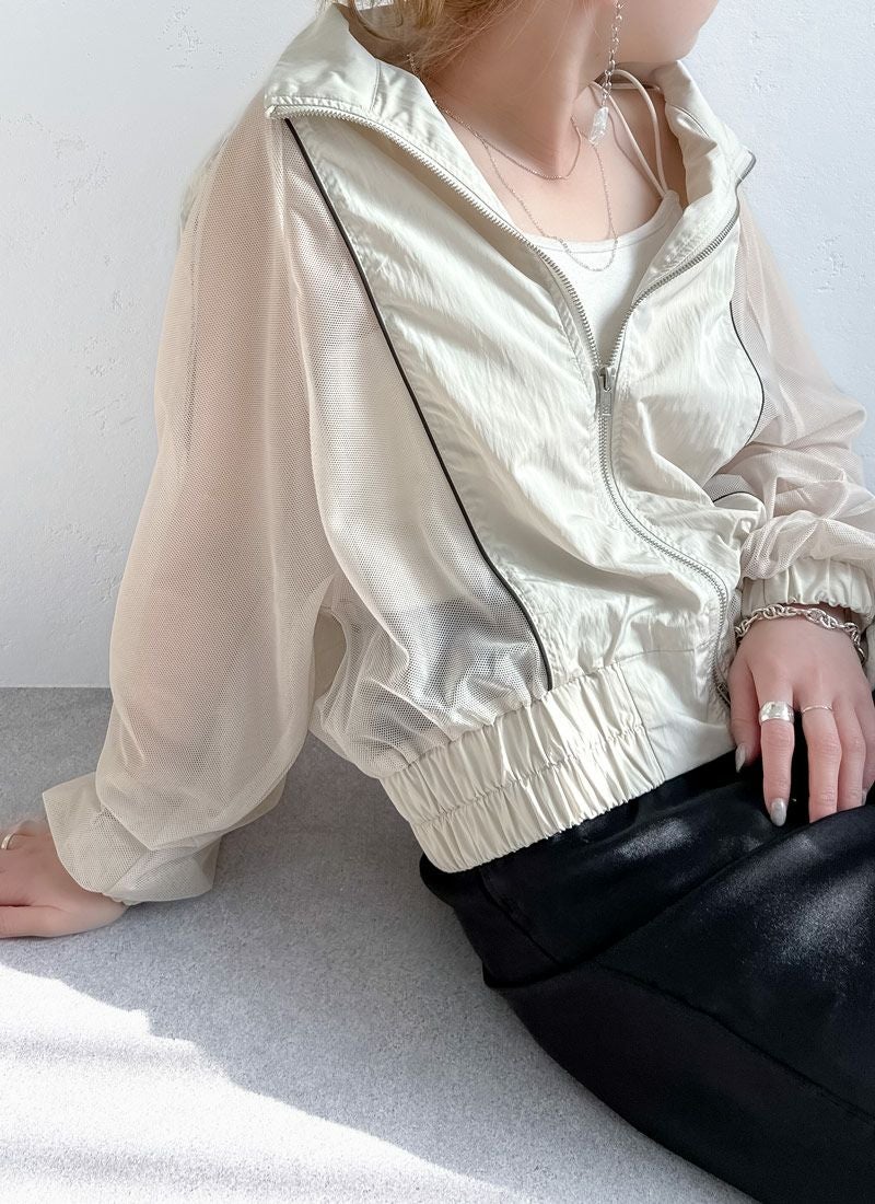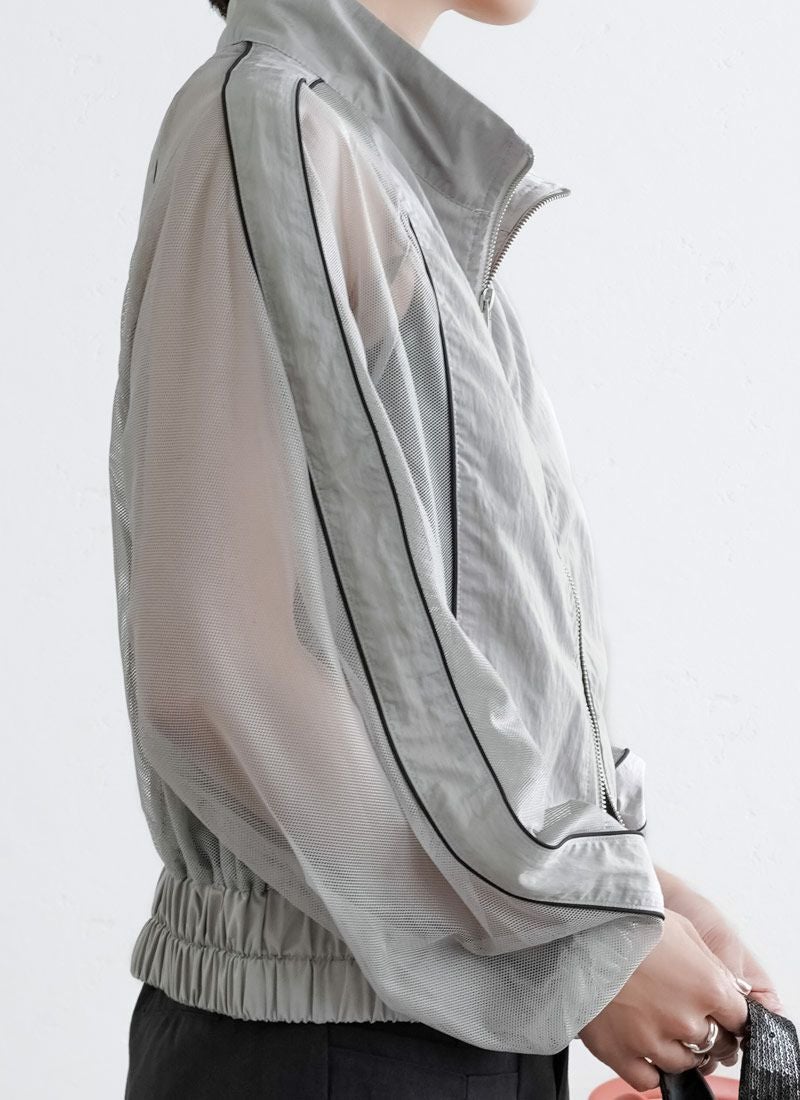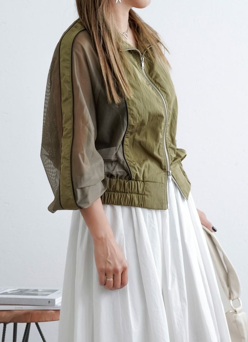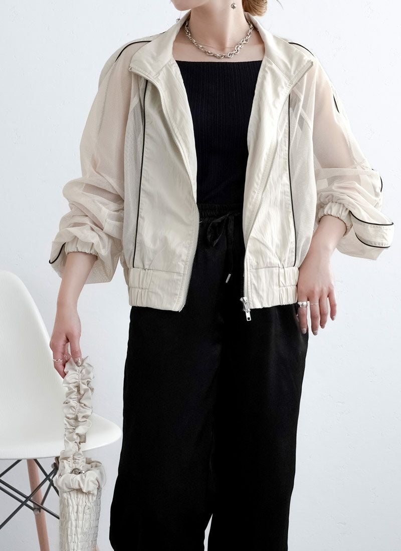 revoam【軽い・涼しい・おしゃれが叶う、頼れるアウター。日焼け・冷房対策にも活躍するシーズンレスな万能ブルゾン】 【10%OFF】タフタxメッシュ配色パイピングブルゾン