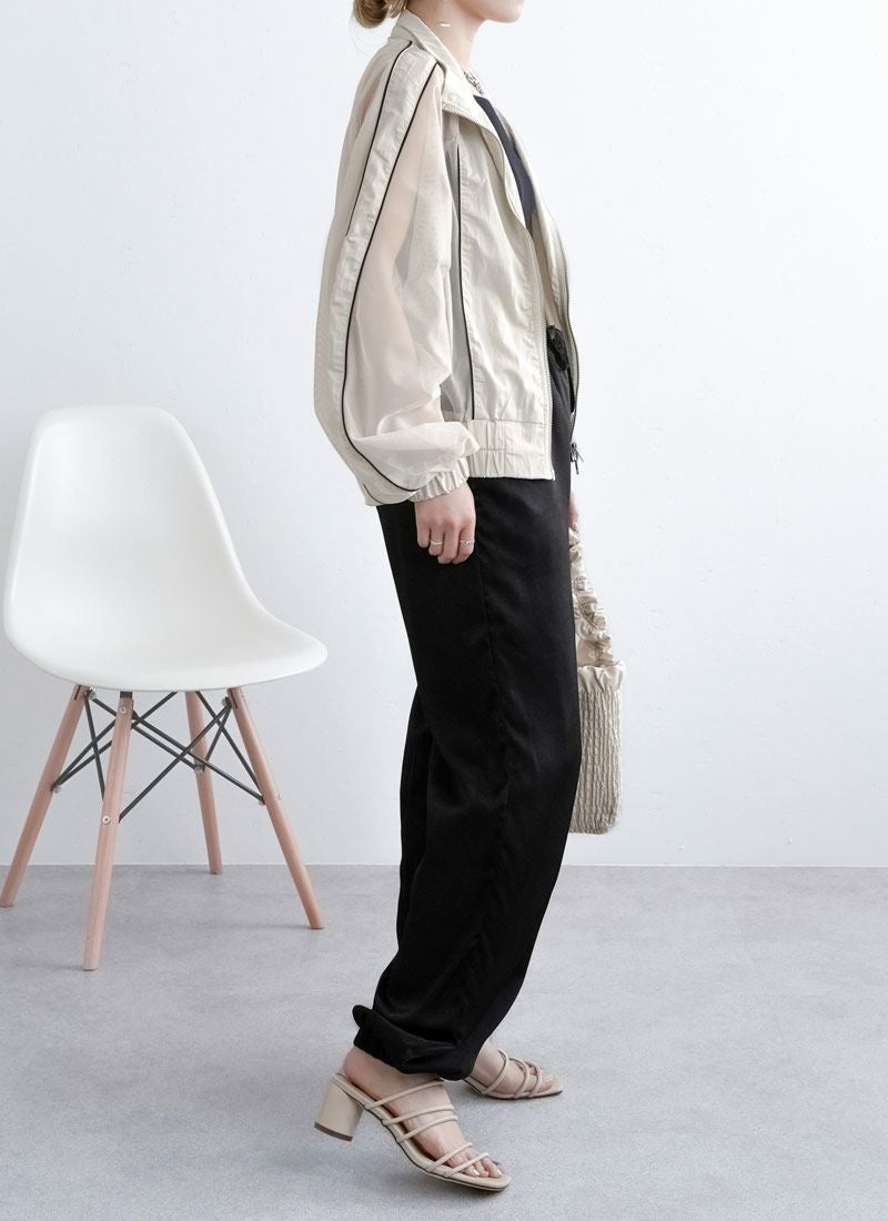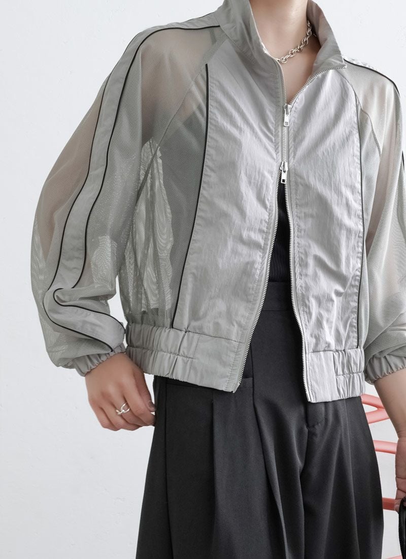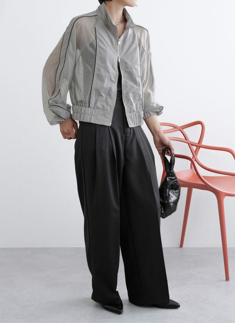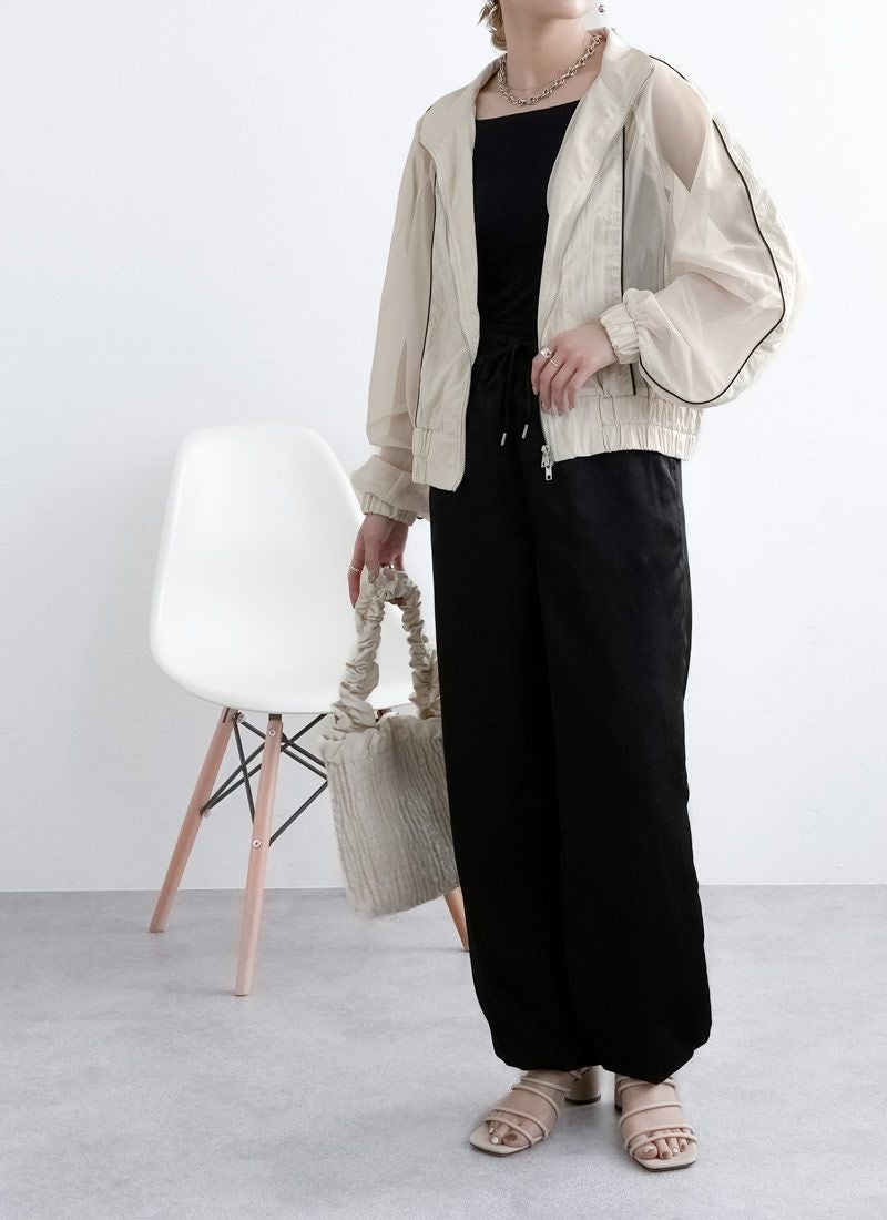 revoam【軽い・涼しい・おしゃれが叶う、頼れるアウター。日焼け・冷房対策にも活躍するシーズンレスな万能ブルゾン】 【10%OFF】タフタxメッシュ配色パイピングブルゾン