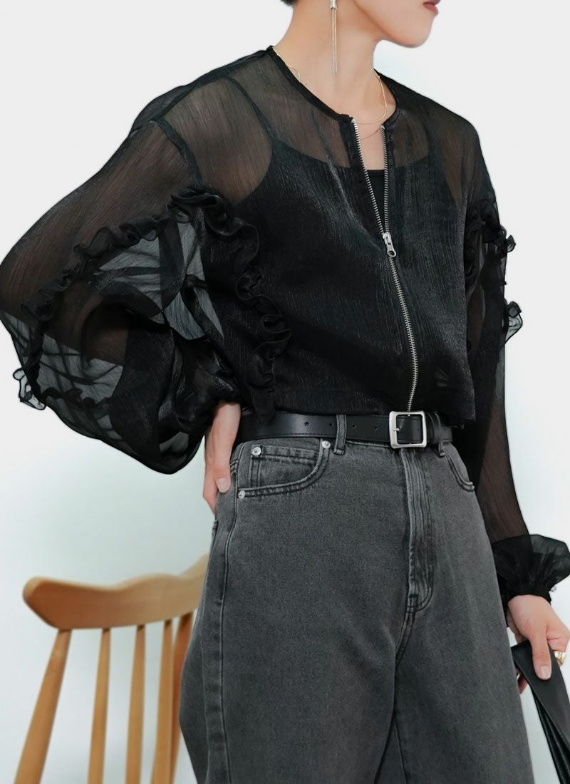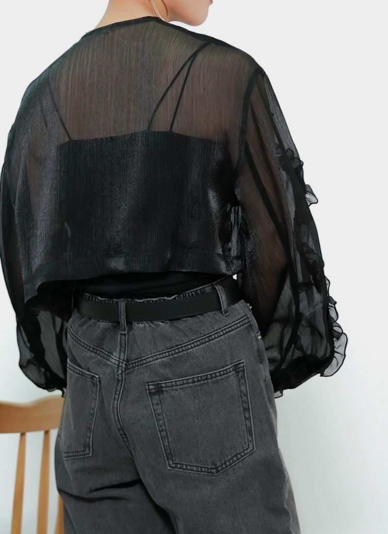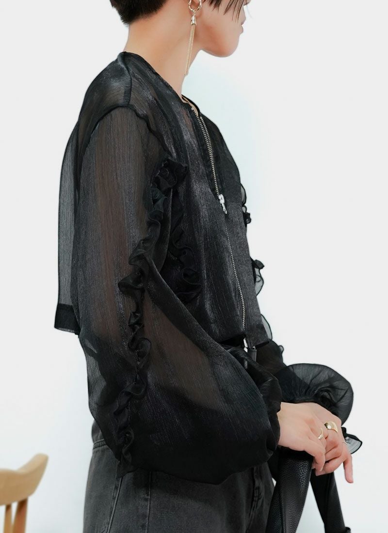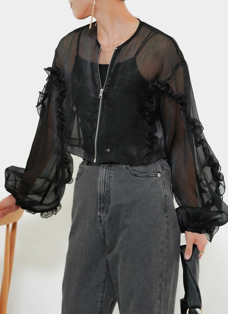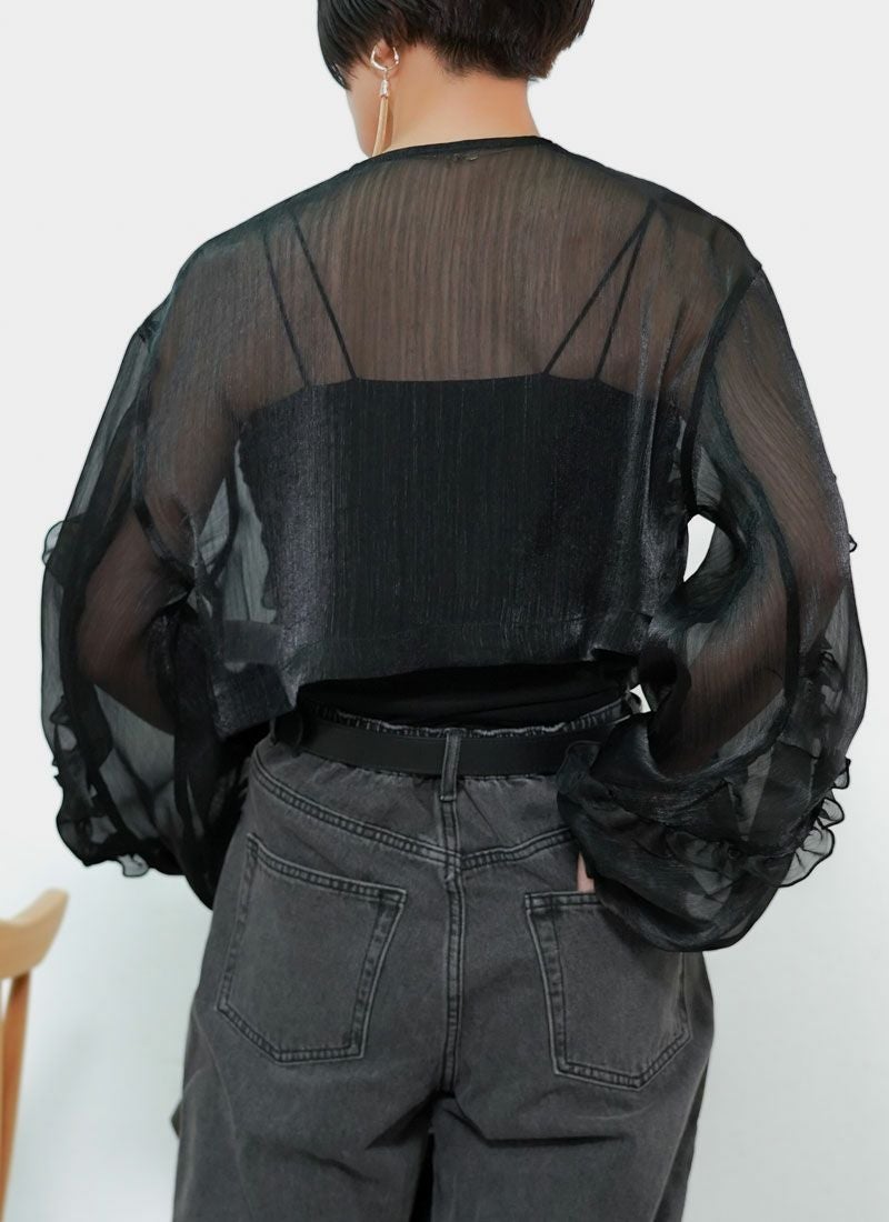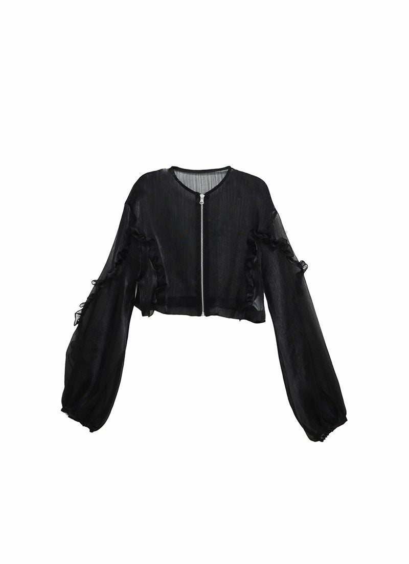 【新作おすすめ】 【30%OFF】チュールショートシャーリングブルゾン