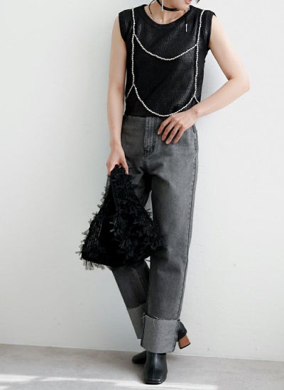 ゆったりしたサイズ感でビッグシルエットのトップスにも◎