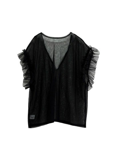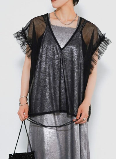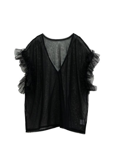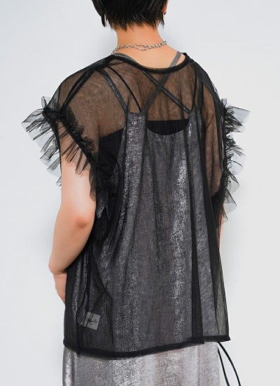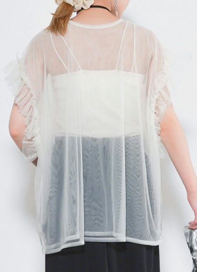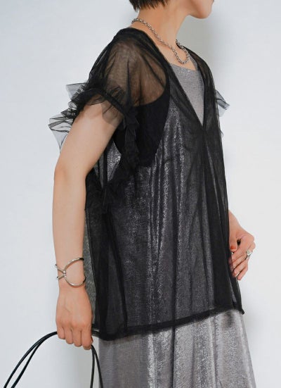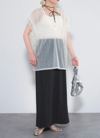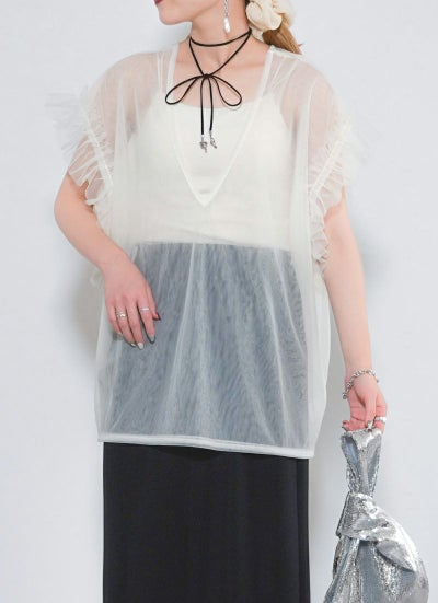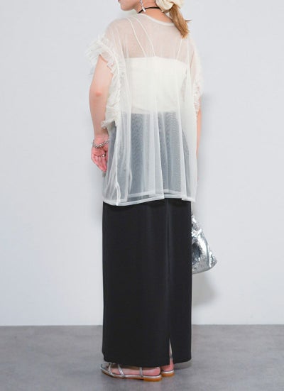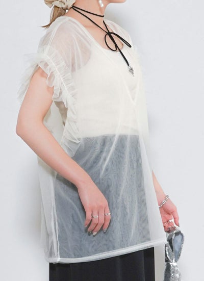 revoam【透け感×フリルで魅せる、大人のフェミニンレイヤード。Tシャツやワンピに重ねて、いつものコーデをブラッシュアップ】 【15%OFF】シアーチュールベスト