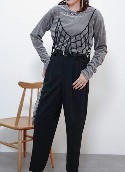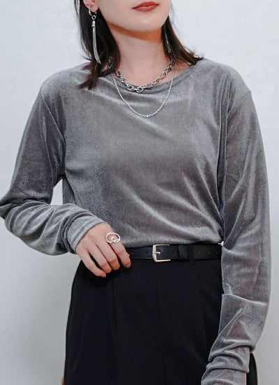 シンプルなデザインながら透け感のあるクラッシュベロアを使用。