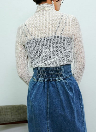 revoam【繊細レースで上品に。重ね着コーデを華やかに仕上げるハイネック】 【20%OFF】レースハイネックプルオーバー