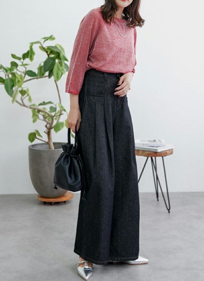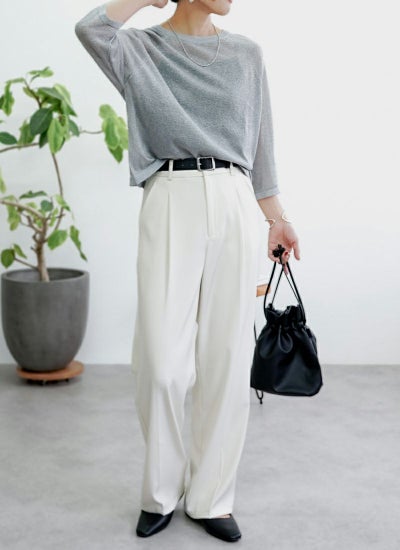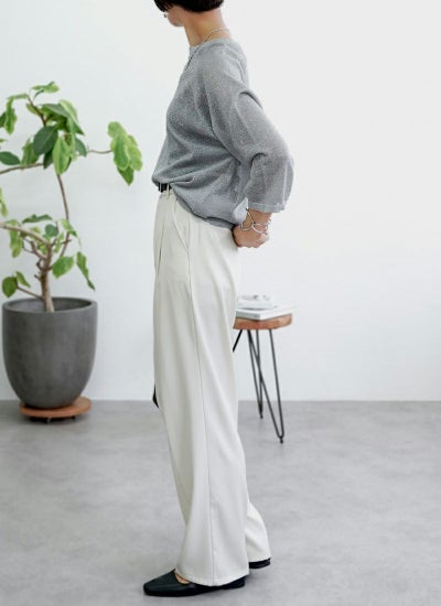 ナチュラルに二の腕もスッキリ見せる七部丈です。